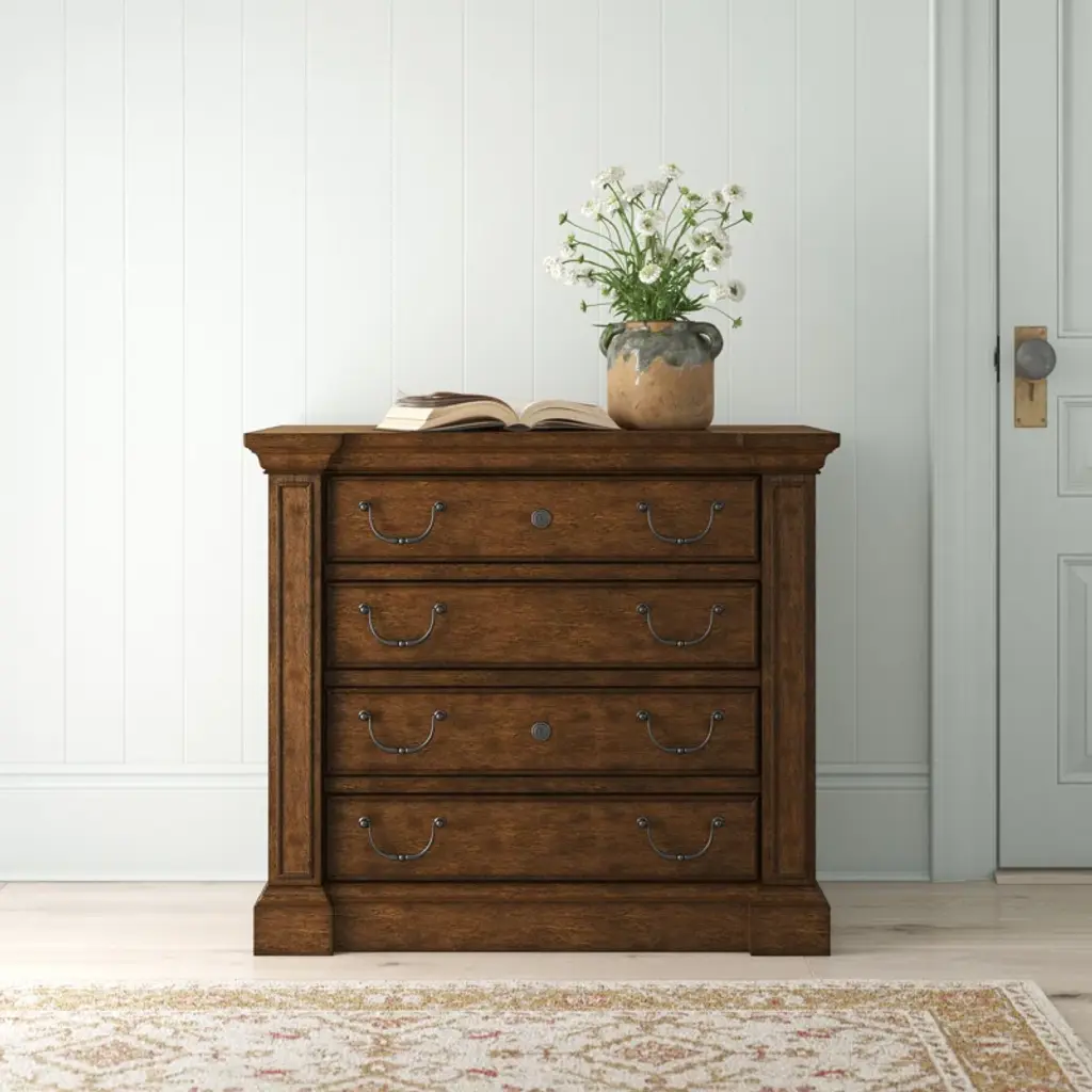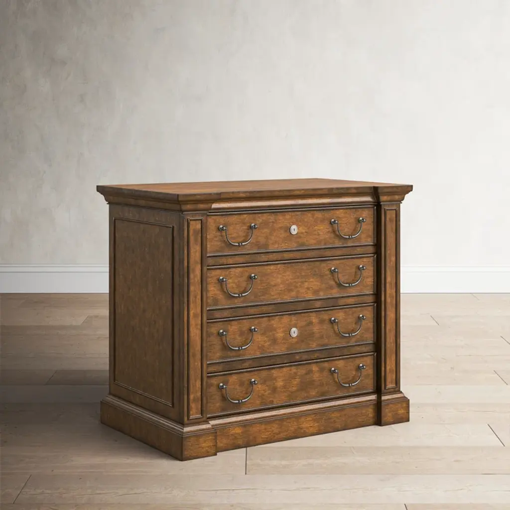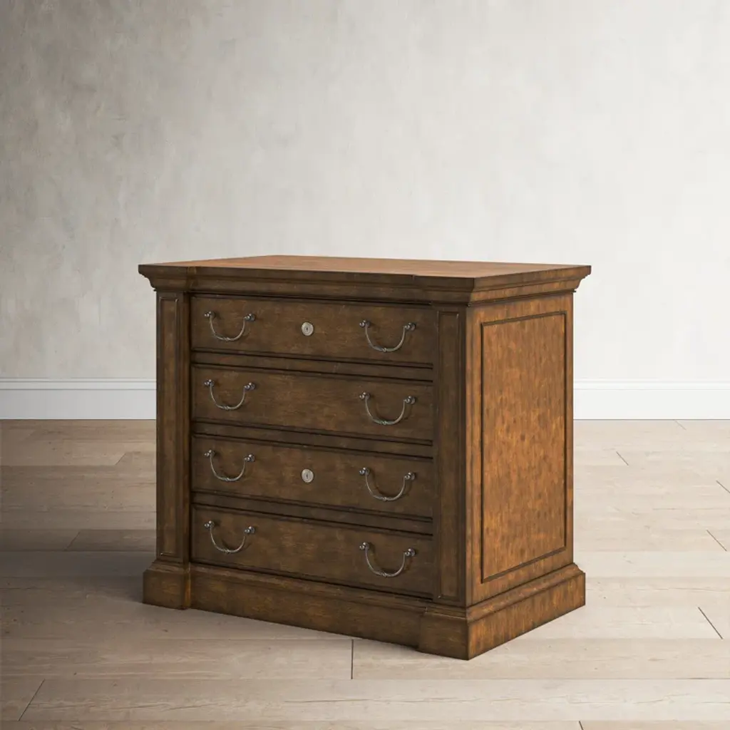 This lateral filing cabinet has the quality materials and craftsmanship you need in your home office. It's thoughtfully crafted from a blend of solid and manufactured wood in a neutral wood-grain finish that pairs well with any aesthetic or color palette. Two locking file drawers with Pendaflex letter/legal filing system help you get organized, while the antique-inspired hardware in a time-worn bronze finish reminds us of our favorite French antiques. Put it underneath a console table and use it as a makeshift desk in the entryway or living room. And the best part of all? This filing cabinet arrives fully assembled, so no need to fret over instruction manuals.