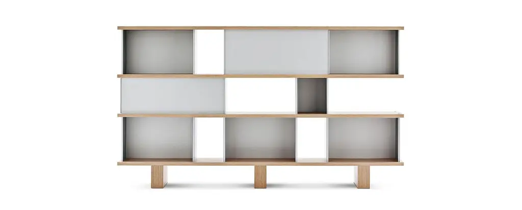 Mid Centruy Modern Shelving Unit model Nuage designed by Charlotte Perriand in 1952-56. Relaunched by Cassina in 2012.Manufactured by Cassina in Italy.Authenticity and avant-garde characterise Charlotte Perriand’s Nuage shelving unit from 1940. Drawing on her experience of seeing cloud-like wall-hung modular shelves in Kyoto, she developed her own version: functional, attractive and versatile. These units can be combined with others so they can serve myriad purposes in myriad settings, creating new combinations: from sideboards to cupboards, from book-shelves against a wall or wall-hung, to free-standing units that can serve as room dividers.Nuage is a storage cabinet, a double sided or wall bookcase, wall-hung or free-standing for placement in the center of a room. A freeform that lends movement to space and enhances the objects it holds, thanks to the compositional complexity of the assembled elements. Important information regarding images of products:Please note that some of the images show other colors and variations of the model, these images are only to present interior design proposals. The item that is selling is on the first image. Important information regarding color(s) of products:Actual colors may vary. This is due to the fact that every computer monitor, laptop, tablet and phone screen has a different capability to display colors and that everyone sees these colors differently. We try to edit our photos to show all of our products as life-like as possible, but please understand the actual color may vary slightly from your monitorAbout the designer:Charlotte Perriand full membership of that avant-garde cultural movement which, from the first decades of the 20th century, brought about a profound change in aesthetic values and gave birth to a truly modern sensitivity towards everyday life. In this context, her specific contribution focuses on interior composition, conceived as creating a new way of living, still today at the heart of contemporary lifestyle.In the sphere of 20th century furnishing history, the advent of modernity made possible the entrepreneurial audacity of this true reformer of interior design. At the beginning of her professional career she was acclaimed by critics for her Bar under the roof, exhibited at the Salon d’Automne in 1927 and constructed entirely in nickel-plated copper and anodized aluminium. In the same year, when she was just twenty-four years old, she began a decade-long collaboration with Le Corbusier and Pierre Jeanneret, at the famous design studios at 35, rue de Sèvres in Paris.Her presence in the Le Corbusier studio is visible in all the furnishings designed with him and with Pierre Jeanneret: and so Charlotte Perriand becomes a cornerstone in the reformation project promoted by the architect, adding a distinct Dimension of humaneness to the often cold rationalism of Le Corbusier. In her creations she manages to animate the fundamental substance of daily life with new aesthetic values: in particular her talent and intuition in the discovery and use of new materials manifest themselves to their full extent.The ten-year long collaboration with Le Corbusier and Pierre Jeanneret, and her Japanese experience, represent periods of intense creative effervescence in the life of the artist. During her long stay in the Far East (‘40-‘46), she reveals her artistic talent to the full, through a reinterpretation of the reality of life to echo both tradition and modernity. By way of example, worthy of mention are the furnishings produced using traditional bamboo processing techniques, capable of enhancing the new forms already experimented using steel-tubing.After her work as a professional, she concentrates on a series of original and balanced productions, commissioned by top-level authorities and leading companies of the calibre of Air France, and by a number of foreign organizations, authenticating the fame she had by now gained on the international scene.About the manufacturer:In a continuing dialogue between past, present, and future, Cassina has created the I Maestri collection, revisiting furnishing designs by the twentieth century’s best-known architects, including Le Corbusier, Pierre Jeanneret, Charlotte Perriand, Charles Rennie Mackintosh, Gerrit Thomas Rietveld, Franco Albini, Frank Lloyd Wright and Marco Zanuso. While the designs and functional concepts have been precisely preserved, the models have been manufactured using evolved technology. This is also the company that has manufactured iconic pieces of contemporary design from the 1950s to the present day, ideated by some of the most important international designers. Today Cassina continues to look to the future of design with audacious, passionate curiosity and an open, holistic approach. It affirms its exclusive ability to furnish a home’s living and dining spaces completely and iconically with The Cassina Perspective: a concept, a philosophy, an informed, futuristic thought. A detailed, expansive horizon of combinations; when placed together, the products have an innovative soul and the modern icons create authentic, welcoming, personal atmospheres involved in a conversation dominated by a code of design excellence, formal sensitive awareness, solidity and cultural authority.