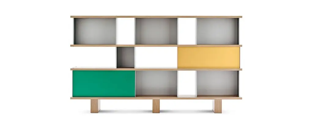 Charlotte Perriand Nuage Shelving Unit, Wood And Green, Yellow Aluminium