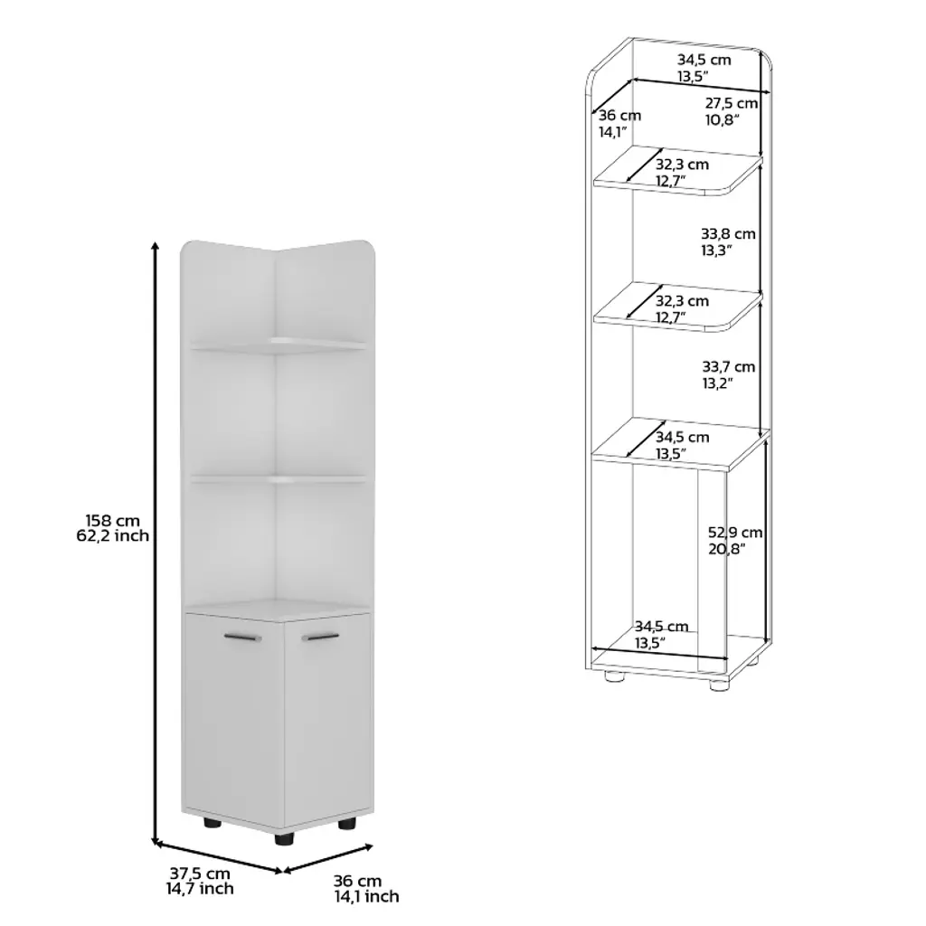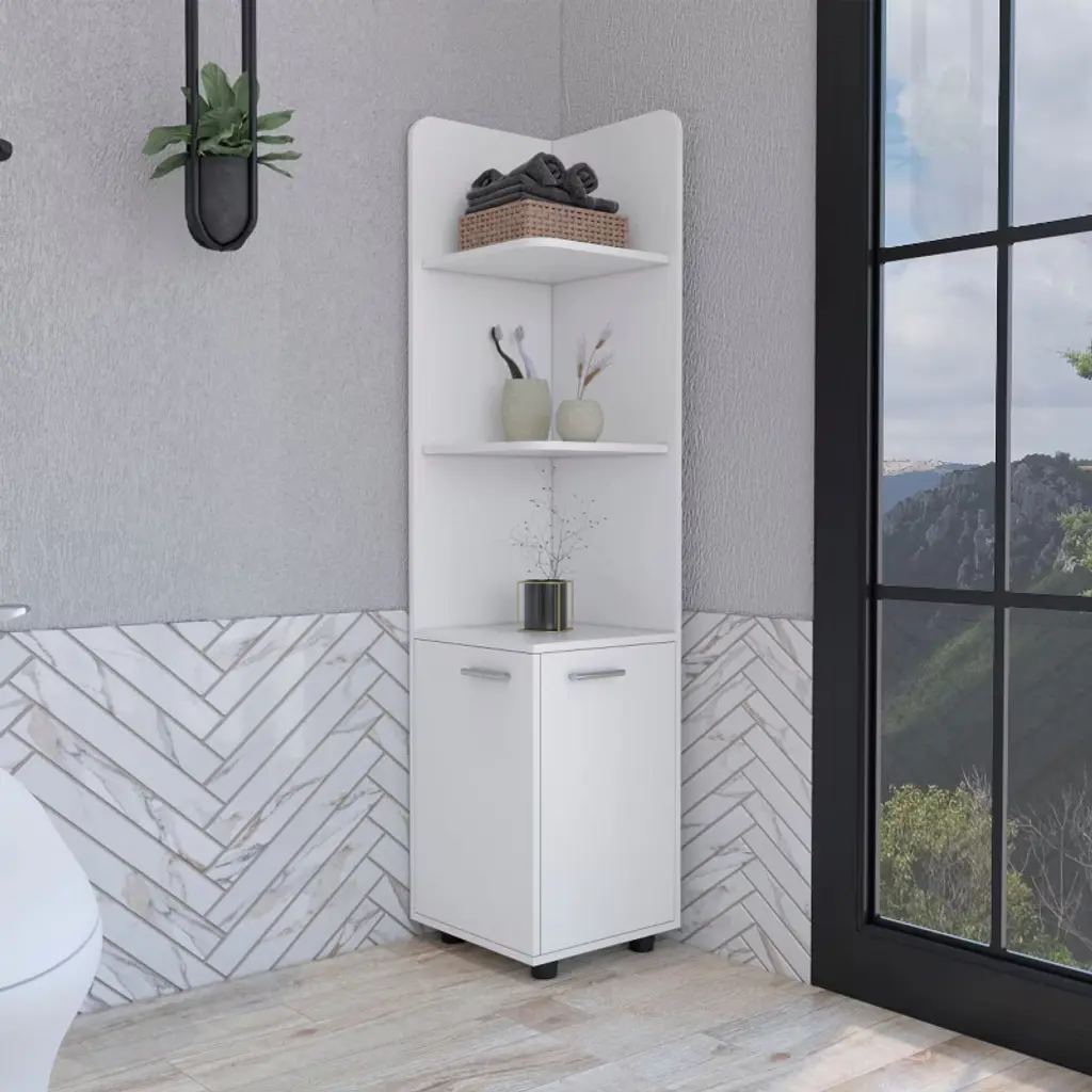 Chery Life 62"h Tall Corner Cabinet With 3-tier Shelf And 2-door, White