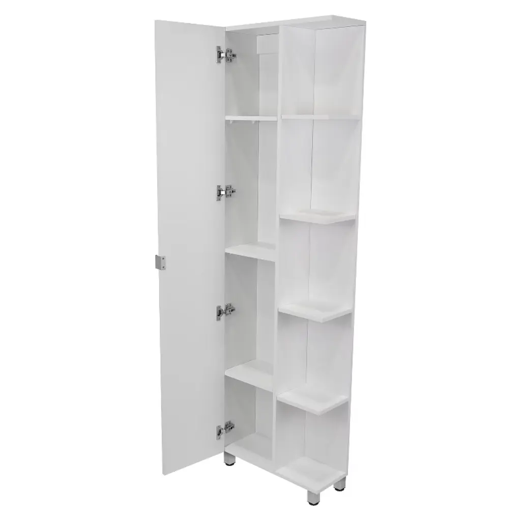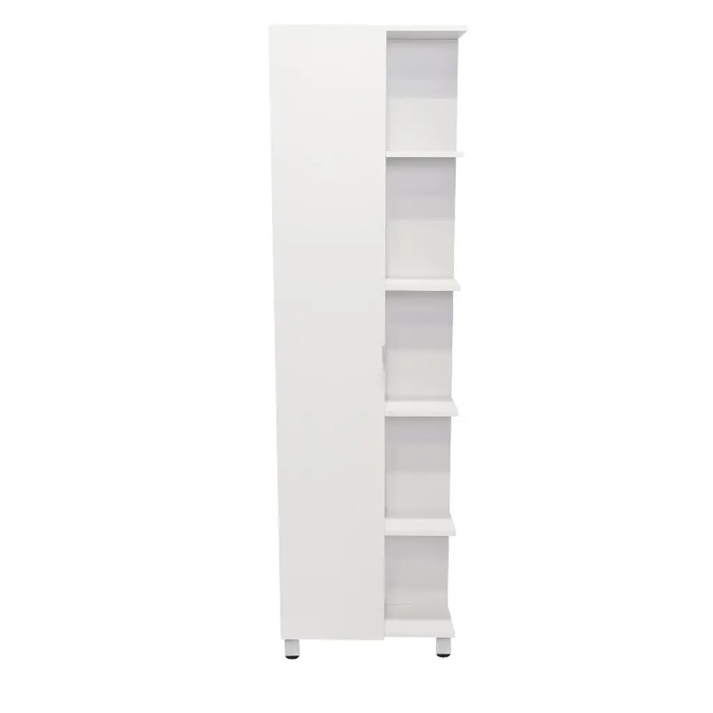Chery Life Corner Cabinet With Five Open Shelves, Single Door, White Finish