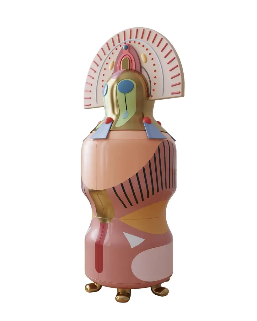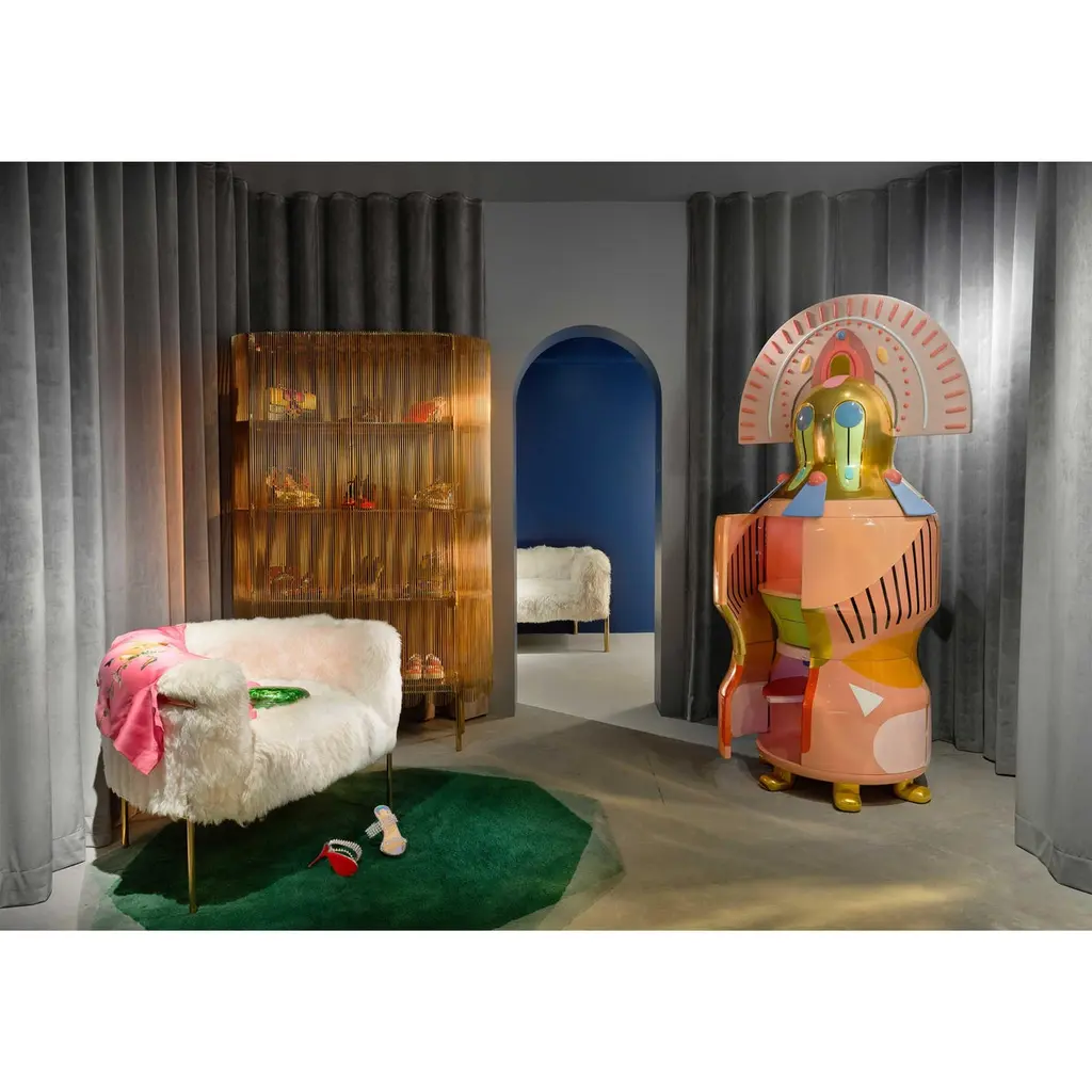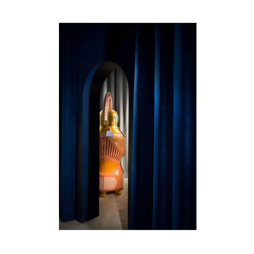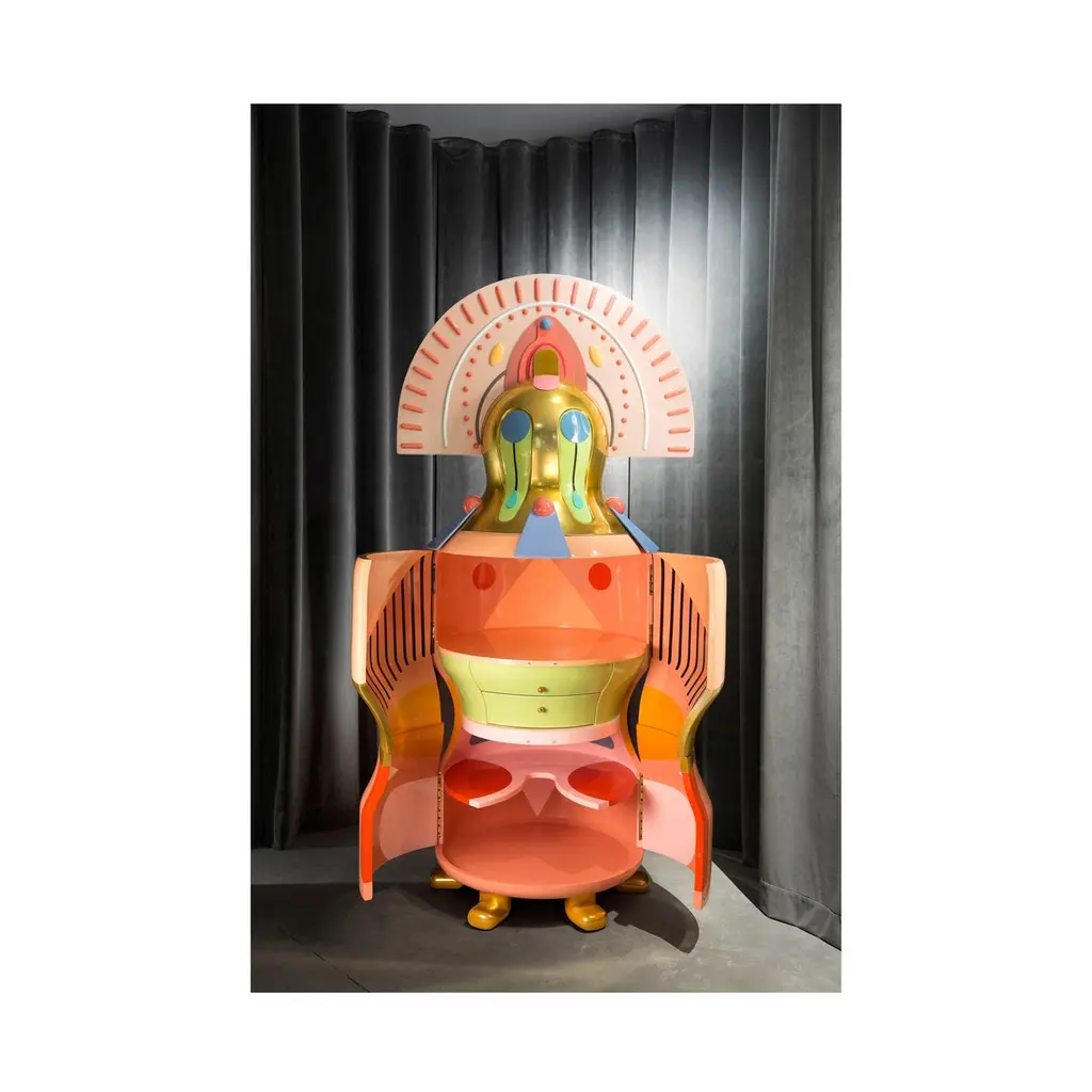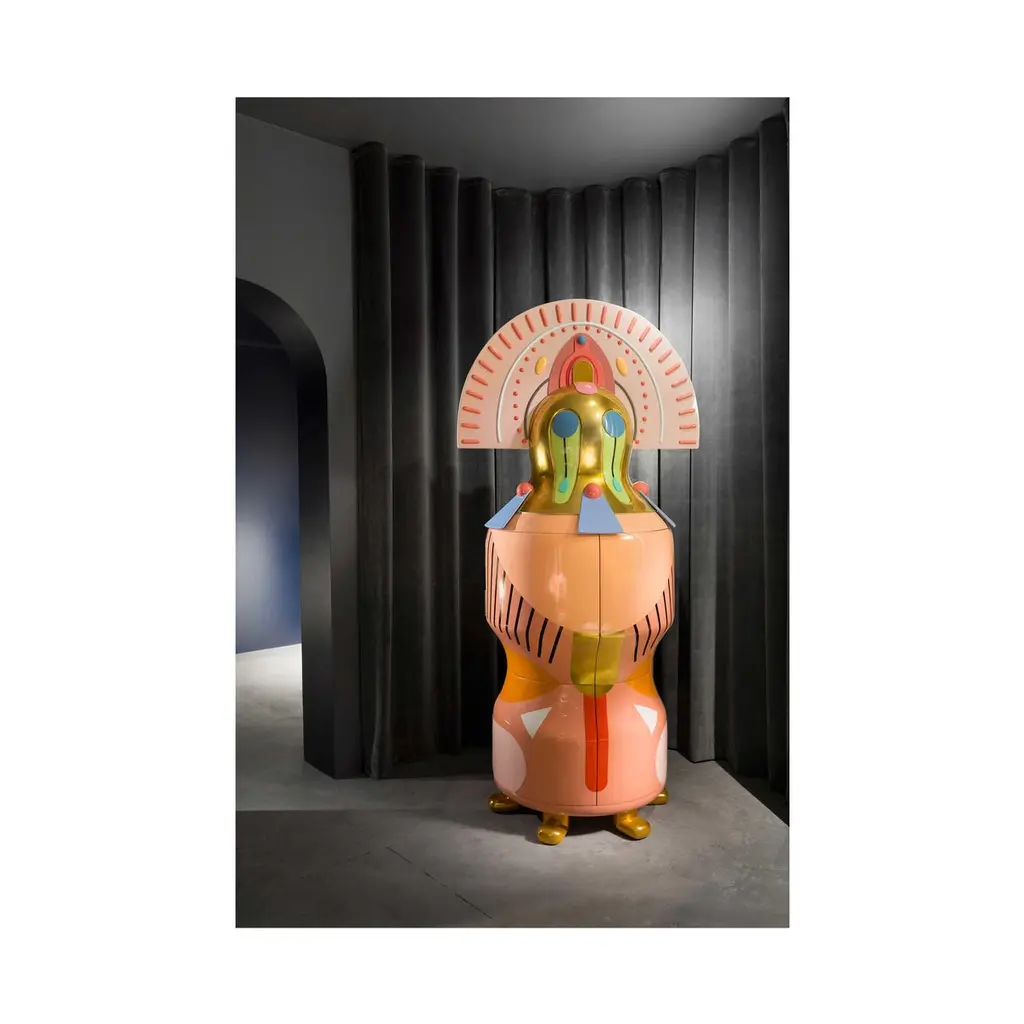 Chhau Donna multi-color bar storage cabinet by Elena Salmistraro, splendid in a riot of colors is inspired by the female Chhhau dancers of India. Italian contemporary forms and exquisite craftsmanship define this sculptural cabinet.Elena Salmistraro's craft is unique. She looks for inspiration in Ethnochoreology – the detailed study of ethnic dance. Dance as a form of art has unparalleled rhythm and has always been a part of human culture. Scarlet Splendour presents iDanzatori by Elena Salmistraro. Borrowed from the classical dances of India and the grandeur of the dancers' costumes. However, nothing in the collection can be recognized as old fashioned or even traditional.Care: Wipe gently with dry soft cloth. In case of spillage of water wipe immediately. A premium liquid wax may be used occasionally to refresh the high gloss.Celebration of authenticity: Slight variations or imperfections are the marks of an artisan, a testament to the individuality, emotion and originality of each work of art. We assert our right to make meaningful qualitative changes.Please note: Prices do not include VAT. VAT may be applied depending on the ship-to location.