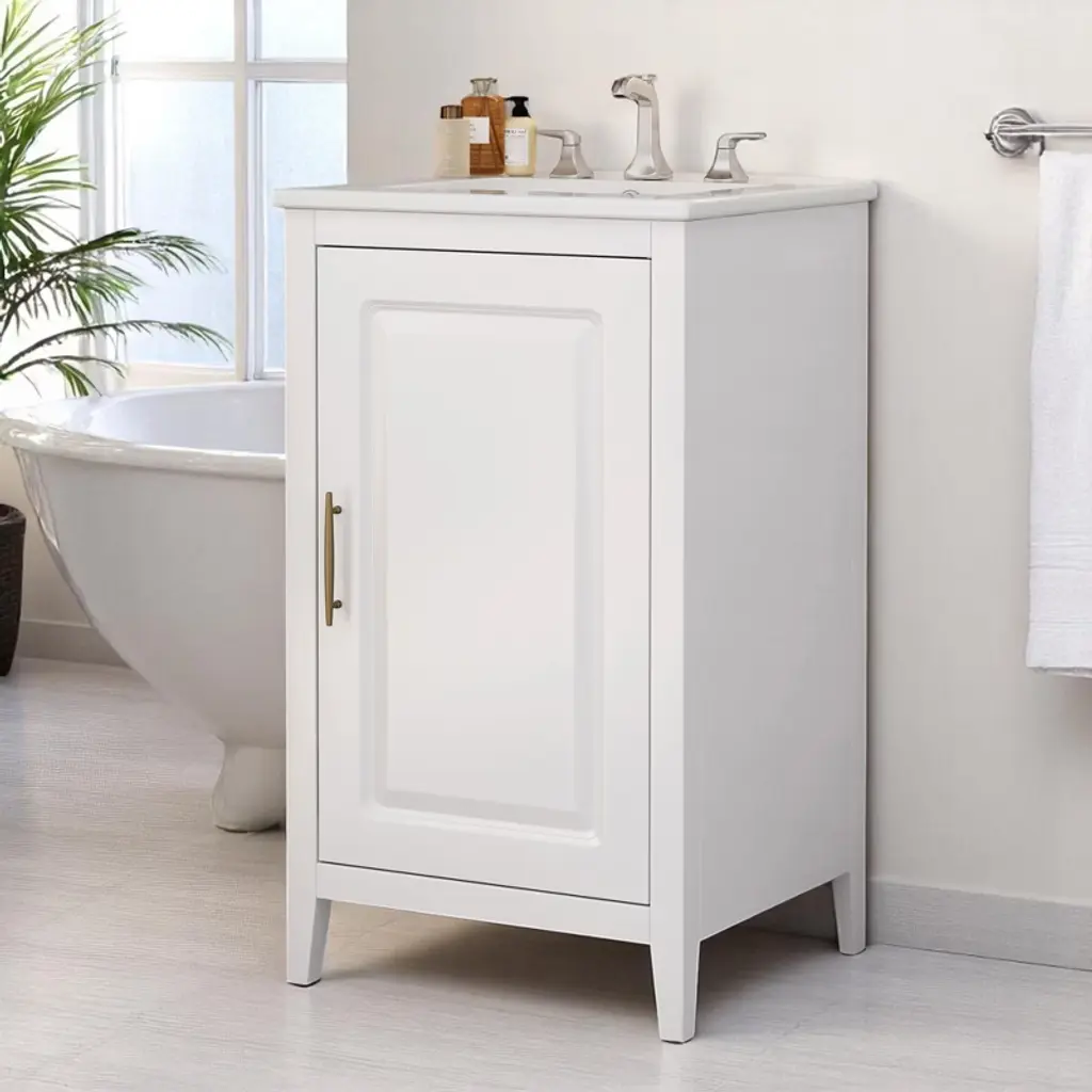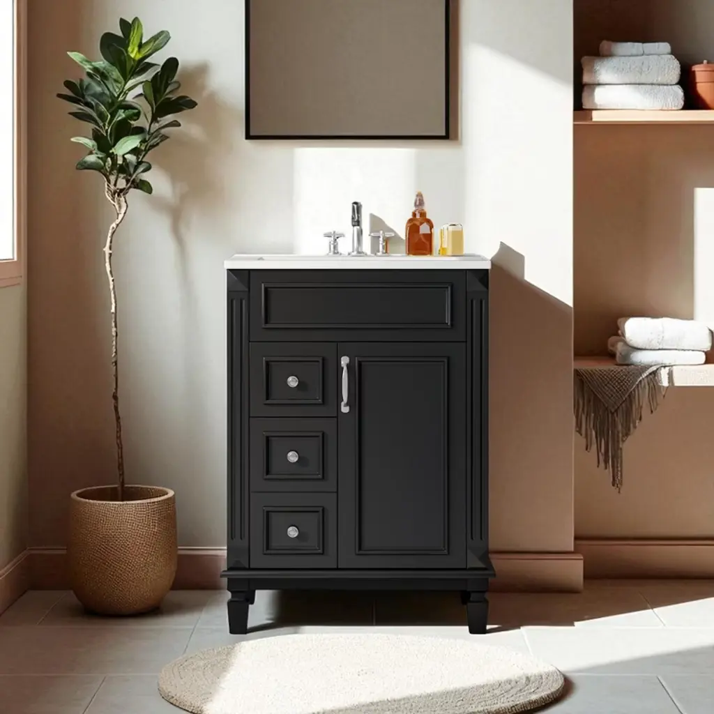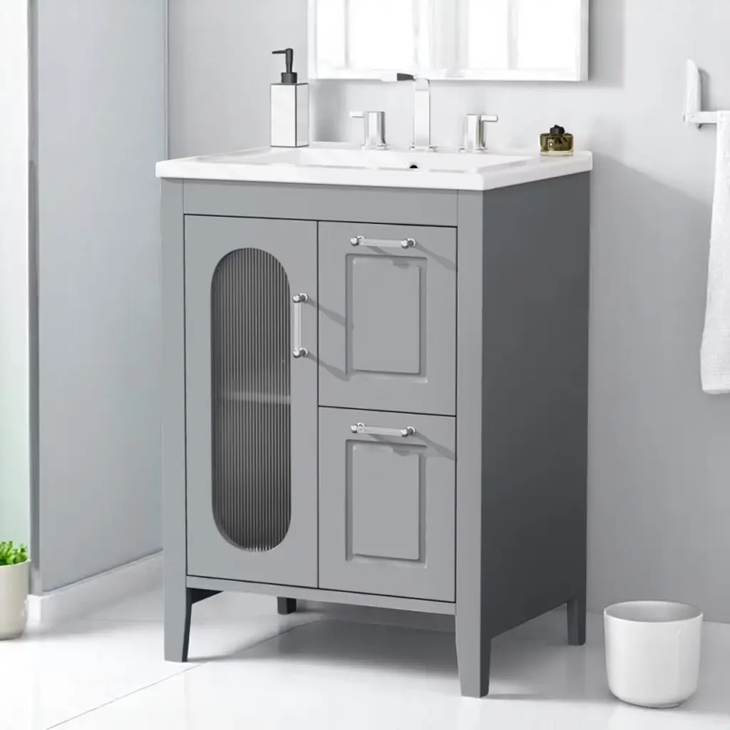 ChicFurnit presents this modern bathroom vanity base cabinet featuring durable construction and customizable storage solutions. Designed as a base cabinet this piece accommodates various sink styles with a center cutout allowing you to select your preferred sink top separately for personalized bathroom decor. All necessary hardware devices comes with clear instructions for straightforward installation that you can complete easily.