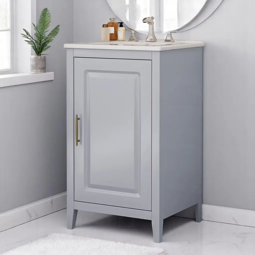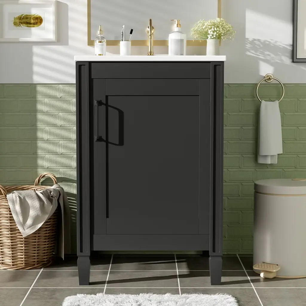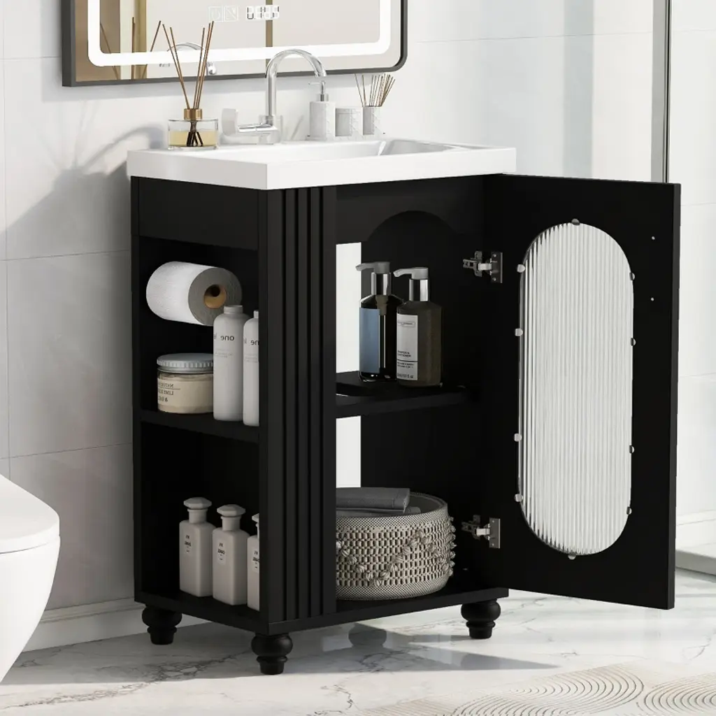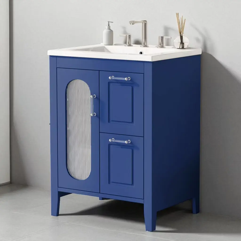 ChicFurnit presents this modern bathroom vanity base cabinet featuring durable construction and customizable storage solutions. Designed as a base cabinet this piece accommodates various sink styles with a center cutout allowing you to select your preferred sink top separately for personalized bathroom decor. All necessary hardware devices comes with clear instructions for straightforward installation that you can complete easily.