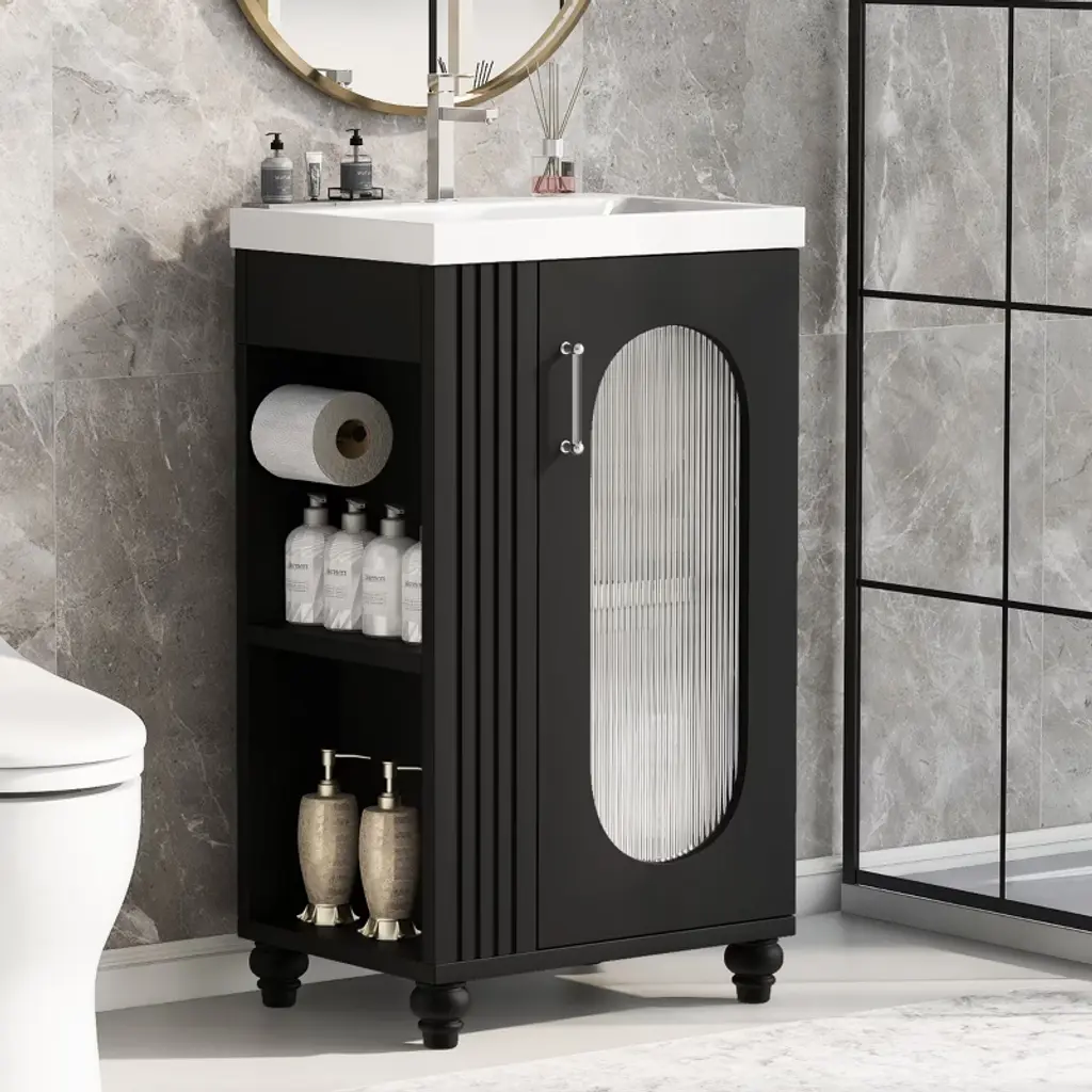 Chicfurnit Bathroom Storage Cabinets Bathroom Floor Storage Cabinet Functional Bathroom Cabinet With Drawer For Bathroom, Black, 20"*15.6"*33"