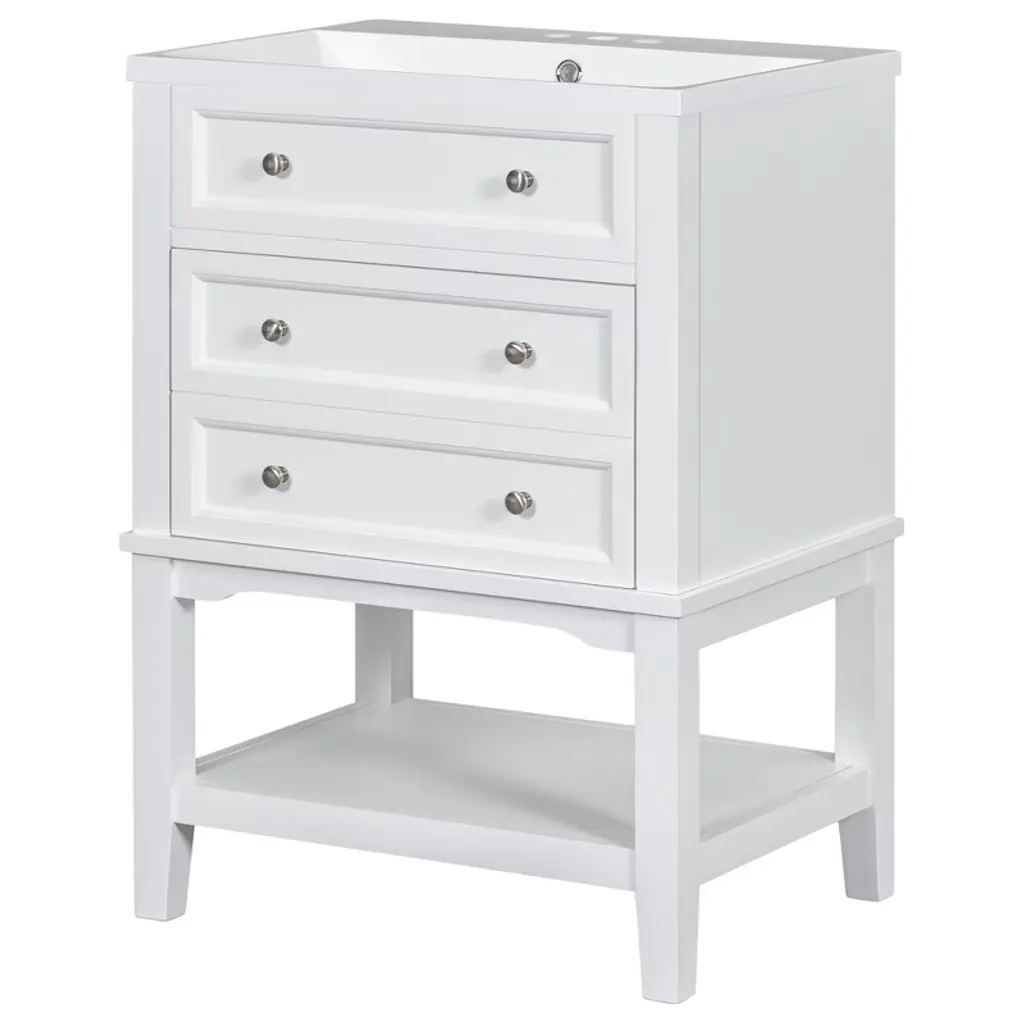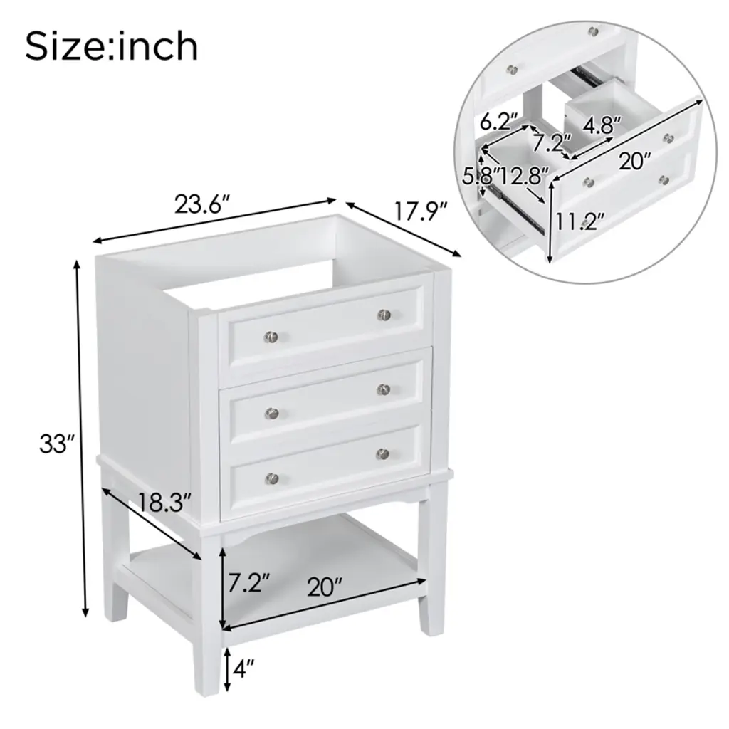 Chicfurnit Bathroom Vanity 24 Inch Bathroom Cabinet Base With Drawer And Open Shelf For Bathroom, White, 23.6"*17.9"*33"