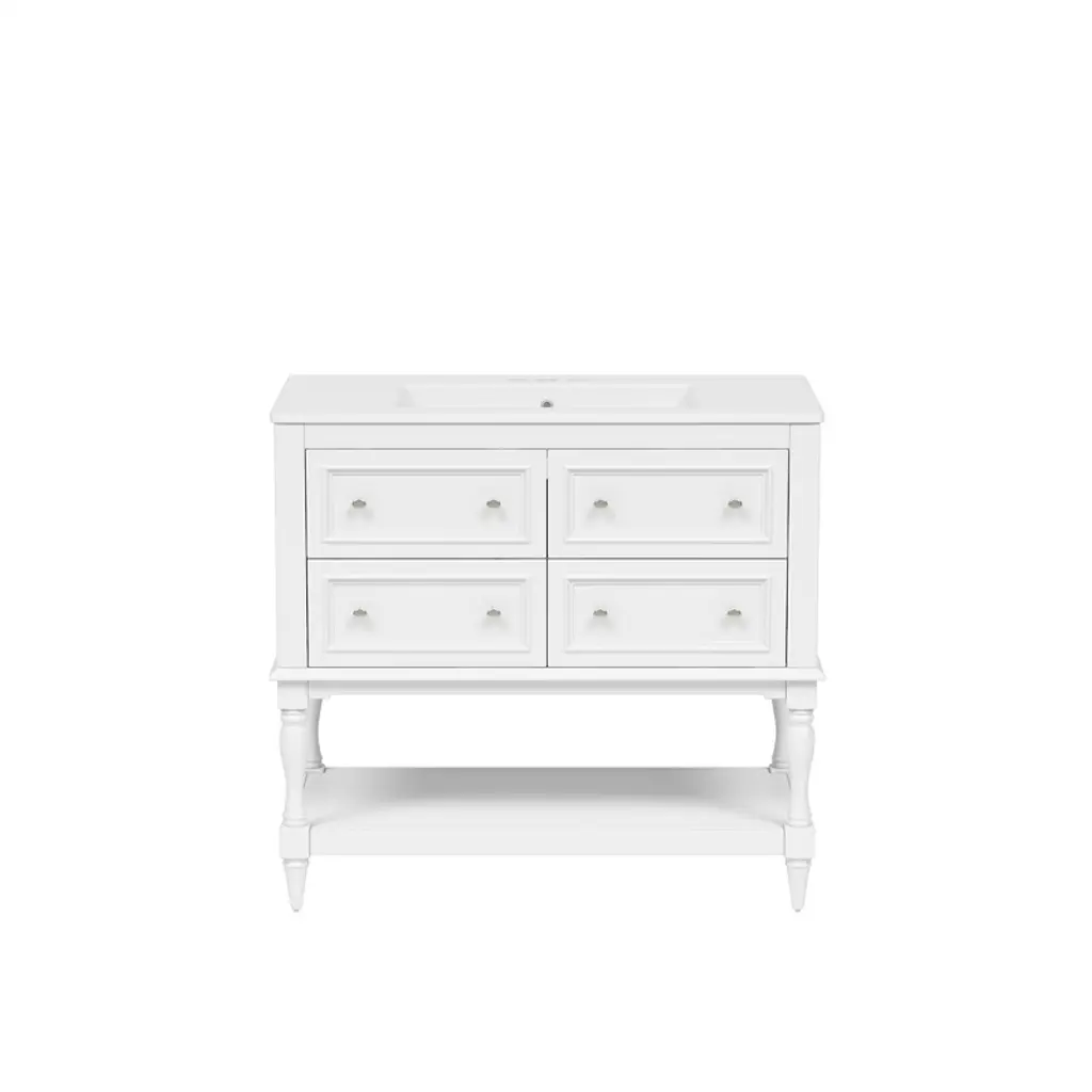 ChicFurnit Bathroom Vanity bring a touch of natural elegance to your bathroom with a simple yet stylish design. Featuring a durable ceramic basin with a smooth waterproof finish, it’s easy to clean and maintain. Built with solid wood and high-quality MDF boards, this vanity is made for long-lasting use. The classic design details, including tapered legs and woven hollowed-out doors, add timeless charm. Easy assembly ensures quick setup so you can enjoy it right away.