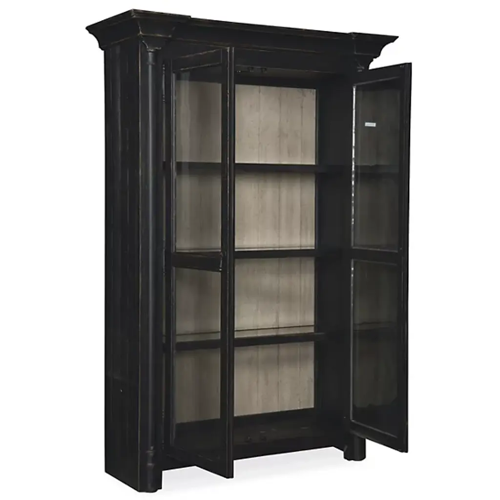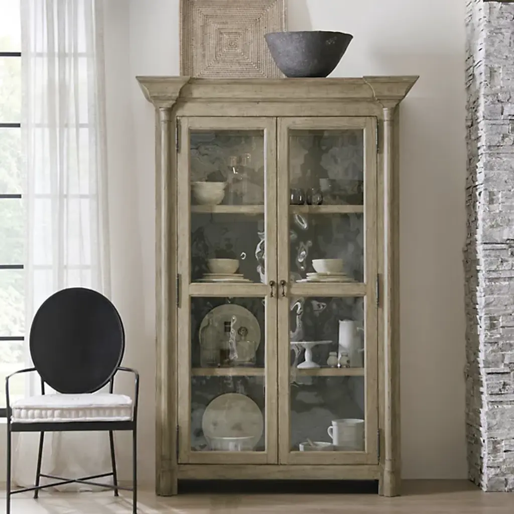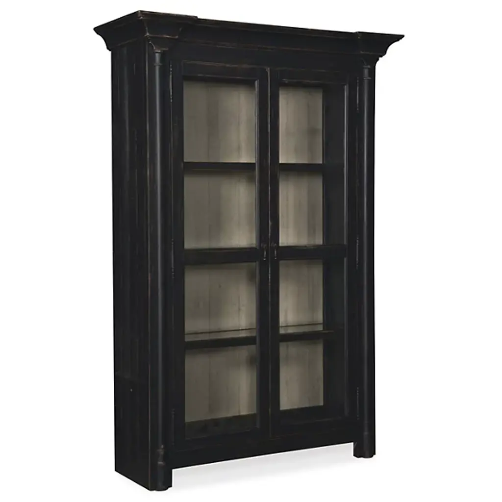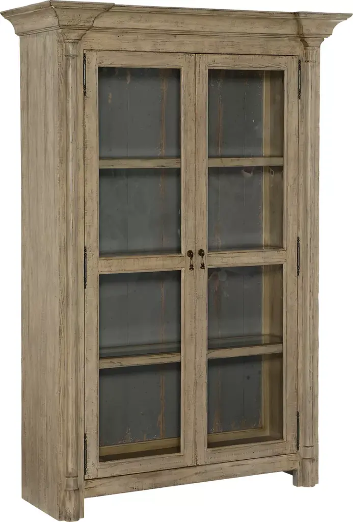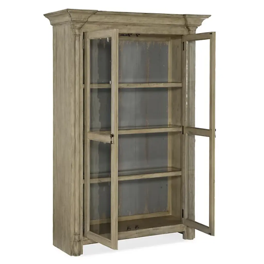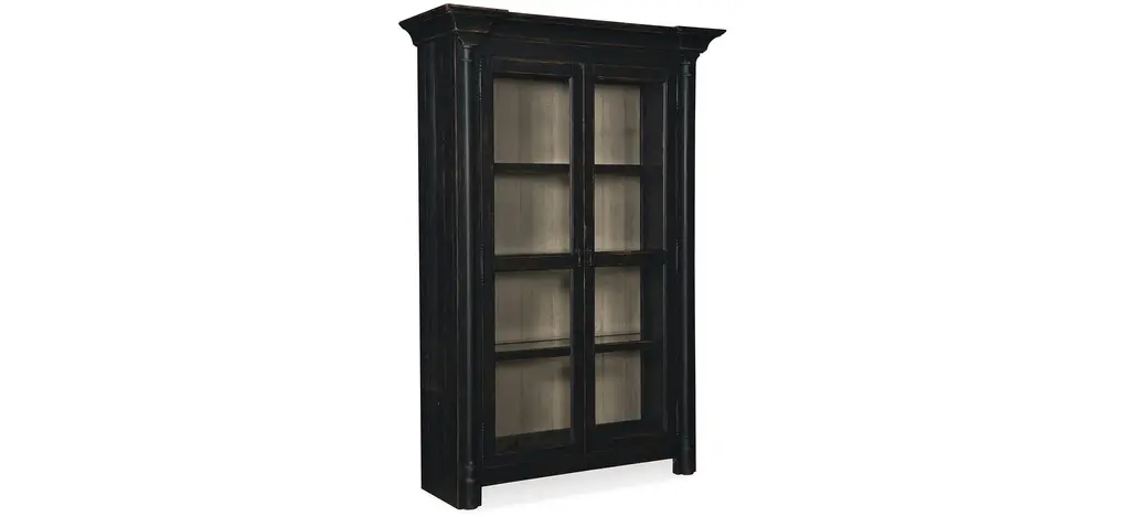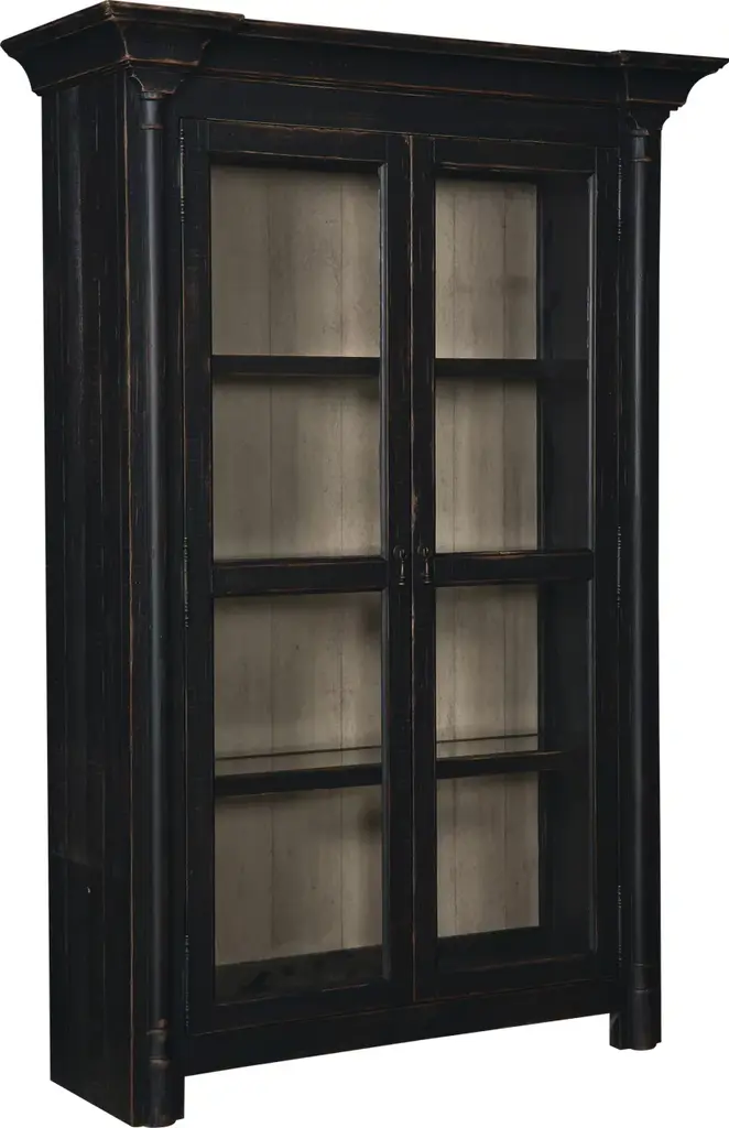 Put valued art objects and sentimental tchotchkes on full display with the Ciao Bella Display Cabinet from Hooker Furniture. Designed with inspiration from the eclectic mix of hard-used furniture found in European farmhouses, the cabinet is practical and pretty, relying on maple and pine veneers to surface solid wood inside. The rustic finish shows off a bit of individual character, while framed and beveled glass allows the contents to be seen. Clear glass door panels reveal fixed and adjustable wood-framed glass shelves inside, allowing plenty of light while making it easy to view the items stored at any angle.