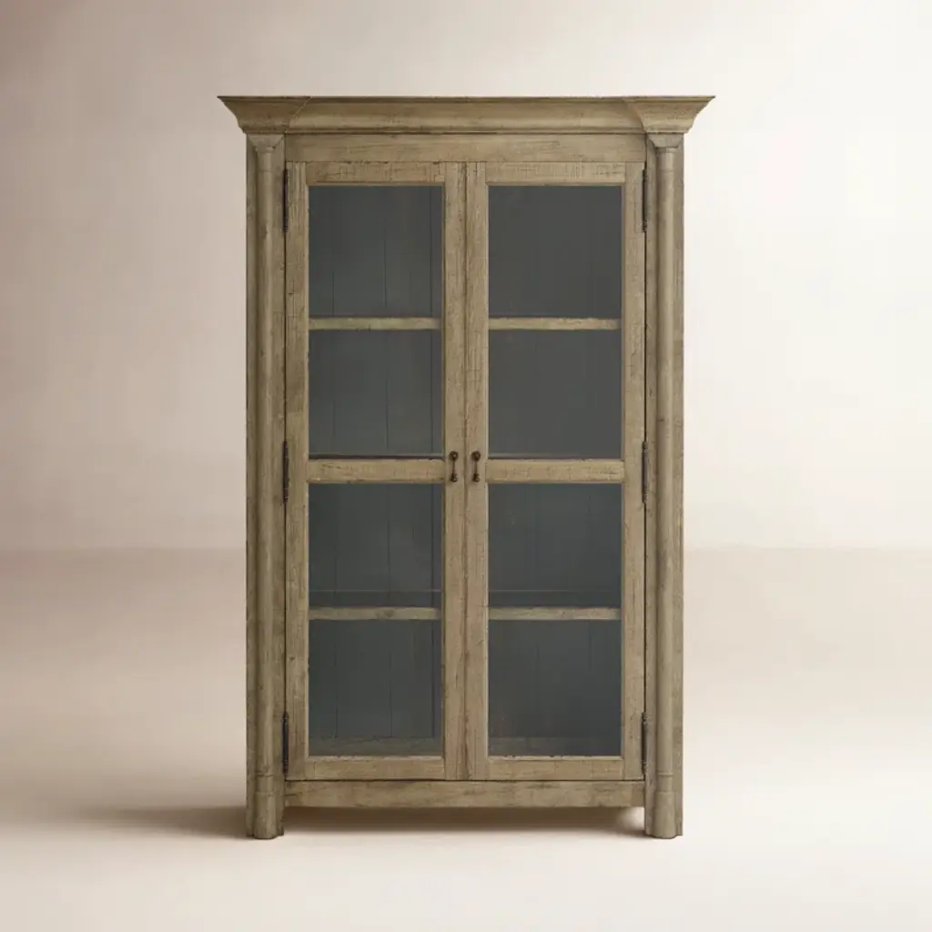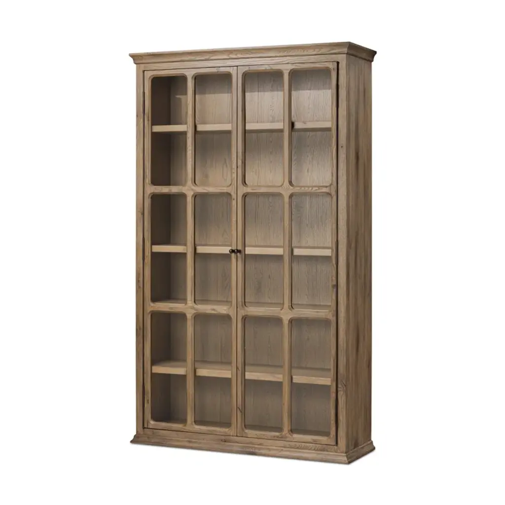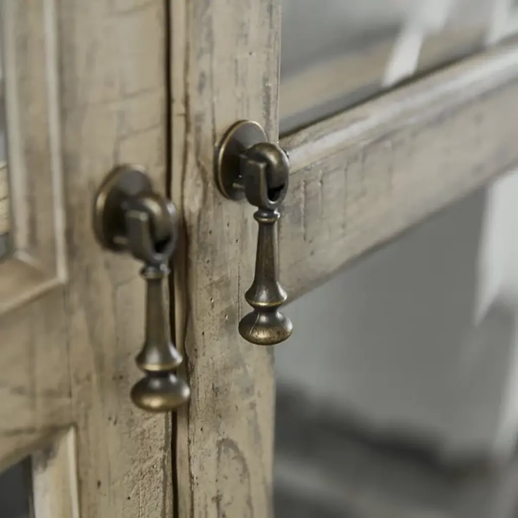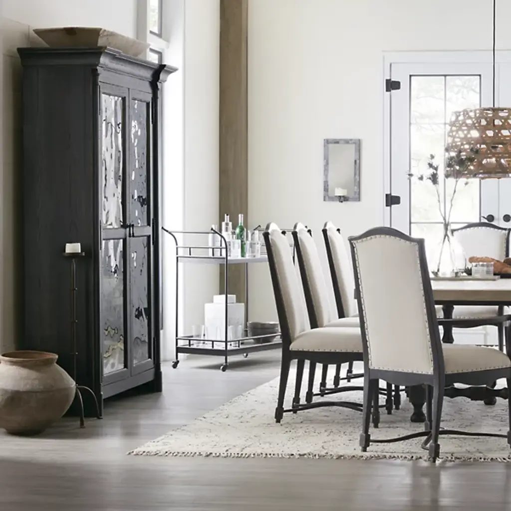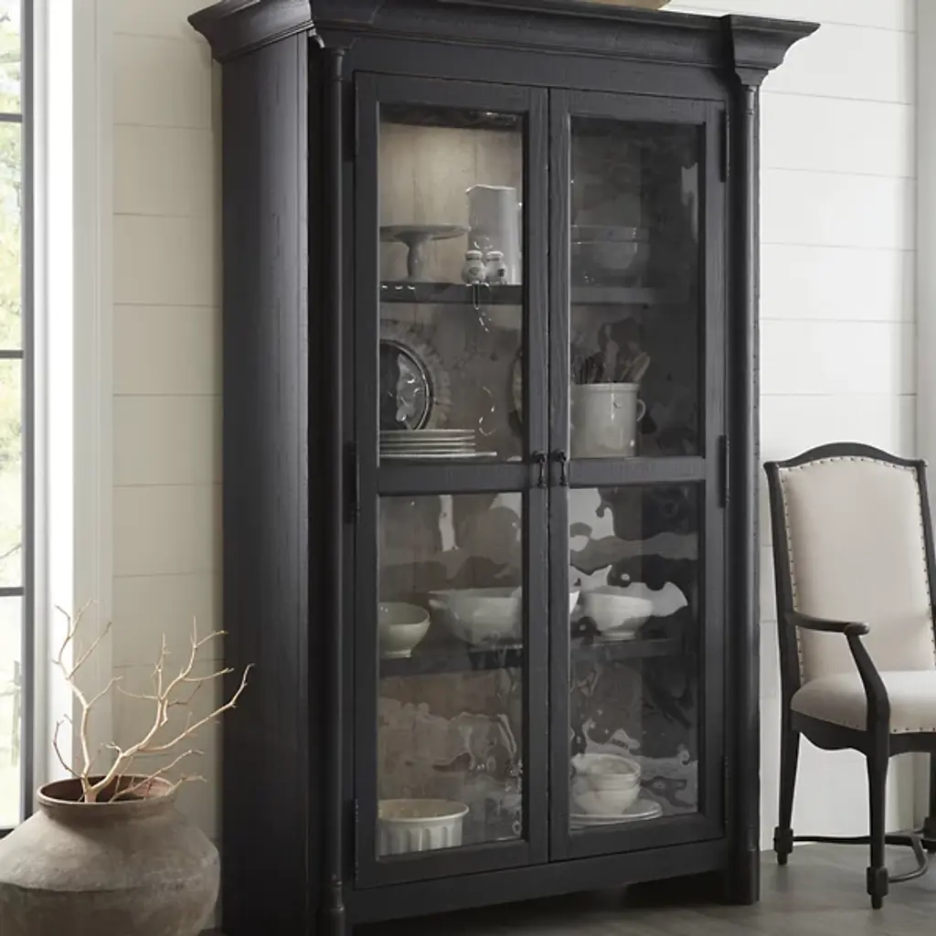 Put valued art objects and sentimental tchotchkes on full display with the Ciao Bella Display Cabinet from Hooker Furniture. Designed with inspiration from the eclectic mix of hard-used furniture found in European farmhouses, the cabinet is practical and pretty, relying on maple and pine veneers to surface solid wood inside. The rustic finish shows off a bit of individual character, while framed and beveled glass allows the contents to be seen. Clear glass door panels reveal fixed and adjustable wood-framed glass shelves inside, allowing plenty of light while making it easy to view the items stored at any angle.