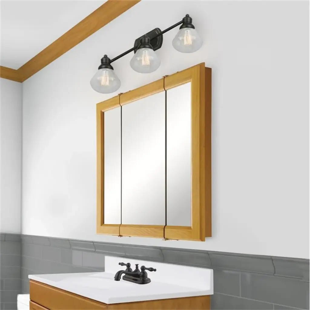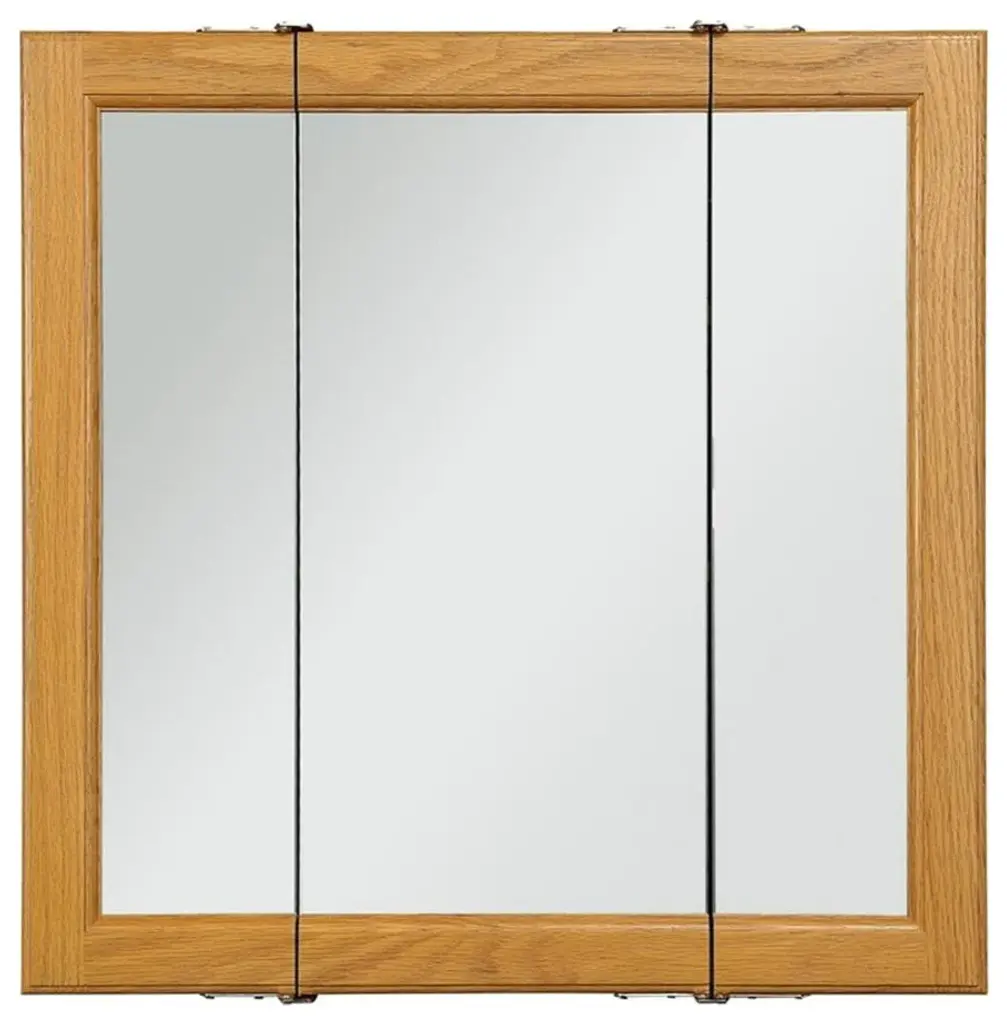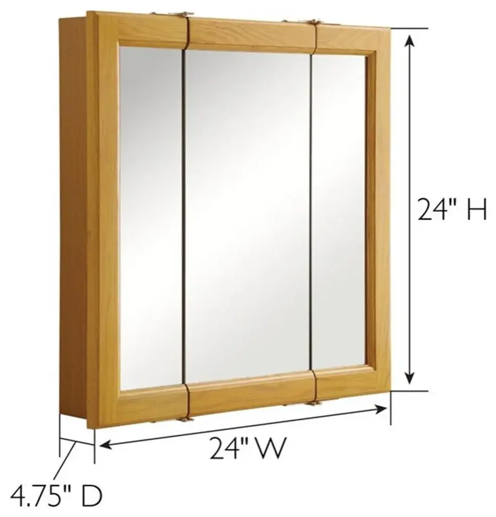 The Design House 545277-HOK Claremont Honey Oak Tri-View Medicine Wood Cabinet Mirror features a honey oak finish with a water resistant seal. The cabinet doors glide open revealing (2) stationary shelves to hold shampoo, medicine, makeup and other toiletries. This cabinet is built to withstand the moisture and humidity from your shower and will not chip or stain. Use this mirror for shaving or applying makeup in the morning. Product comes assembled and ready for installation. Designed and manufactured by Design House, the trusted source for quality lighting, hardware, plumbing, kitchen, and bath products for every taste and budget.Features: • Measures 24 inches W x 4.75 inches D x 24 inches H • Features a honey oak finish with a water resistant seal • (3) doors and (2) stationary shelves • Comes fully assembled and ready for installation • 1-year limited warranty • Product is in improved packaging to ensure a safe and secure delivery without damage
