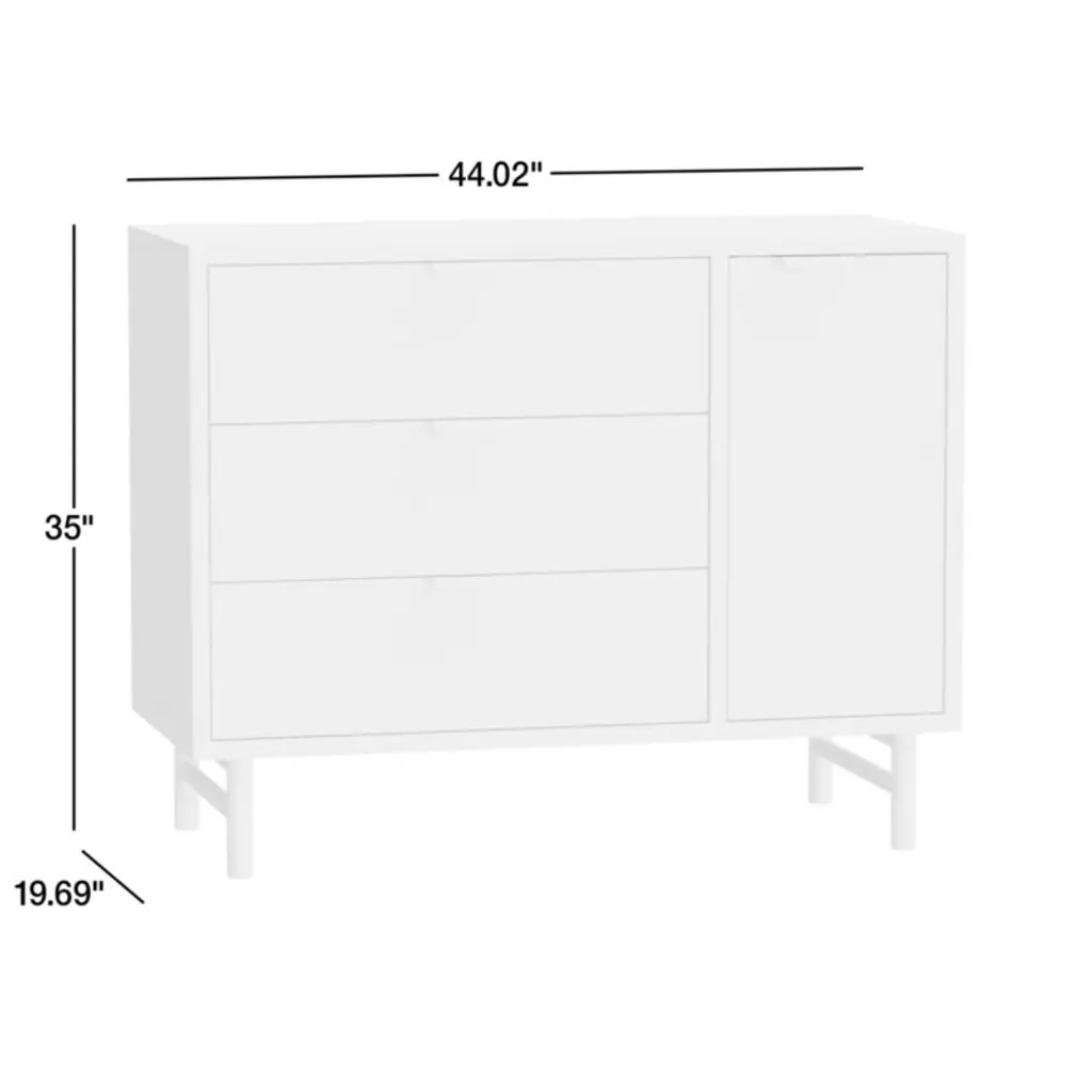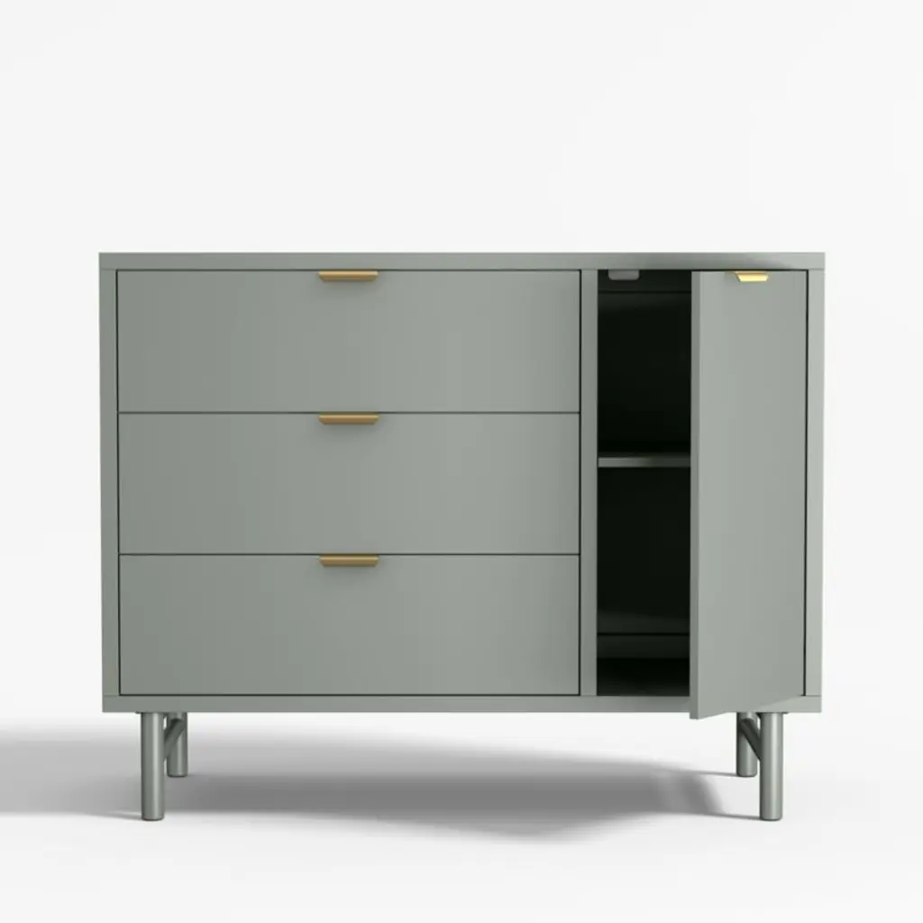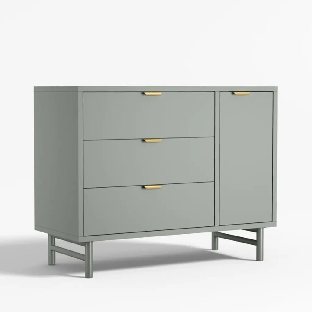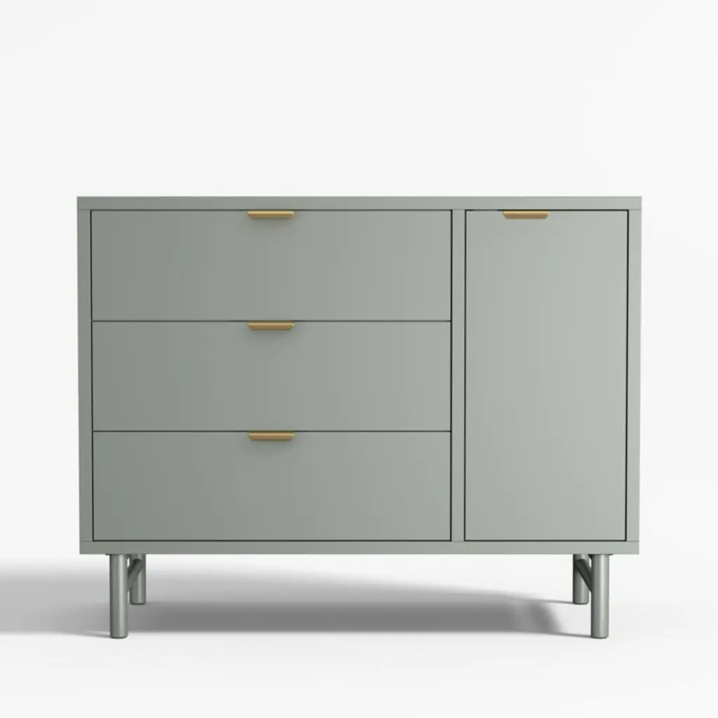 With its clean lines, our Classic collection gives a subtle nod to mid-century designbut its trend-forward colors make it a stunning addition to any modern kid's room. The dresser is a storage standout: In addition to three roomy drawers that keep clothes and linens neatly tucked away, the cabinet door opens to reveal even more storage. The earthy laurel green hue with brass accents blends effortlessly with any bedroom decor, and its solid FSC®-certified wood construction is as durable as it is beautiful. Pair with other pieces from our Classic Collection for a totally coordinated look.