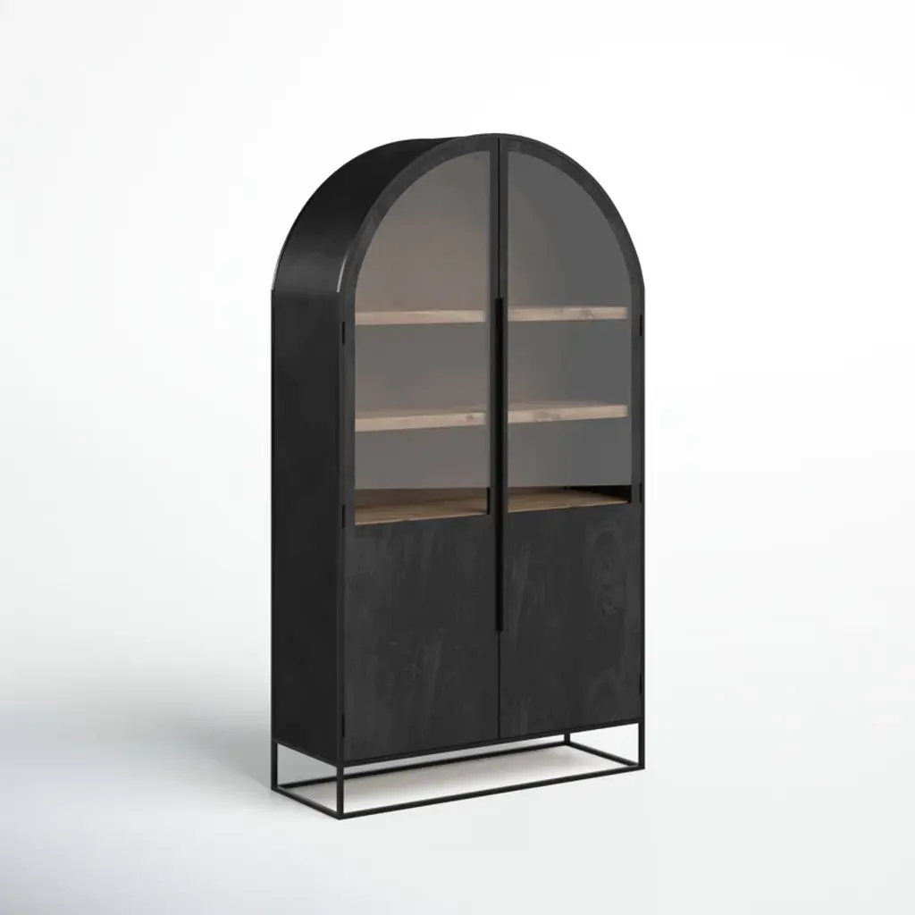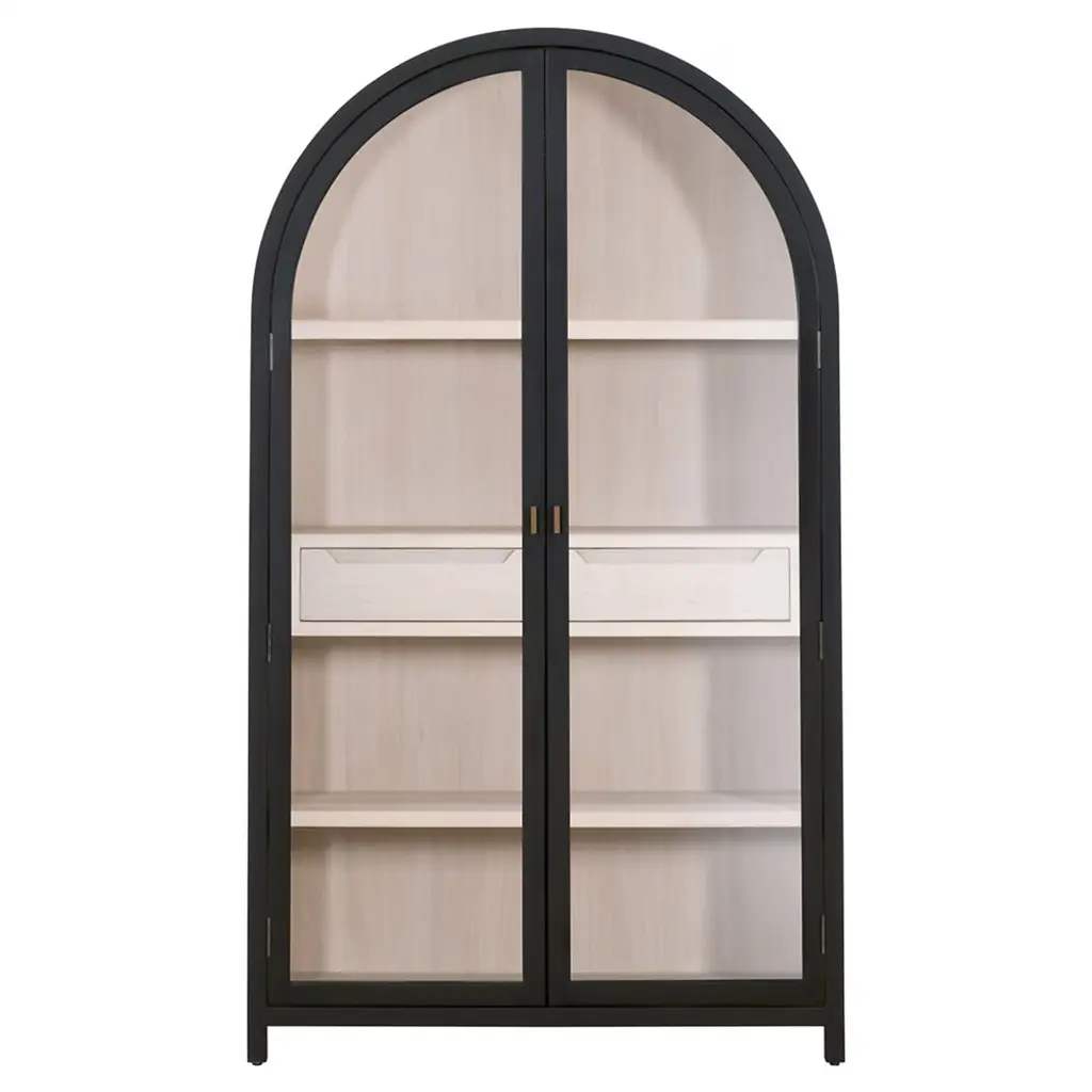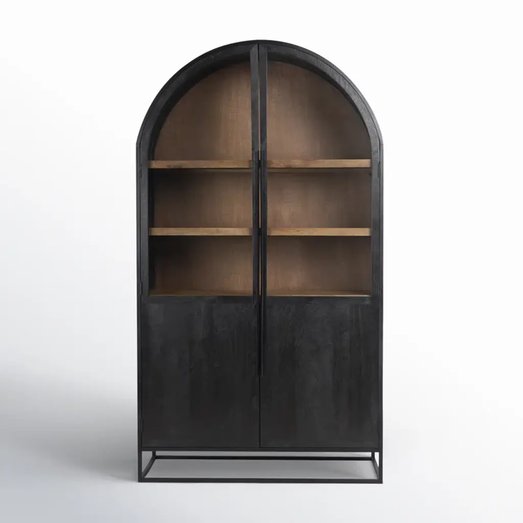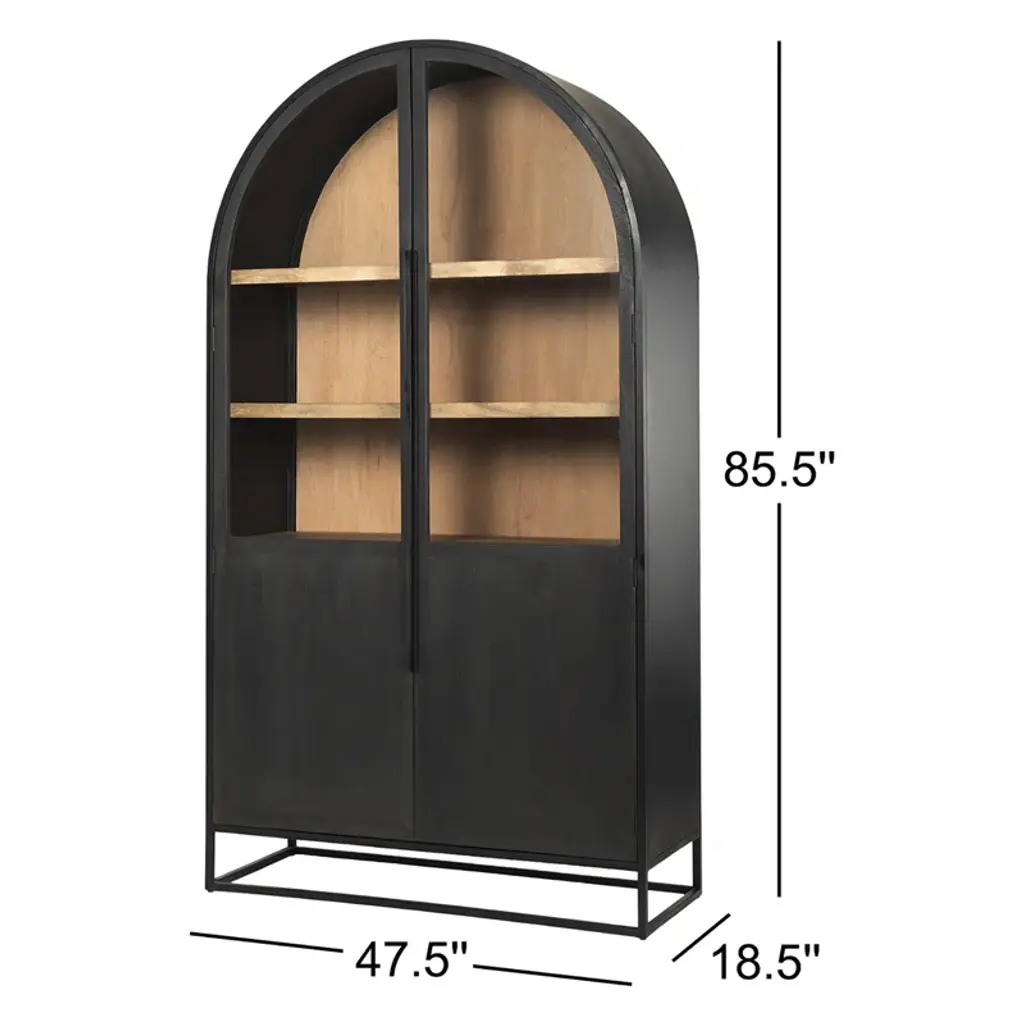 Bring old-world style and lots of storage and display space to any room with our freestanding curio cabinet. Kiln-dried solid wood in a dark finish brings bold contrast to the lighter interior. Tempered glass-paneled doors allow a glimpse of what's inside, while the lower cabinet offers a concealed spot to tuck away items. Sleek iron hardware completes the look.