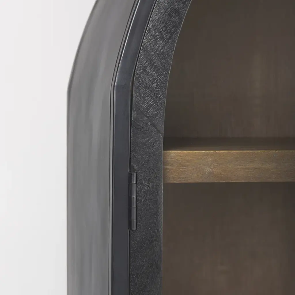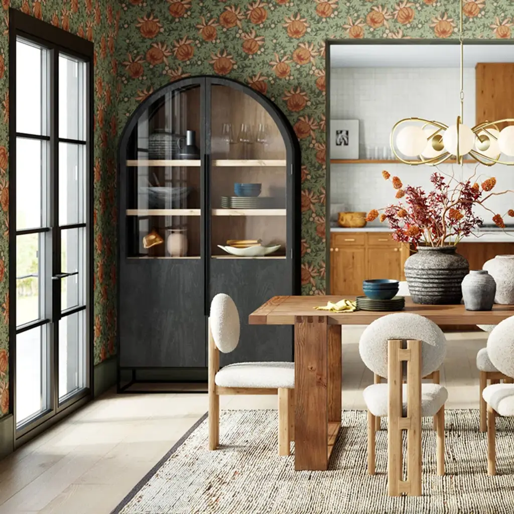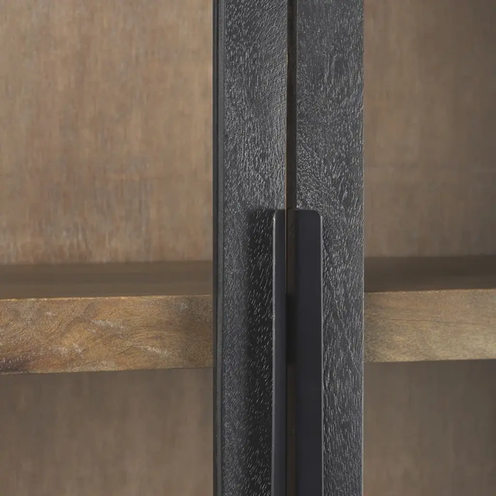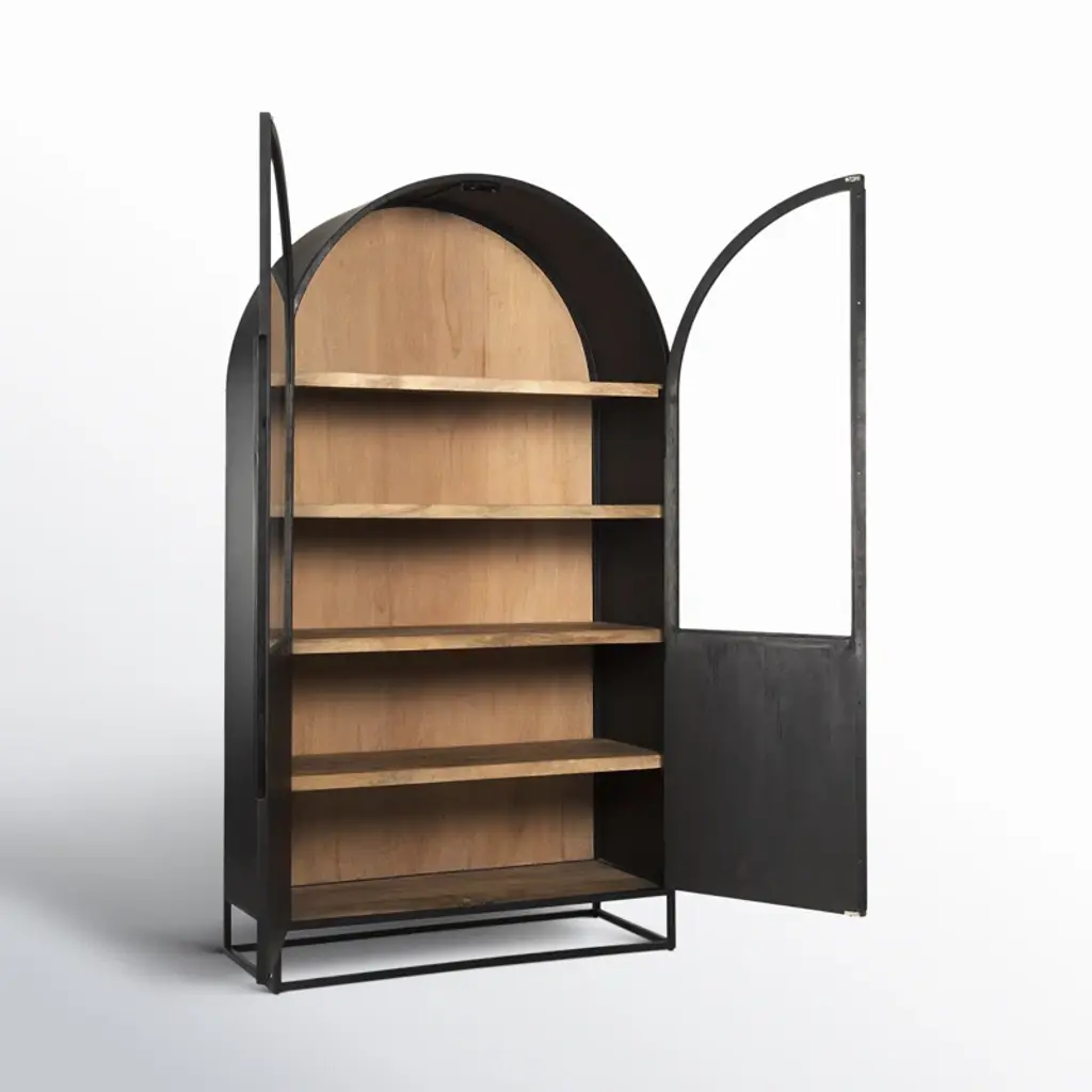 Bring old-world style and lots of storage and display space to any room with our freestanding curio cabinet. Kiln-dried solid wood in a dark finish brings bold contrast to the lighter interior. Tempered glass-paneled doors allow a glimpse of what's inside, while the lower cabinet offers a concealed spot to tuck away items. Sleek iron hardware completes the look.
