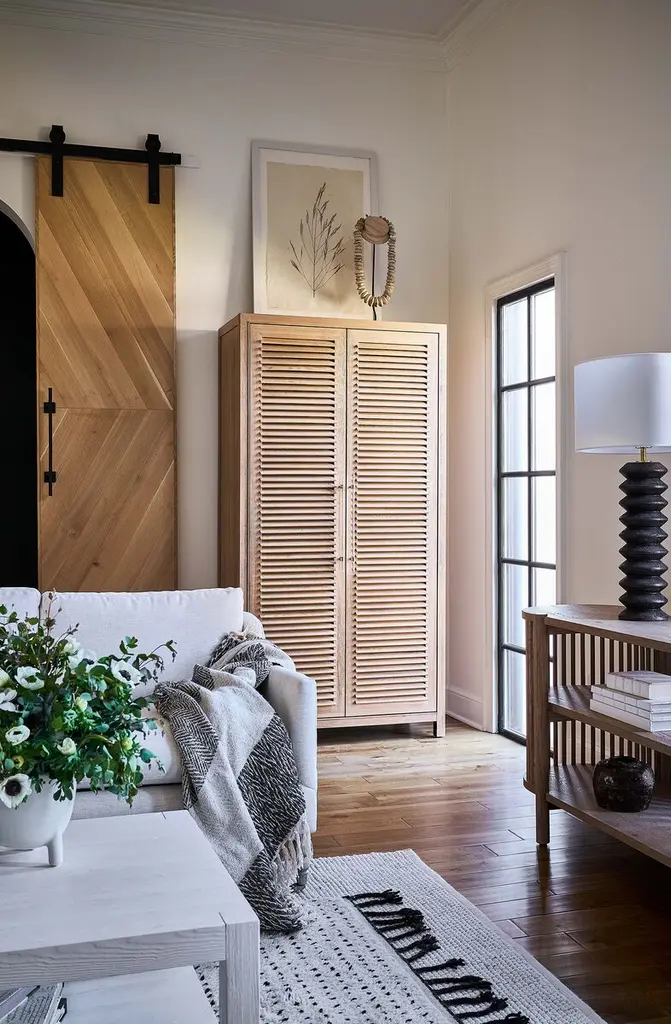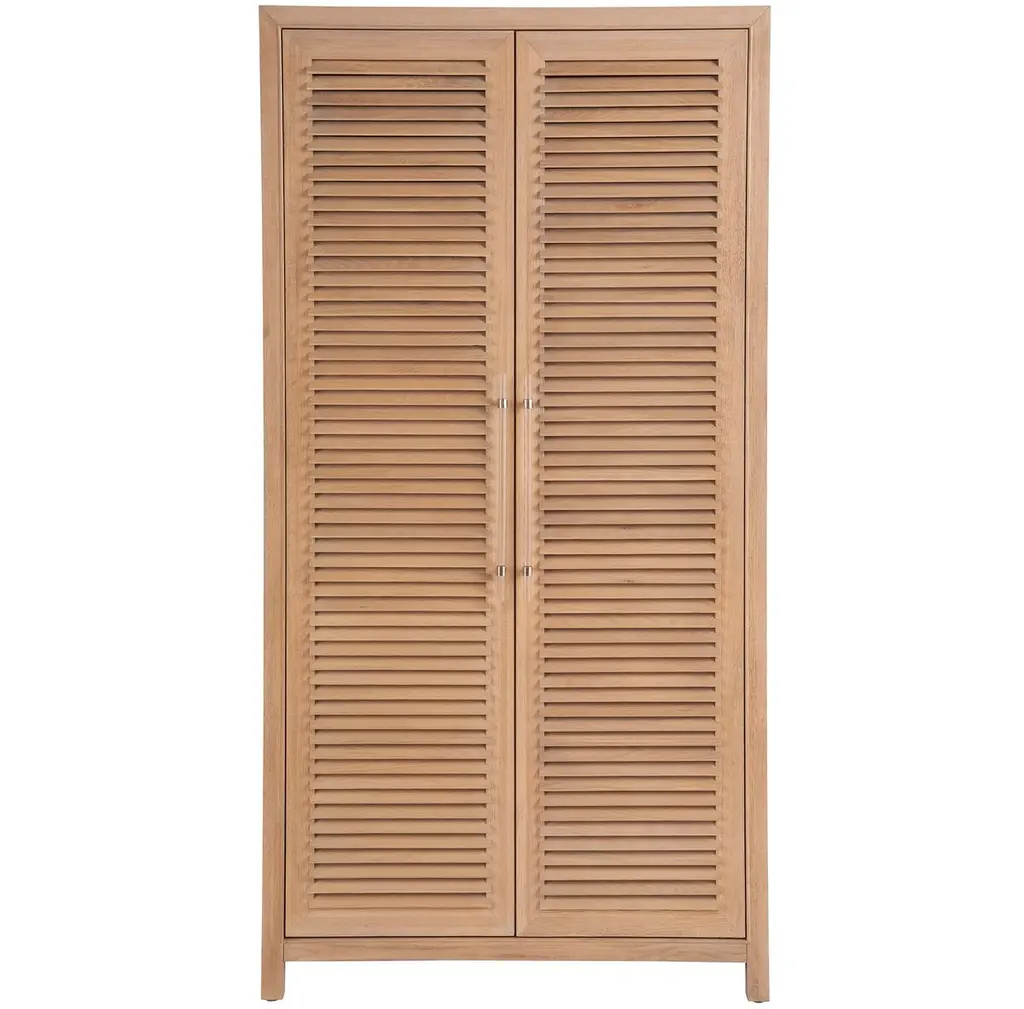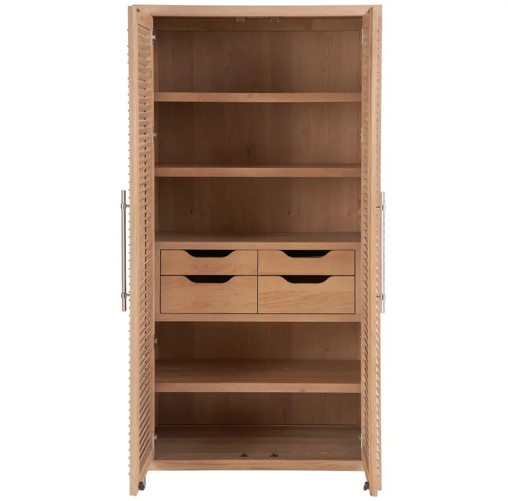 The Coastal Living Utility Cabinet brings the serene beach vibe into your home with its coastal charm and modern functionality. The knotty oak finish exudes warmth, and the louvred doors with a light strip add beachy elegance. Acrylic pulls provide a sleek look. With an abundance of interior storage space, adjustable shelves, tray drawers, and jewelry tray inserts, this cabinet keeps belongings organized and secure. Crafted with high-quality materials, it ensures durability and easy maintenance. Versatile for various rooms, it can serve as a storage cabinet, media console, or bathroom vanity, offering both style and practicality.