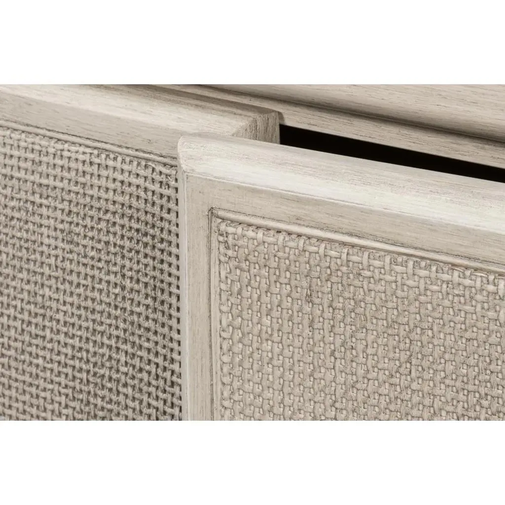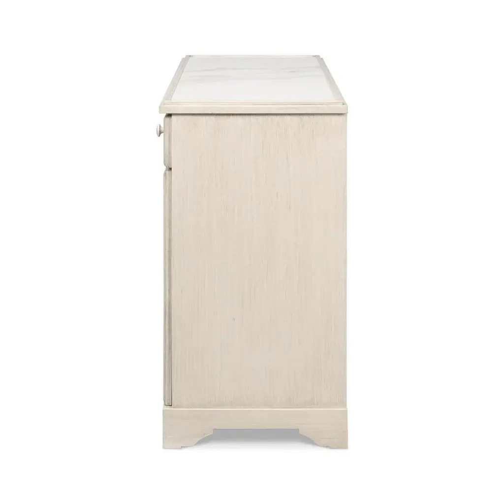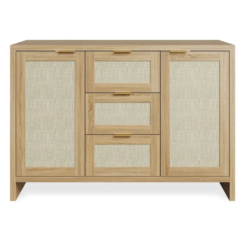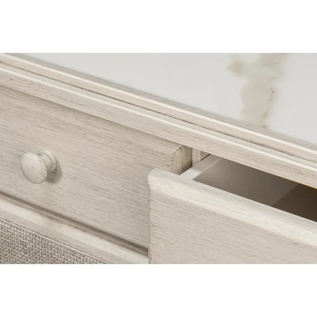 Designed with versatility in mind, this exquisite piece features three spacious drawers above two cane-front cabinets, offering ample storage while maintaining a lightweight, breezy look. The clean lines and soft natural tones evoke the relaxed sophistication of high-end coastal and Hamptons-style furniture, making it an effortlessly chic addition to any space. Topped with a durable porcelain surface, this cabinet is both stylish and practical, perfect for everyday use. Ideal as an entryway console, a dining room sideboard, or even a bar cabinet, the cabinet enhances any room with its understated luxury. Dimensions: 41" W x 18" D x 34" H
