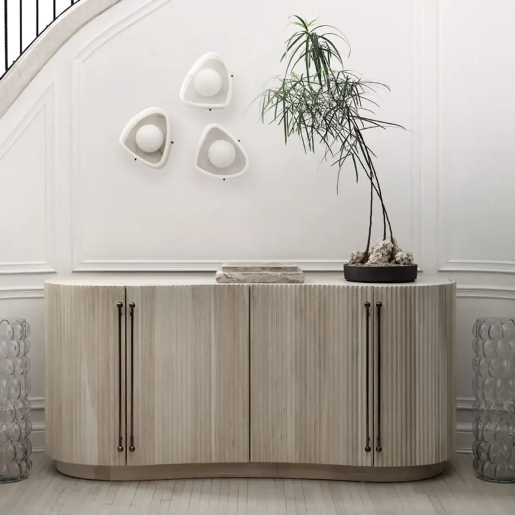 Coastline 72" Oak Wood Fluted Credenza By Brigette Romanek