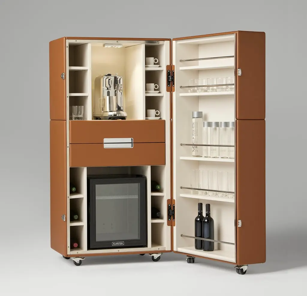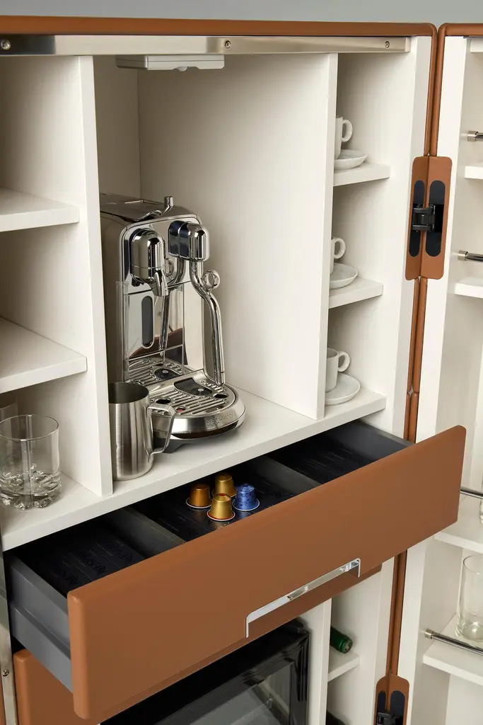 Coffee Station Cabinet In Custom Leather And Lacquer Finishes By Jacobo Ventura