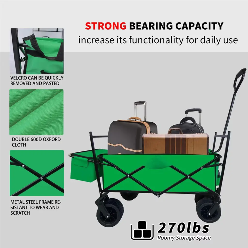 Collapsible Folding Wagon Cart With 7" All Terrain Wheels, Heavy Duty Utility Wagon For Grocery Shopping, Camping, Beach, Outdoor Events, Green