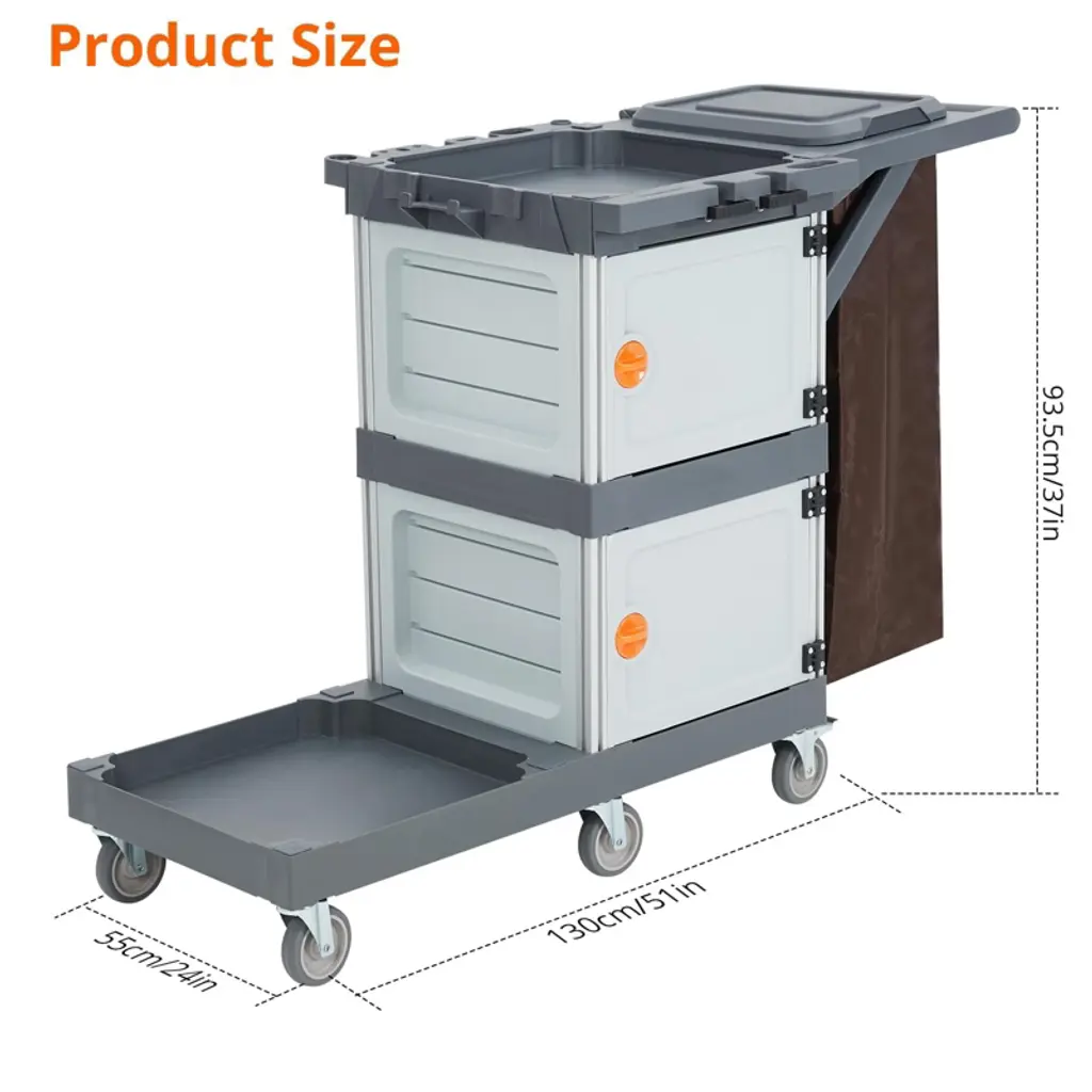 Commercial 3-shelf Janitorial Cart With 2 Cabinets ̈C Cleaning Cart On Wheels With Cover, Shelves & Oxford Storage Bag