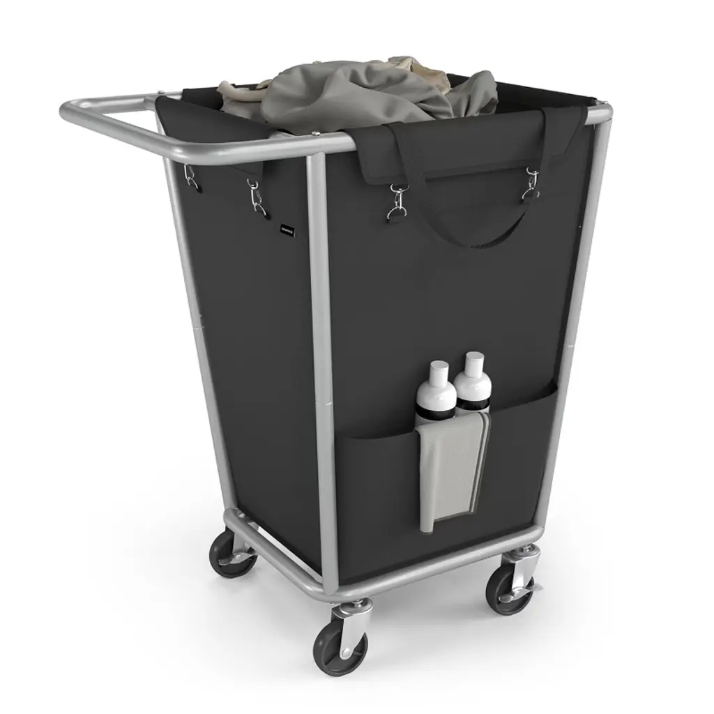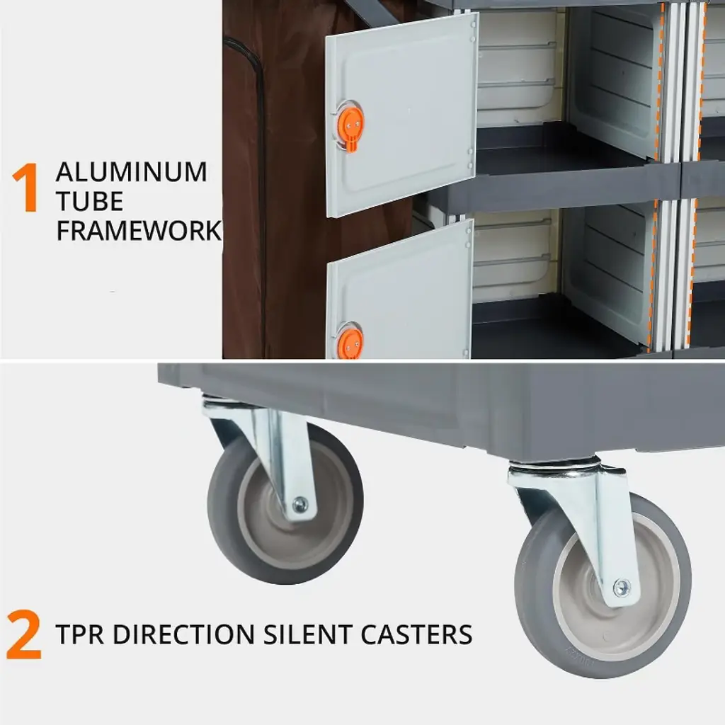 Commercial Janitorial Cart With Cabinet ̈C Hotel Housekeeping Room Service Utility Cart With Wheels, Large Capacity Vinyl Bag, Grey
