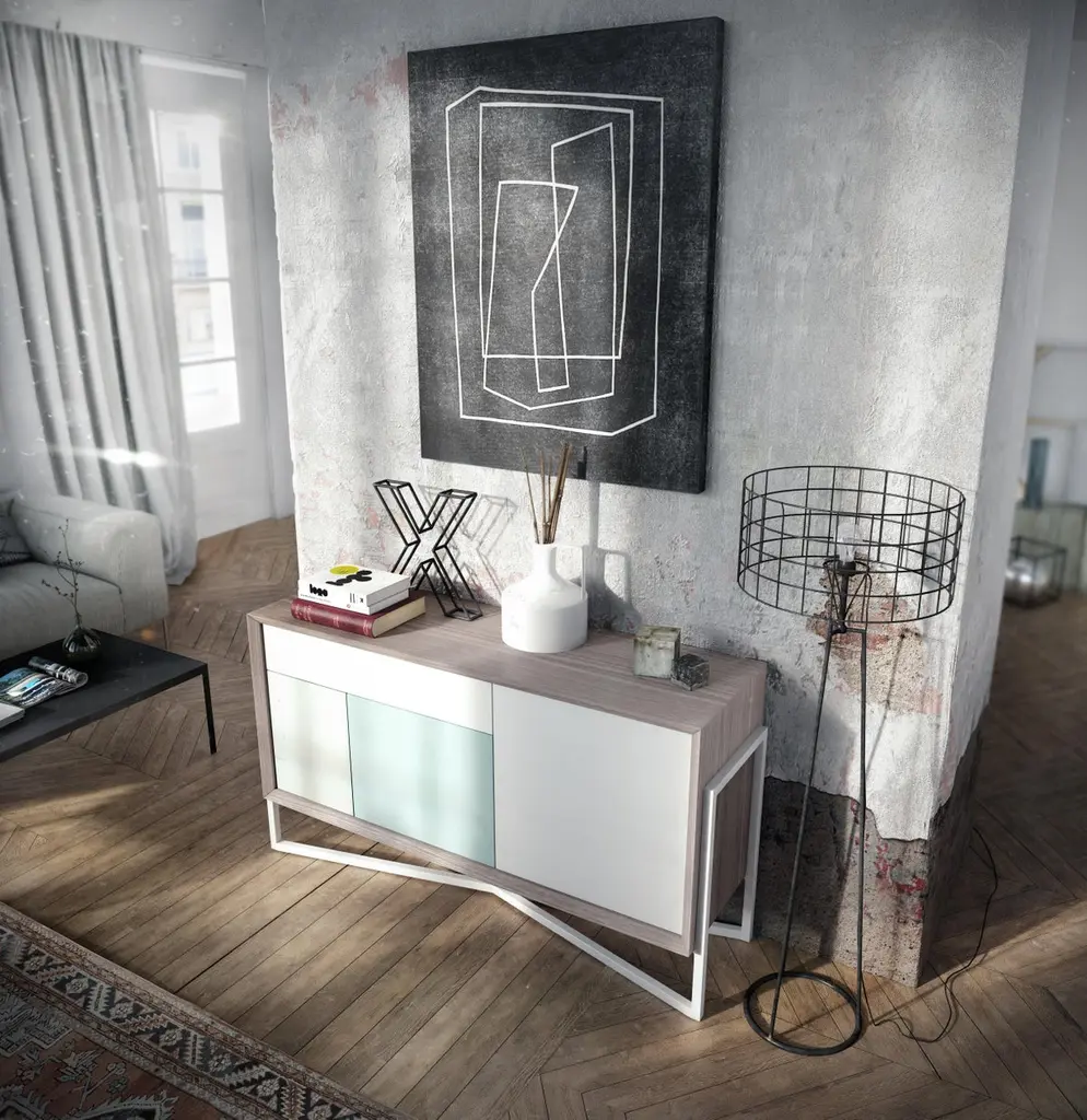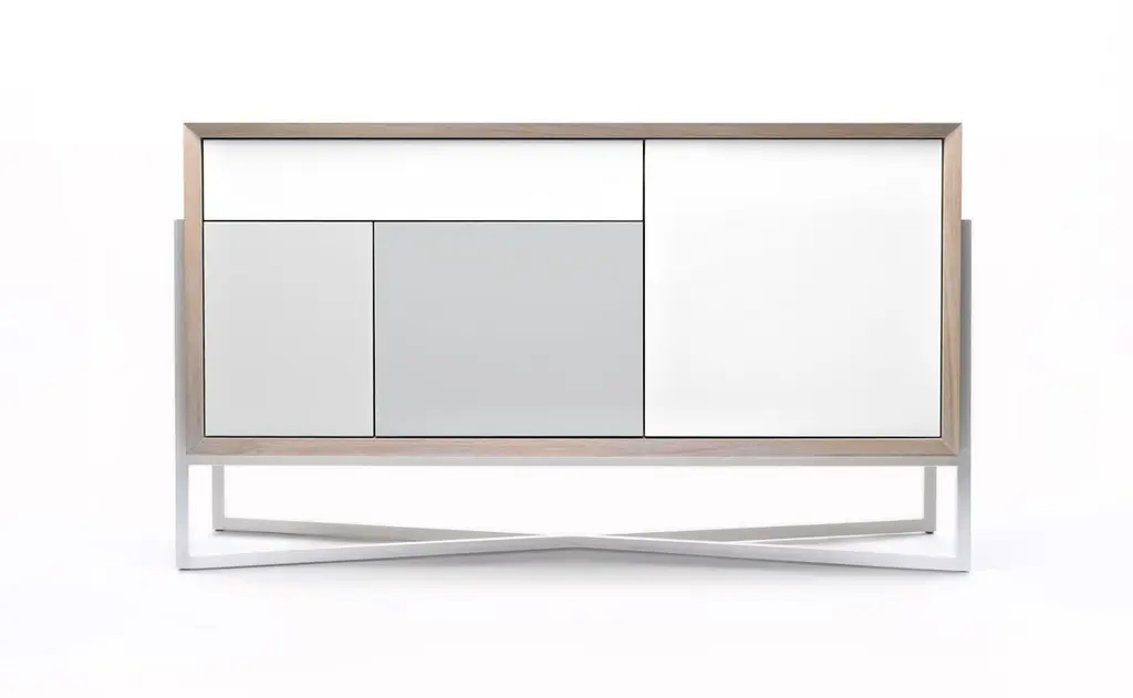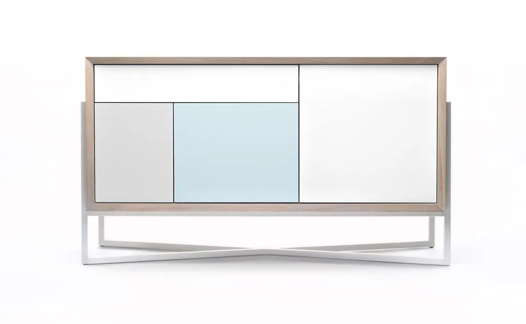 COMO cabinet by PhormyDimensions: D 44 x W 145 x H 80 cm.Materials: bleached solid oak, bleached oak veneer, laquered fronts, powder coated steel base.Different materials and sizes available.COMO is an intriguing combination of simplicity and functionality. Composition of the chest of drawers is created by white and turquoise witha tinge of grey beige. Fields set by the colors after touching reveal the depth of their functionality. Capacious oaken shelves and a drawer allow optimal space arrangement for your things, allowing storage of objects. The chest of drawers is wrapped in characteristic oaken frame cut toward the inside. Putting the chest onto metal base adds lightness to the form.COMO was the finalist of TOP DESIGN AWARD 2016.PHORMY is a brand founded by an architect Max Kobiela.Max Kobiela. Designer, founder of PHORMY brand. Architect, graduated from Faculty of Architecture and Urban Planning Department at Cracow University Of Technology, works in the field of architecture, interior design as well as design and graphics. First drafts of furniture were the answer to private needs of the designer.They were created out of conviction that if there is no suitable form in the market, it has to be designed. Soon after next projects of furniture were created and with time the concept of gathering them all together under one brand name - PHORMY (pol. forms). This is how a family of furniture, based on simple design and precision, was born.Over the last few years, the Phormy brand products have been recognized and awarded in a few competitions. The awards received: LOWBO, PUFFY, KALEIDO and COMO.