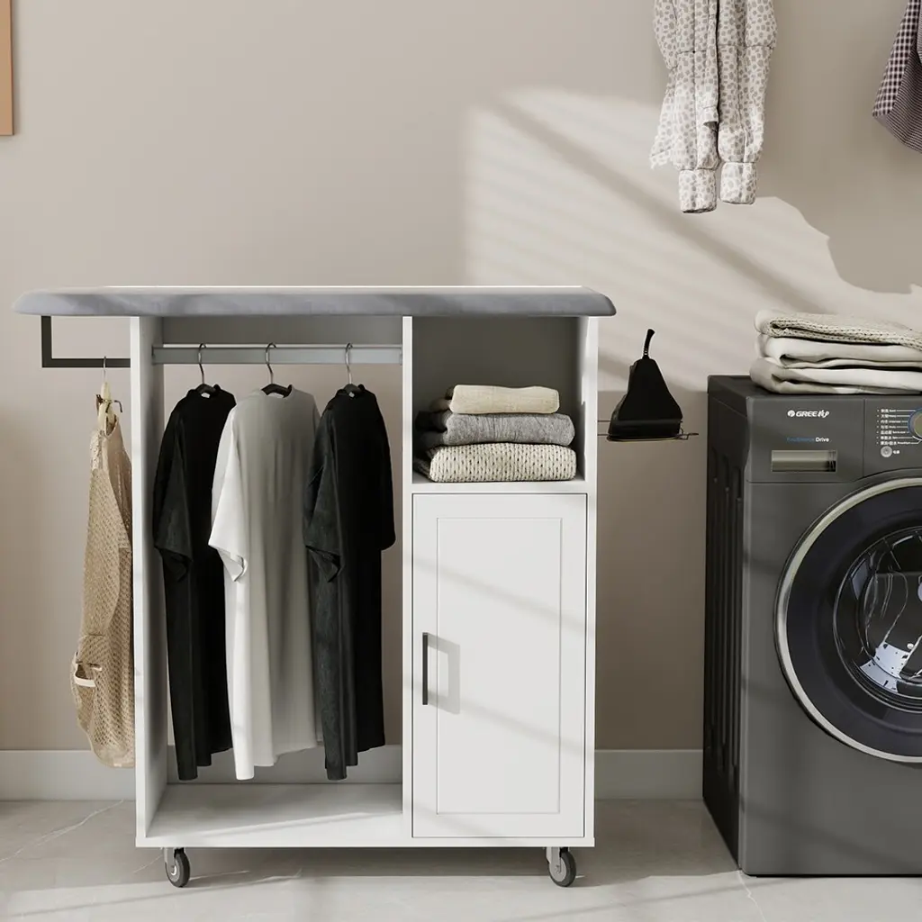 Compact & Modern Ironing Cart With Rolling Board, Multipurpose Cabinet For Laundry, Bedroom, And Cloakroom - White