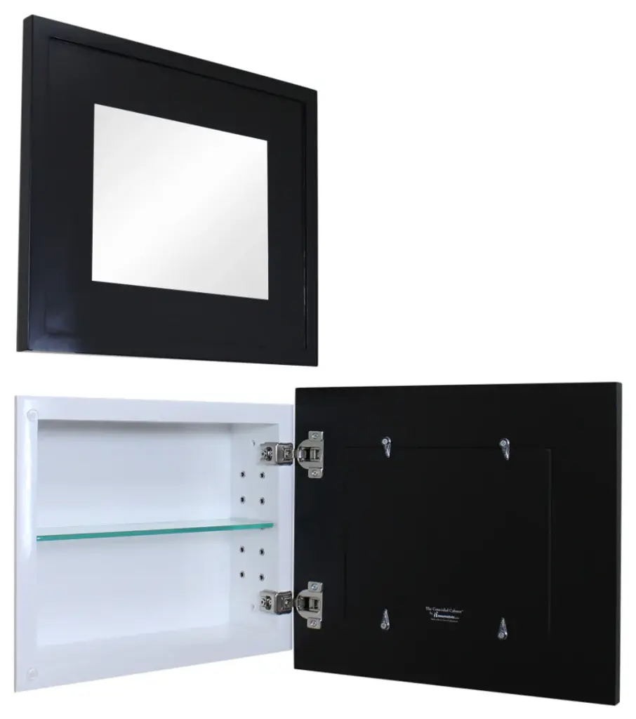 Compact Portrait 11"x14" Mirrored Medicine Cabinet By Fox Hollow Furnishings, Black