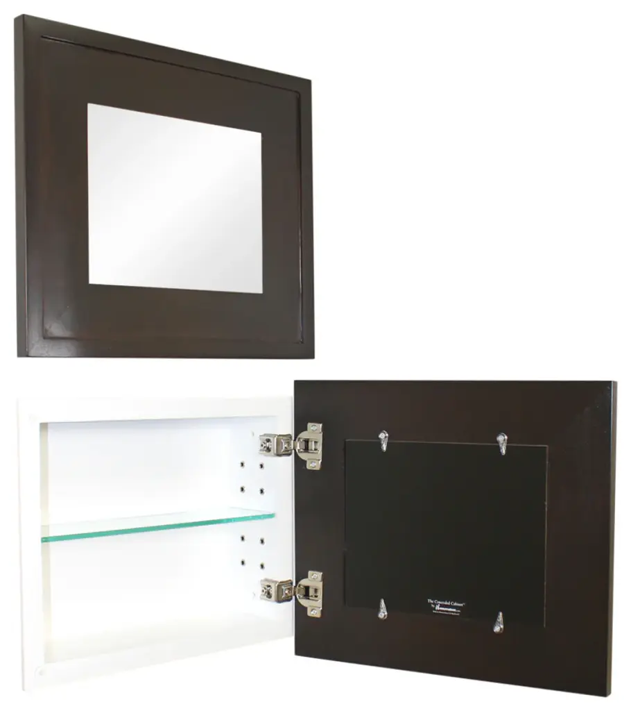 Concealed Picture Frame Medicine Cabinet, Coffee Bean, 13 1/8"x16"