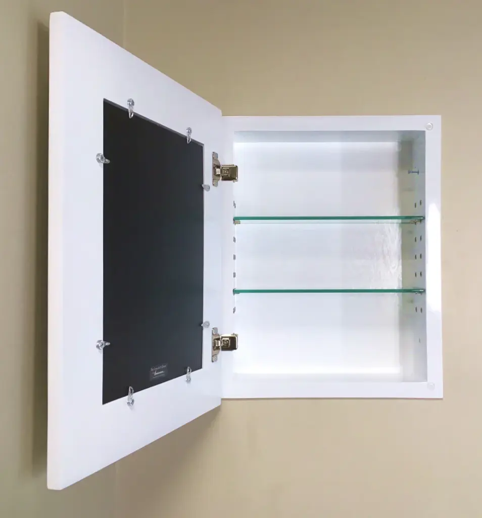 Concealed Picture Frame Medicine Cabinet, Shaker White, 13 1/8"x16"