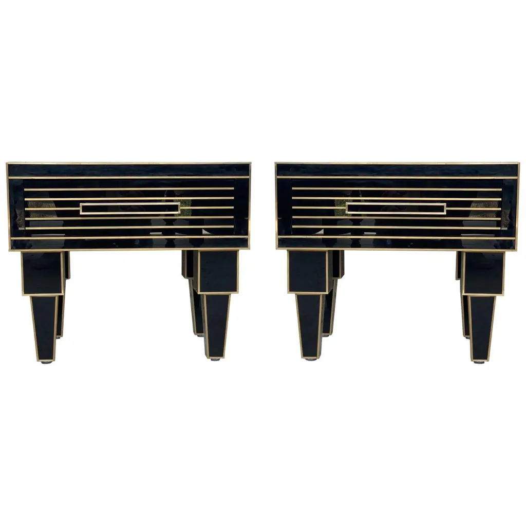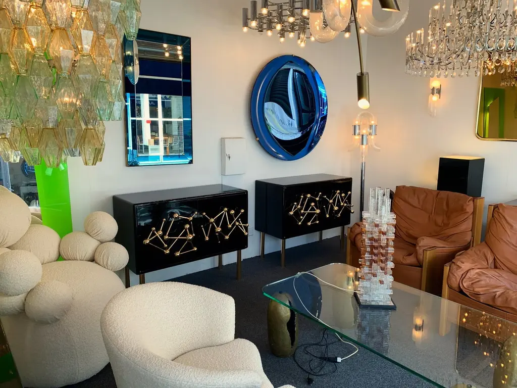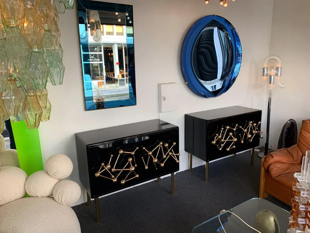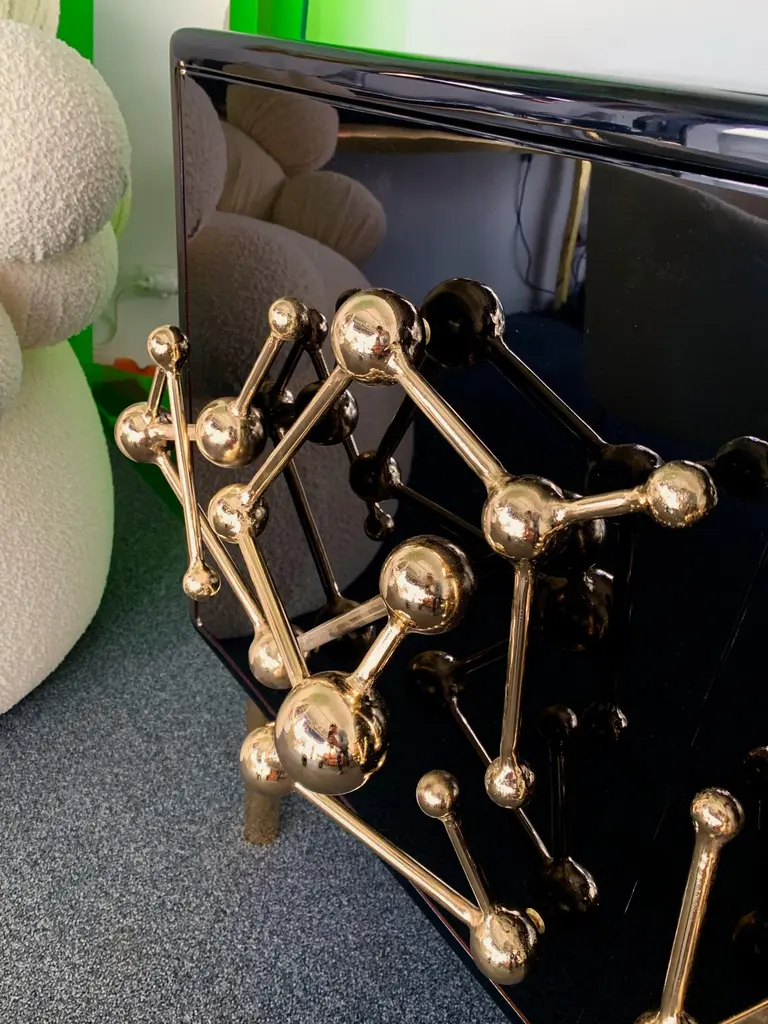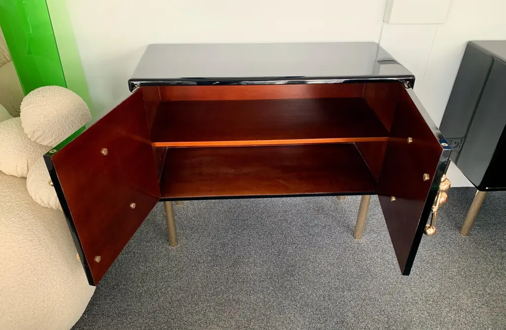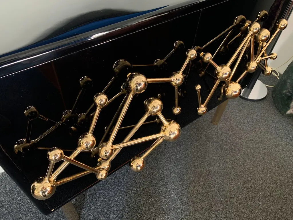 Contemporary Atomo black lacquered cabinets buffets by the Italian designer Antonio Cagianelli , sculpture handle and feet in nice gilt wrought iron made in gold bath 24-karat, in a brass stylePrice by cabinet.