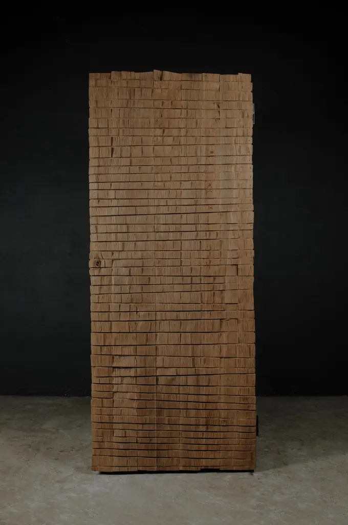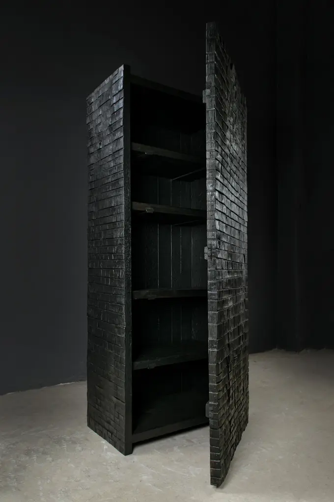 Contemporary Brutalist Cabinet made of solid oakDimensions: 180 x 80 x 45 cmUnique piece made to order. Customizable.Founded by Denis Milovanov, SÓHA design studio conceives and produces furniture design and decorative objects in solid oak in an authentic style. Inspiration to create all these items comes from the Russian North aesthetics with its severe nature, log huts black from time and climate and scant patterns. Wood is masterfully hand processed with chainsaw or chisel, whereby producing beautiful surface patterns. The wood is soaked in boiling baths of linseed oil, creating this special patina and making each creation a very unique piece. Reacting with tanning substances under high temperature, oil gives the objects expressive and natural colours, from light brown to charcoal-black. ---------Artist, designer and the founder of DENIS MILOVANOV and SÓHA brands, Denis Milovanov is a regular partaker of prestigious international exhibitions and fairs such as PAD Paris, Maison&Objets, Design Miami/Basel. Milovanov received the Product Design award at the Interni Design Awards in 2016. He collaborated with Zaha Hadid Architects in 2012 and Boris Vervoordt in 2015. The designer was born on April 25, 1975, in Moscow. He studied woodworking at the 303 Higher Technical School in 1990-1993. In 2012 Milovanov established DENIS MILOVANOV workshop where he created design-art objects and the functional kitchen utensils series. In 2016 he established the SÓHA brand.