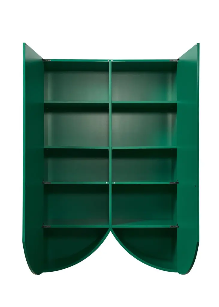 Cabinet 'Bridges' by Muller Van Severen, Large, Curtain, GreenDimensions: 120 x 52 x 180 cm47,2 x 20,5 x 70,9 inModel presented:Bridges CurtainLarge sizeGreen color2 LegsBridges is a collection of cabinets designed by Muller Van Severen. MVS developed the cabinets from their series of ‘Wave’ vases. The vase silhouettes were brought into handmade cabinets with unique cutout bases that transcend function. Their refined colours and glossy finishes emphasise structure, standing out with a sculptural beauty. Alone or as a whole, the Bridges cabinets create a colourful architecture that is vibrant and spacious and, of course, full of personality.Muller Van Severen was founded in 2011 by Belgian artist duo Fien Muller and Hannes Van Severen. They are both artists, and their work showcases their appreciation of the natural beauty of materials and how materials can speak for themselves.
