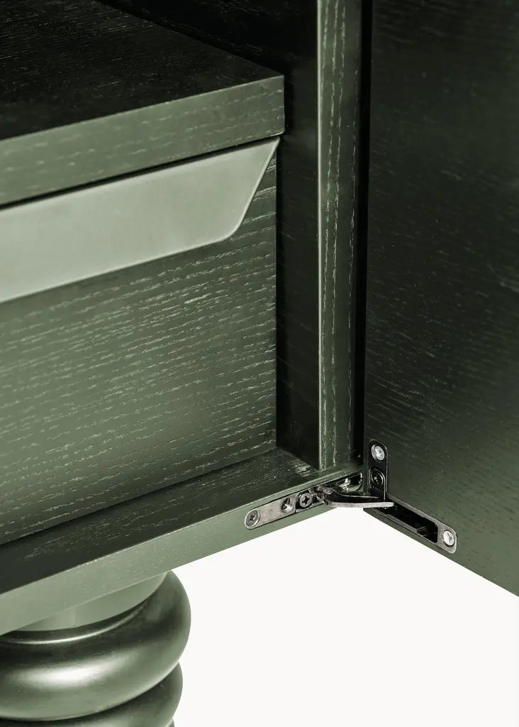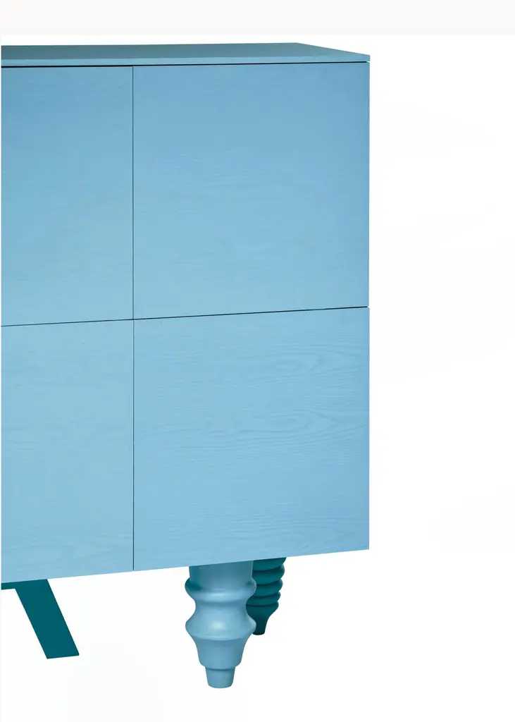 Cabinet 'Multileg' by Jaime Hayon, Blue, 200 cmDimensions: 200 x 50 x 80 cm 78,7 x 19,6 x 31,5”Model presented:Ash Top 2 m (blue color)Module 2CModule 1B 8 LegsThe Multileg is more than modular. Designed in 2006, Jaime Hayon’s Multileg cabinet has simple lines and unique legs with a strong sculptural identity.It can be uniquely configured with twelve elaborate leg options, customisable finishes and colours, and a multitude of interior storage variations. The Multileg is disciplined and practical, and it is a storage system that embraces its many forms.Base and top in MDF with a gloss lacquer and 1cm-thick glass top or in natural ash MDF open-pore and painted with an additional ash top.Gloss lacquer body available in off-white, black, electric blue and dark blue. Open-pore body available in hazy blue, egg yolk, black, olive green and berry red.Optional marble top.Legs in solid turned alder wood lacquered in gloss or open-pore and painted in the same colour as the whole piece.Jaime HayonBorn in Madrid in 1974, Jaime Hayon boasts one of the most glittering careers in the recent history of contemporary design.