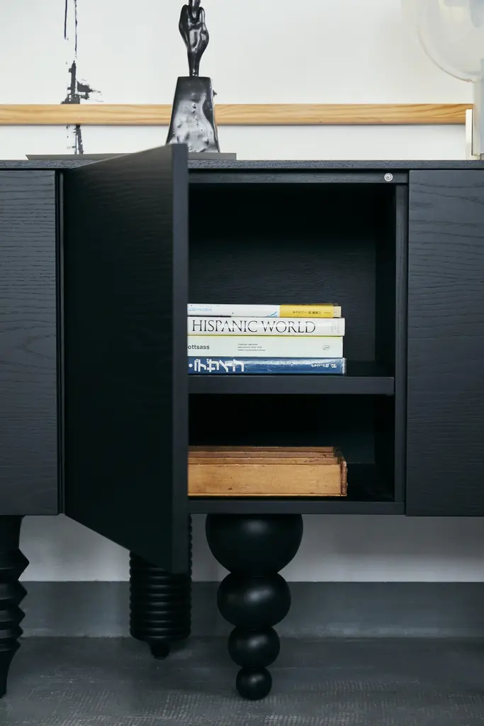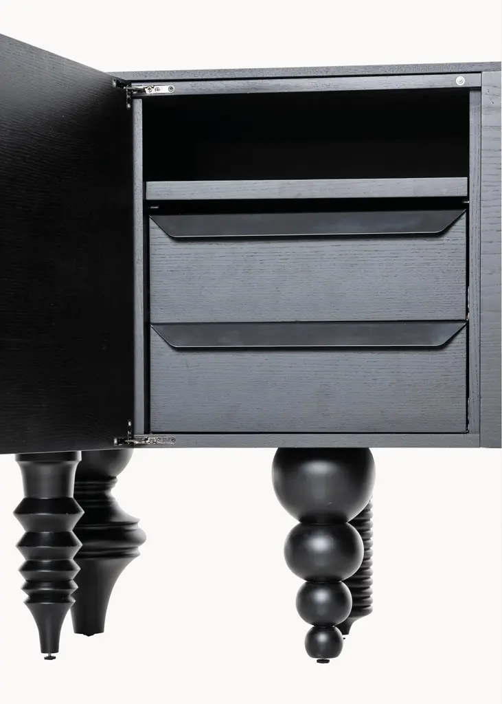 Cabinet 'Multileg' by Jaime Hayon, yellow, 200 cmDimensions: 200 x 50 x 80 cm 78,7 x 19,6 x 31,5”Model presented:Ash Top 2 m (yellow color)Module 2CModule 1B 8 LegsThe Multileg is more than modular. Designed in 2006, Jaime Hayon’s Multileg cabinet has simple lines and unique legs with a strong sculptural identity.It can be uniquely configured with twelve elaborate leg options, customisable finishes and colours, and a multitude of interior storage variations. The Multileg is disciplined and practical, and it is a storage system that embraces its many forms.Base and top in MDF with a gloss lacquer and 1cm-thick glass top or in natural ash MDF open-pore and painted with an additional ash top.Gloss lacquer body available in off-white, black, electric blue and dark blue. Open-pore body available in hazy blue, egg yolk, black, olive green and berry red.Optional marble top.Legs in solid turned alder wood lacquered in gloss or open-pore and painted in the same colour as the whole piece.Jaime HayonBorn in Madrid in 1974, Jaime Hayon boasts one of the most glittering careers in the recent history of contemporary design.
