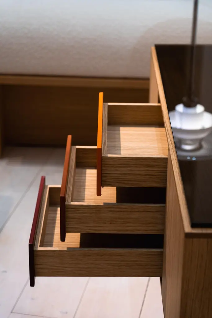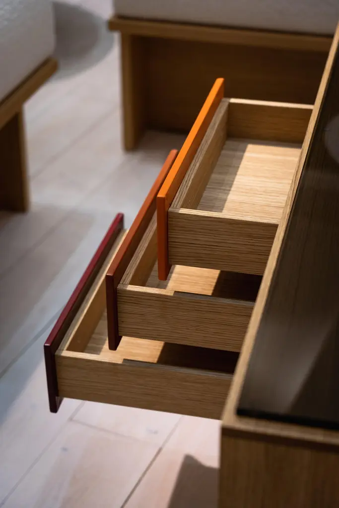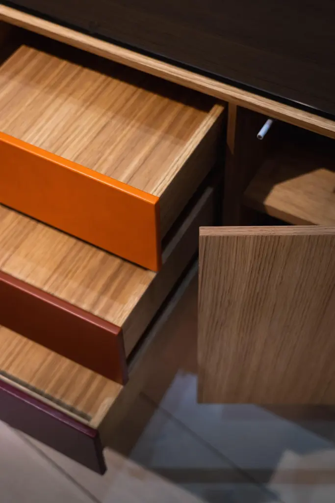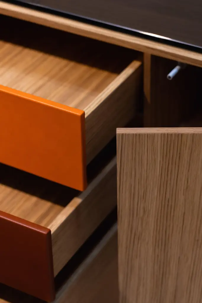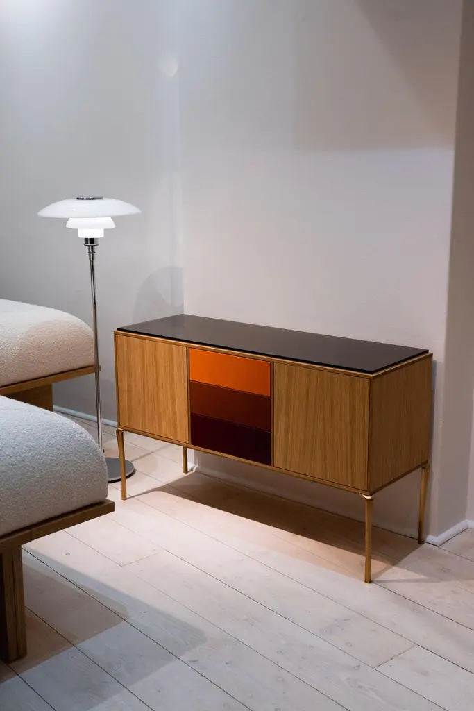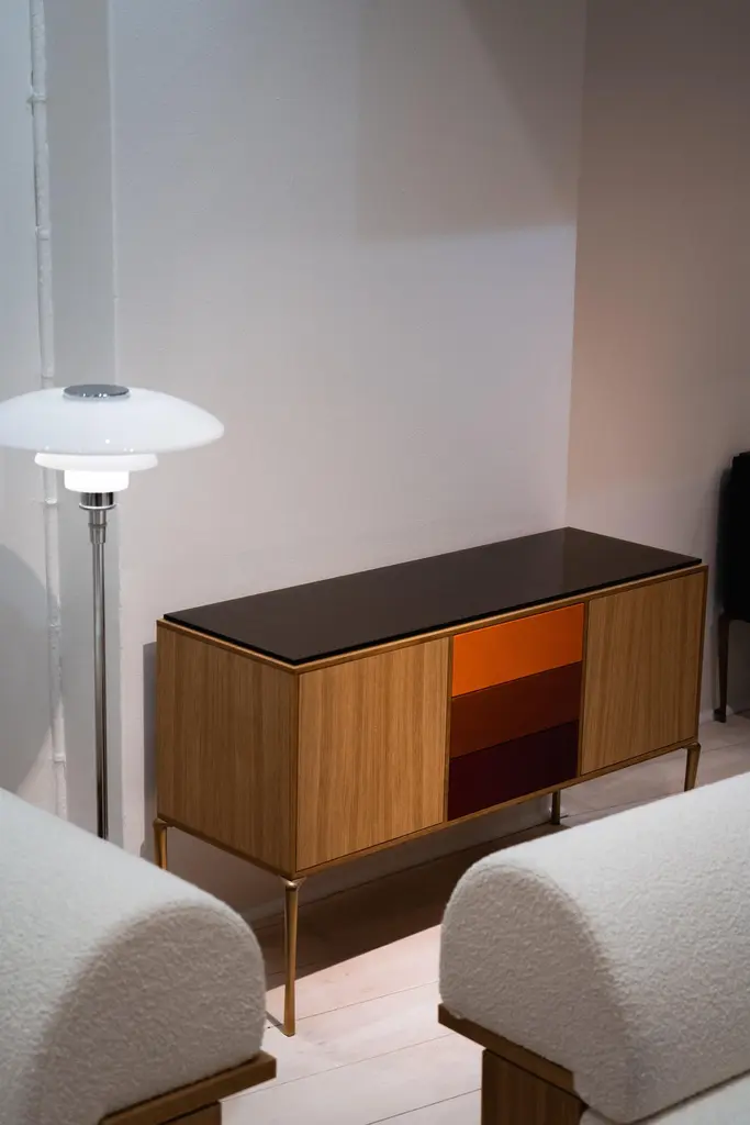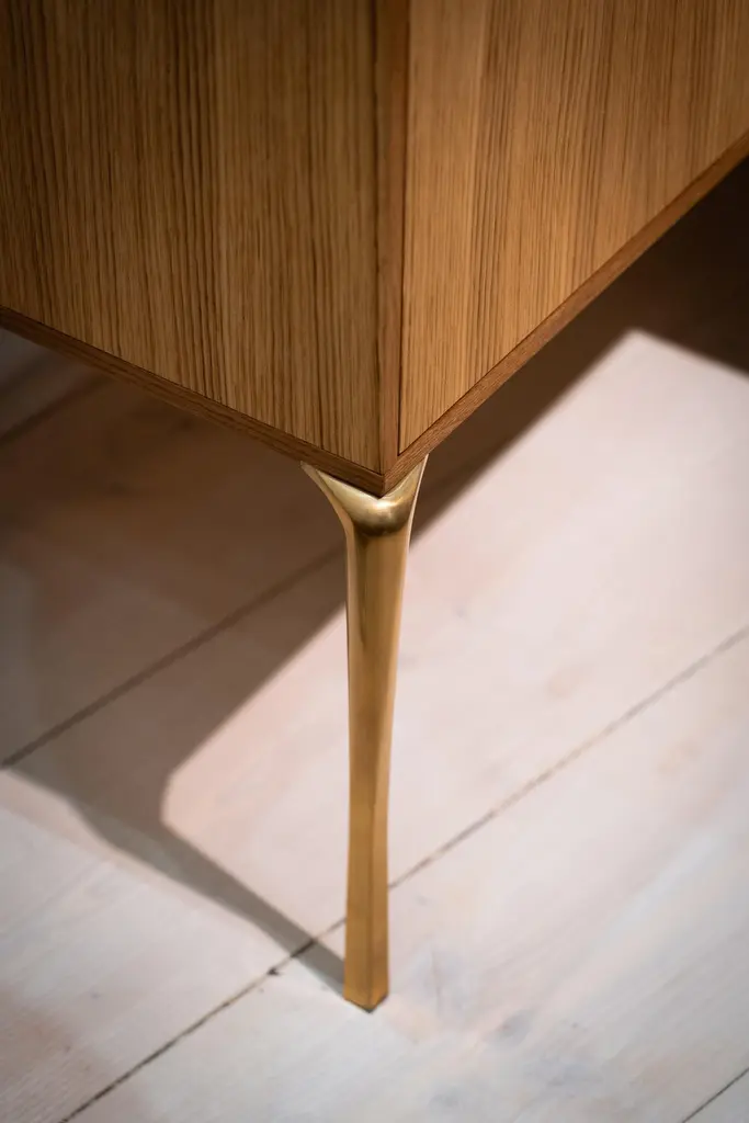 The Copenhagen console by Tom Nybroe is designed for the dining room, the study or any room requiring a beautiful furniture piece that provides space for the things you need nearby.Offering smart, modern storage, the Copenhagen Console is a clean-lined piece of furniture, that celebrates the innate beauty of contrasting materials. Wooden cabinetry and leather-wrapped drawers are counterbalanced by the fine-lined solid brass legs which beautifully transition from round to angular shapes. A tempered top plate in tinted glass provides a perfect complement and surface for one’s collected treasures.The console is designed in modules from 3 to 6 sections and can be customized to suit the individual’s preference for colors and materials.Designed by Tom Nybroe for ToneArt the console is designed in modules from 3 to 6 sections and can be customized to suit the individual’s preference for colors and materials. Each order is hand made by our craftsmen in our workshops and has been inspected and approved by our production manager.