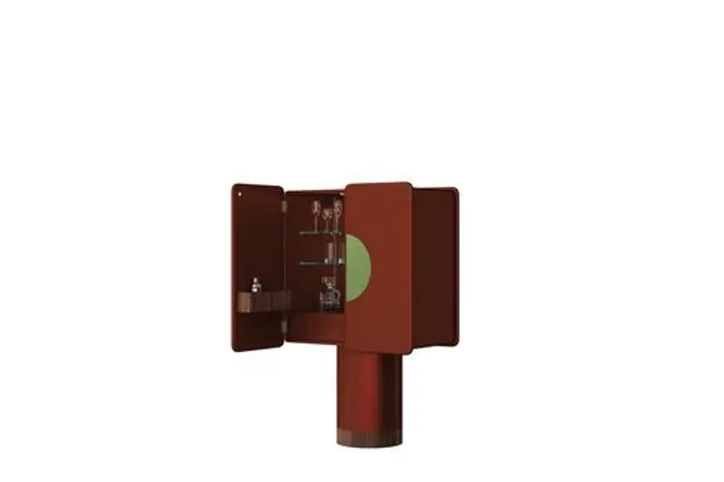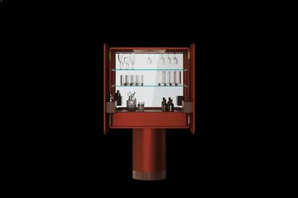 Copper Red Ceramic Cabinet With Two Doors On Cylinder Base By Ultramobili
