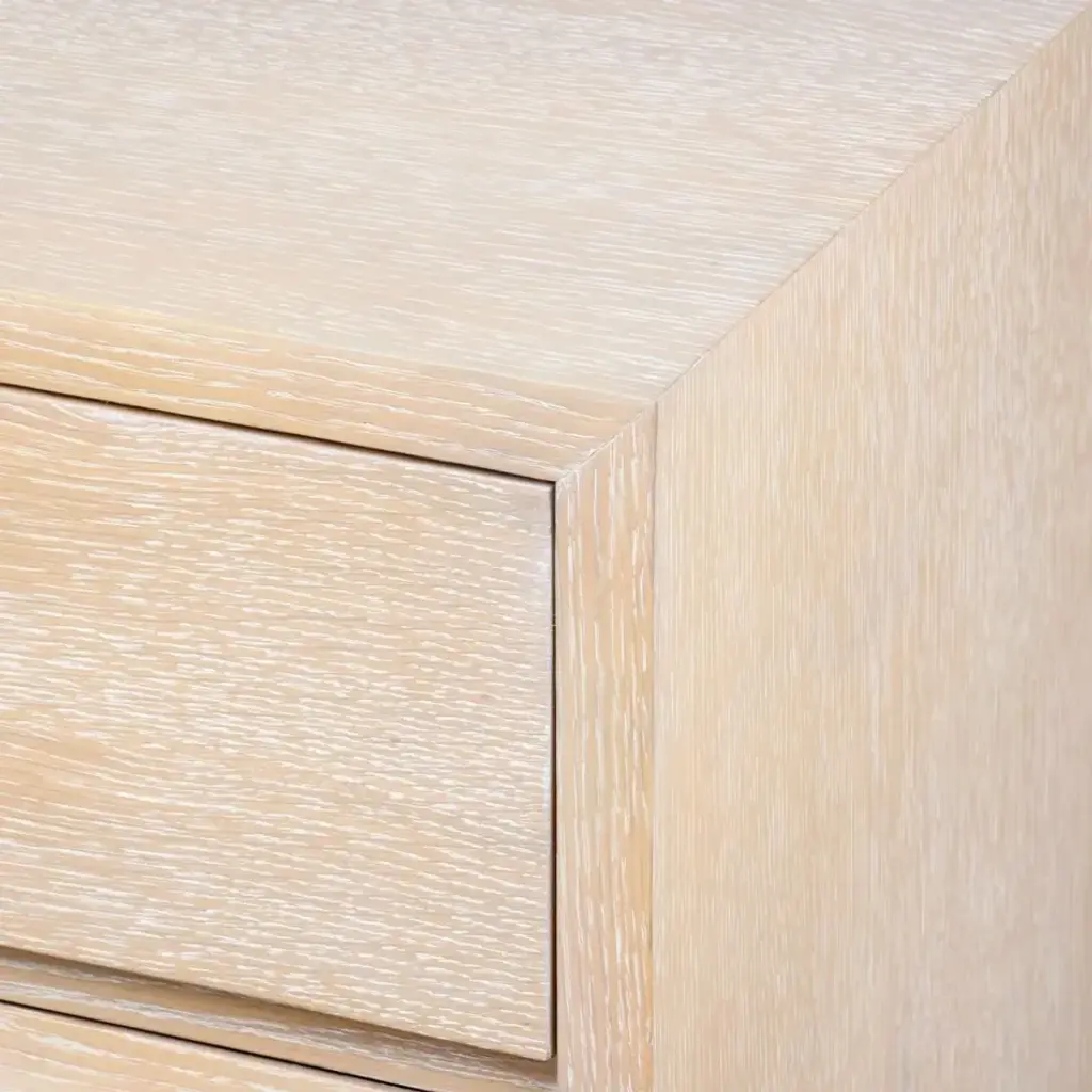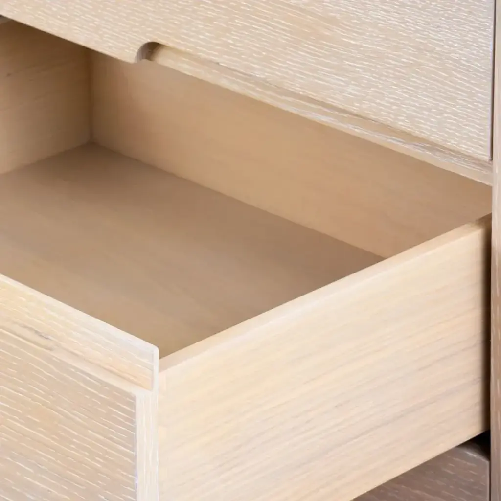 The design of Cora Collection echoes the 1970's in a way which is more luxurious, sophisticated, and contemporary. Crafted from oak and veneers carefully selected for the simplicity of their pattern, the pieces achieve a refined chic that enhances any space without shouting. The cutouts in its front panels are integral to the design and the function serving as both stylish accents as well as drawer pulls. This versatile collection harmonizes with living rooms, family rooms, libraries, or bedrooms.