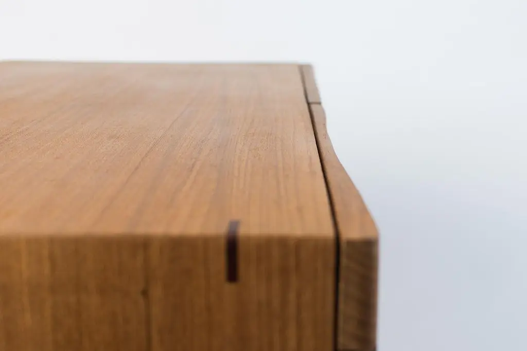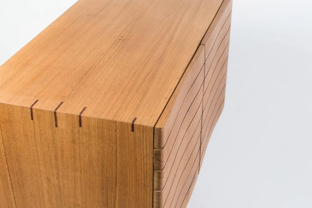 Cordilheira Cabinet was born as an idea to divide two spaces, it has a subtle curve on the front, and the often forgotten rear receives its own design with a dark contrasting tone. The mid-century modern design includes delicately undulating doors which create a feeling of movement and the interior is divided by a shelf in the middle on both sides. An elegantly minimalist piece that should be seen from all angles.Handmade from Brazilian hardwoods Freijó and Cumaru with traditional woodworking methods.Knót Artesanal is a minimalist furniture studio composed of Brazilian architect Renata Gutierrez and Scottish woodworker James Rowland. Specialising in handmade pieces created using traditional techniques and a modern design from their base in Paraty on the tropical 'Green Coast' of Brazil.