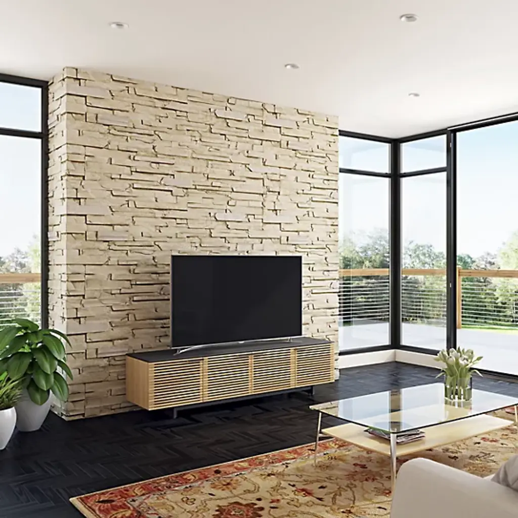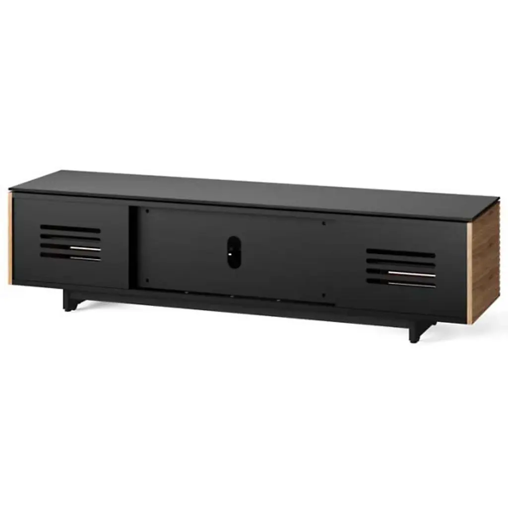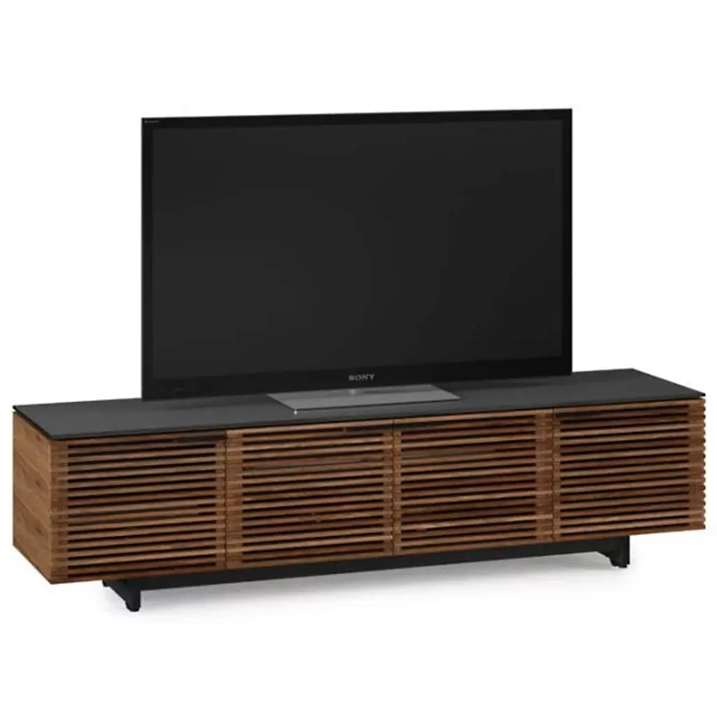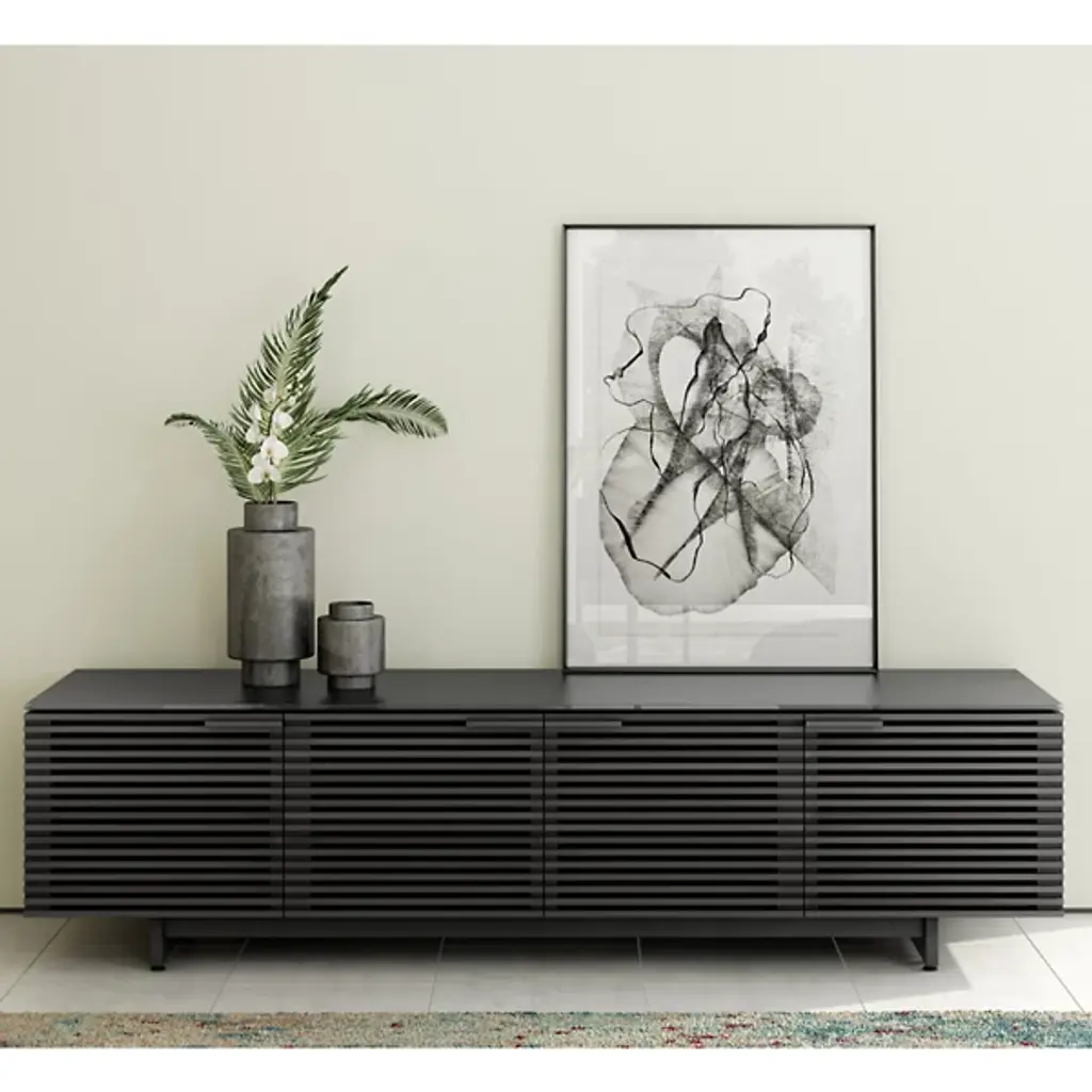 Take the cool style of Corridor on the down low (and long). The BDI Corridor Low Media Cabinet sits low to the floor, and extends over 6 and-a-half feet long to accommodate a very large flat screen TV and a variety of media components. Said components are easily organized in the 3 roomy cabinet spaces; they remain hidden but simple to control behind the signature open slat Corridor door fronts.