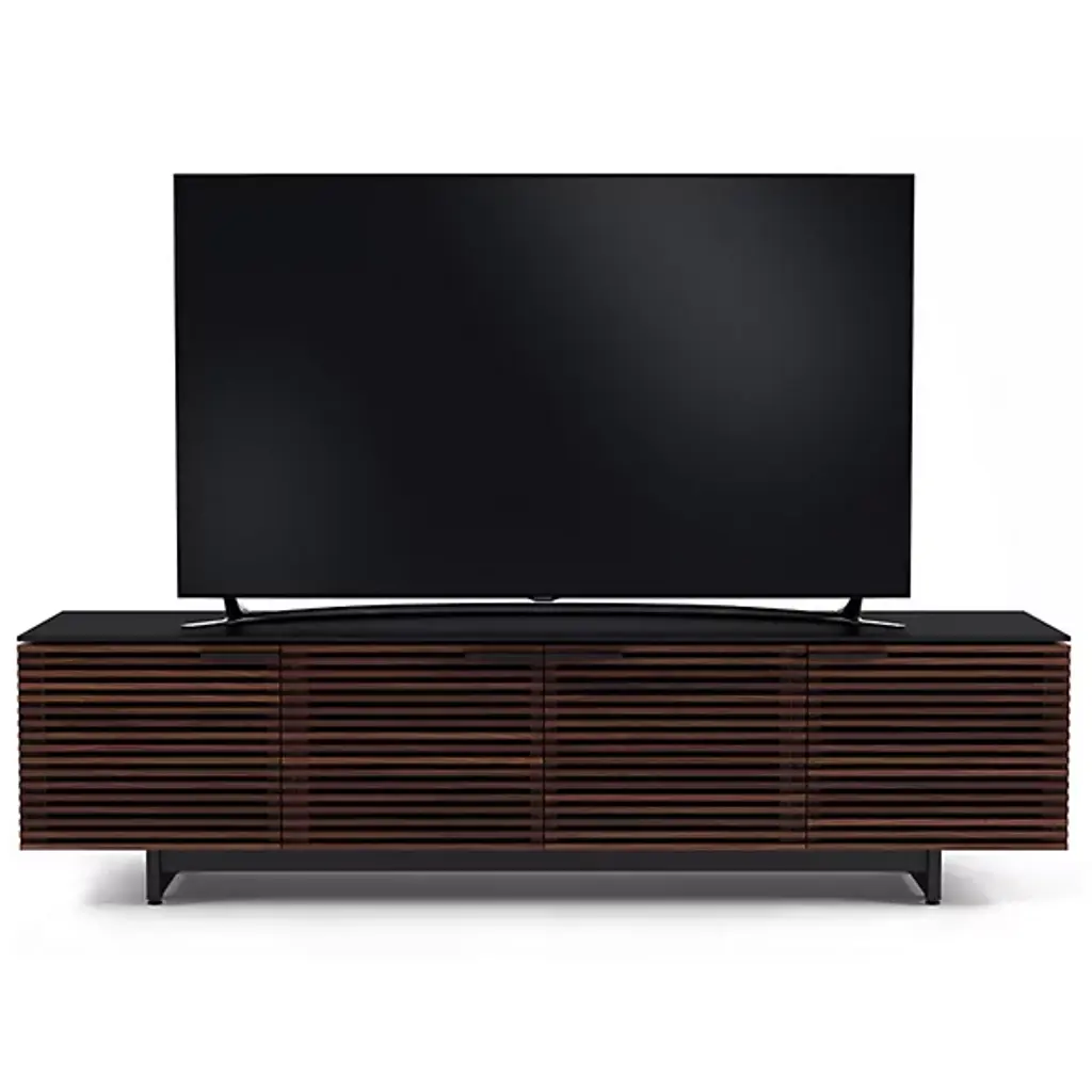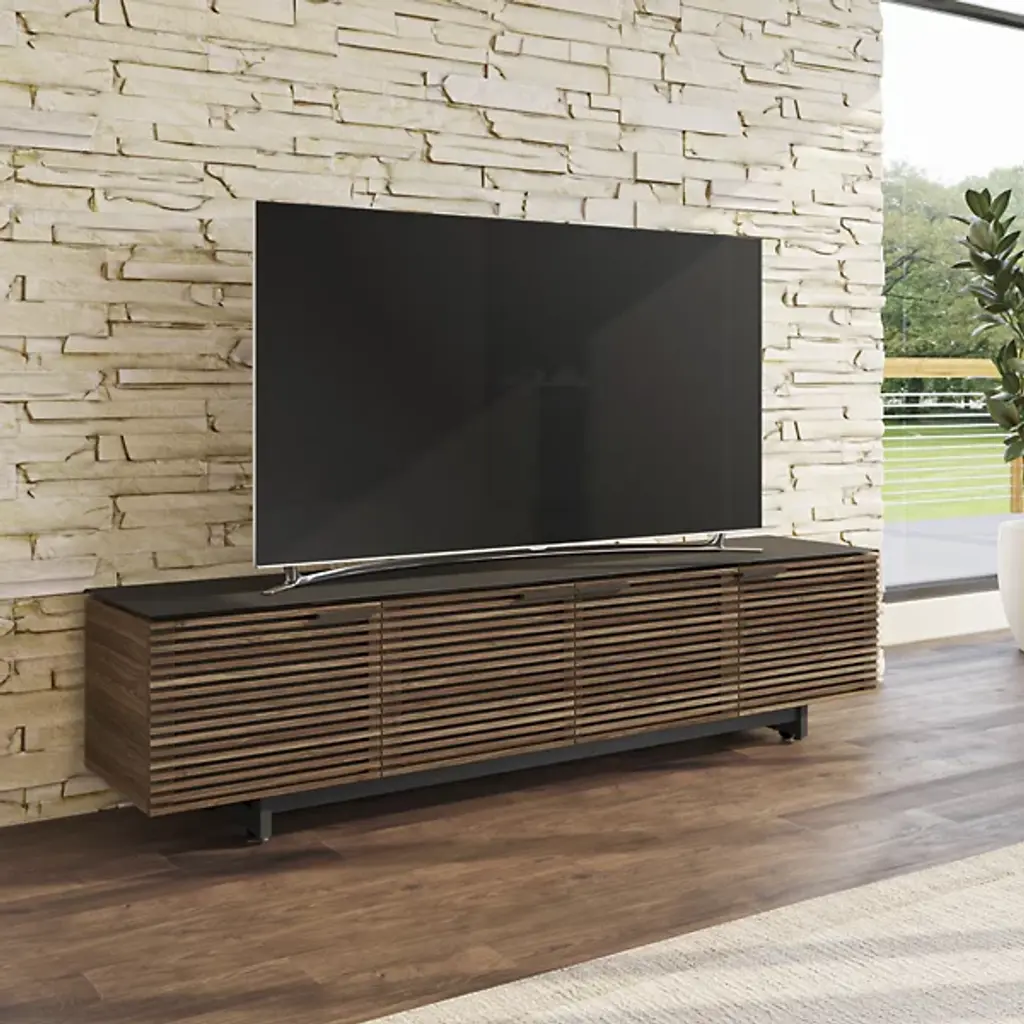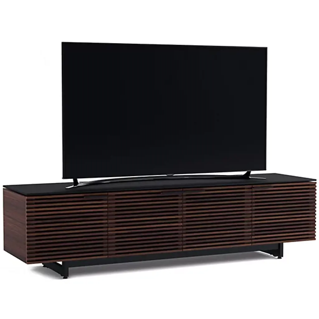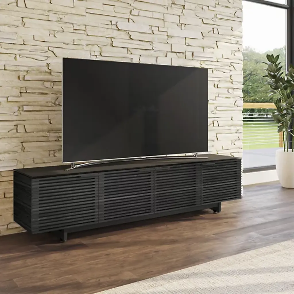 Take the cool style of Corridor on the down low (and long). The BDI Corridor Low Media Cabinet sits low to the floor, and extends over 6 and-a-half feet long to accommodate a very large flat screen TV and a variety of media components. Said components are easily organized in the 3 roomy cabinet spaces; they remain hidden but simple to control behind the signature open slat Corridor door fronts.