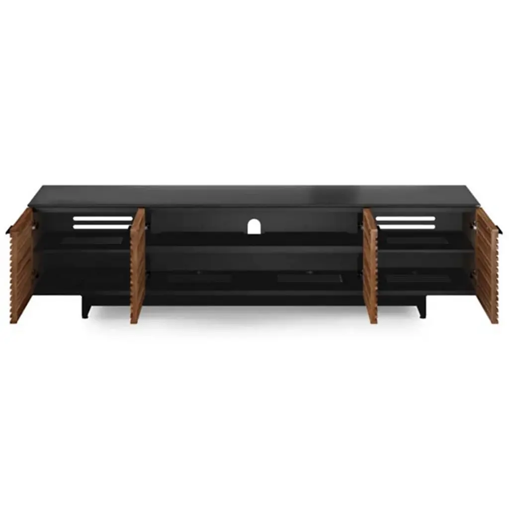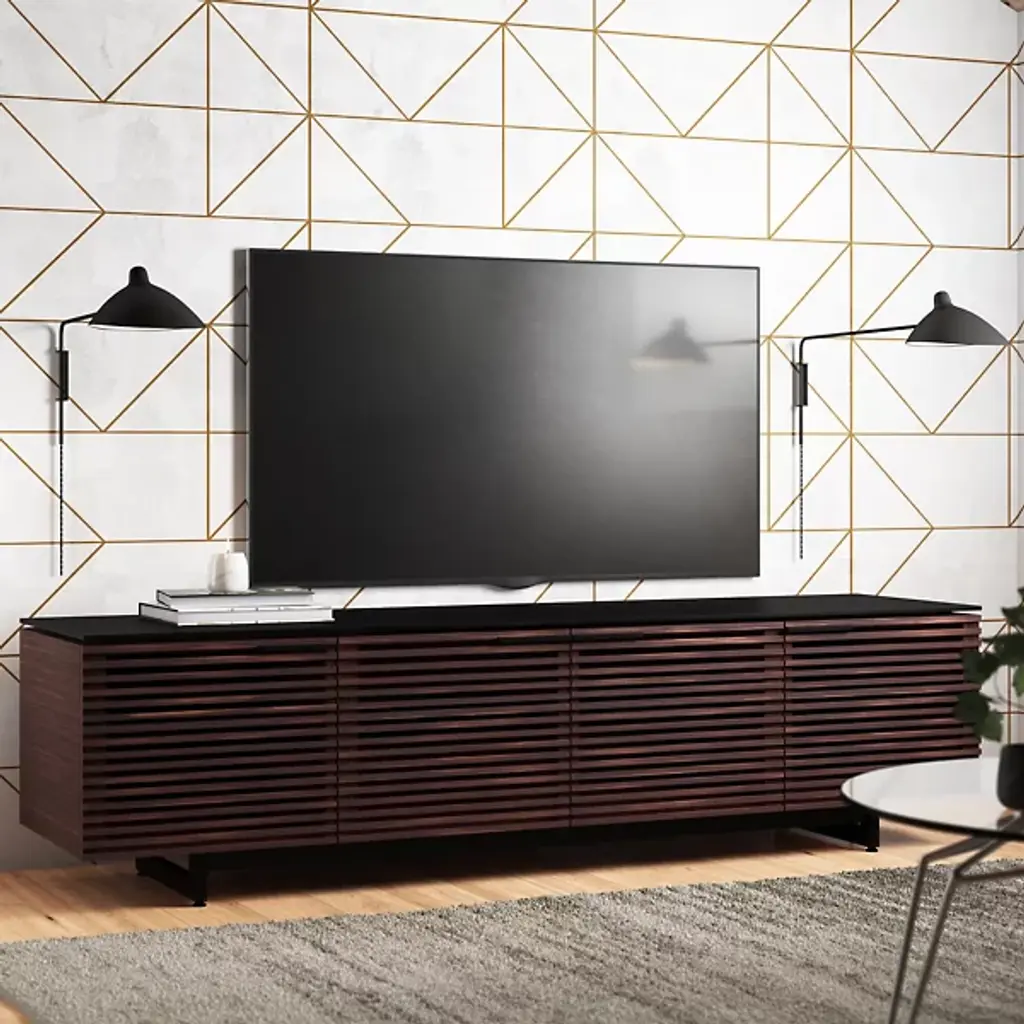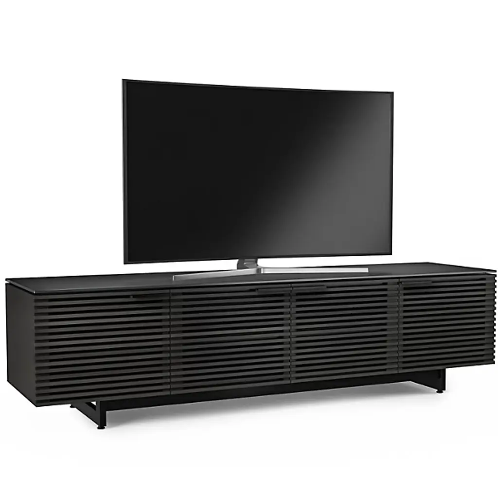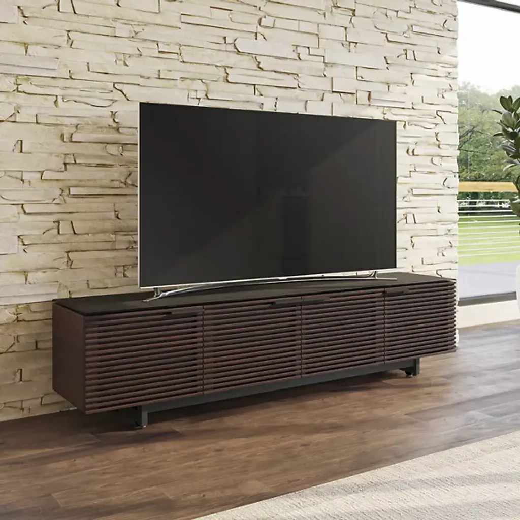 Take the cool style of Corridor on the down low (and long). The BDI Corridor Low Media Cabinet sits low to the floor, and extends over 6 and-a-half feet long to accommodate a very large flat screen TV and a variety of media components. Said components are easily organized in the 3 roomy cabinet spaces; they remain hidden but simple to control behind the signature open slat Corridor door fronts.