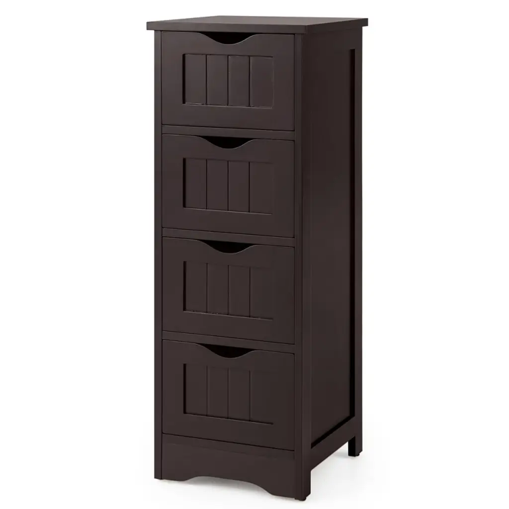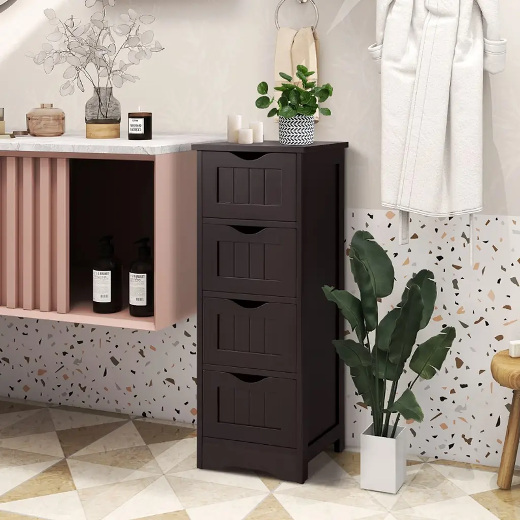 Costway 4-drawer Bathroom Floor Cabinet Free Standing Storage Side Organizer Espresso