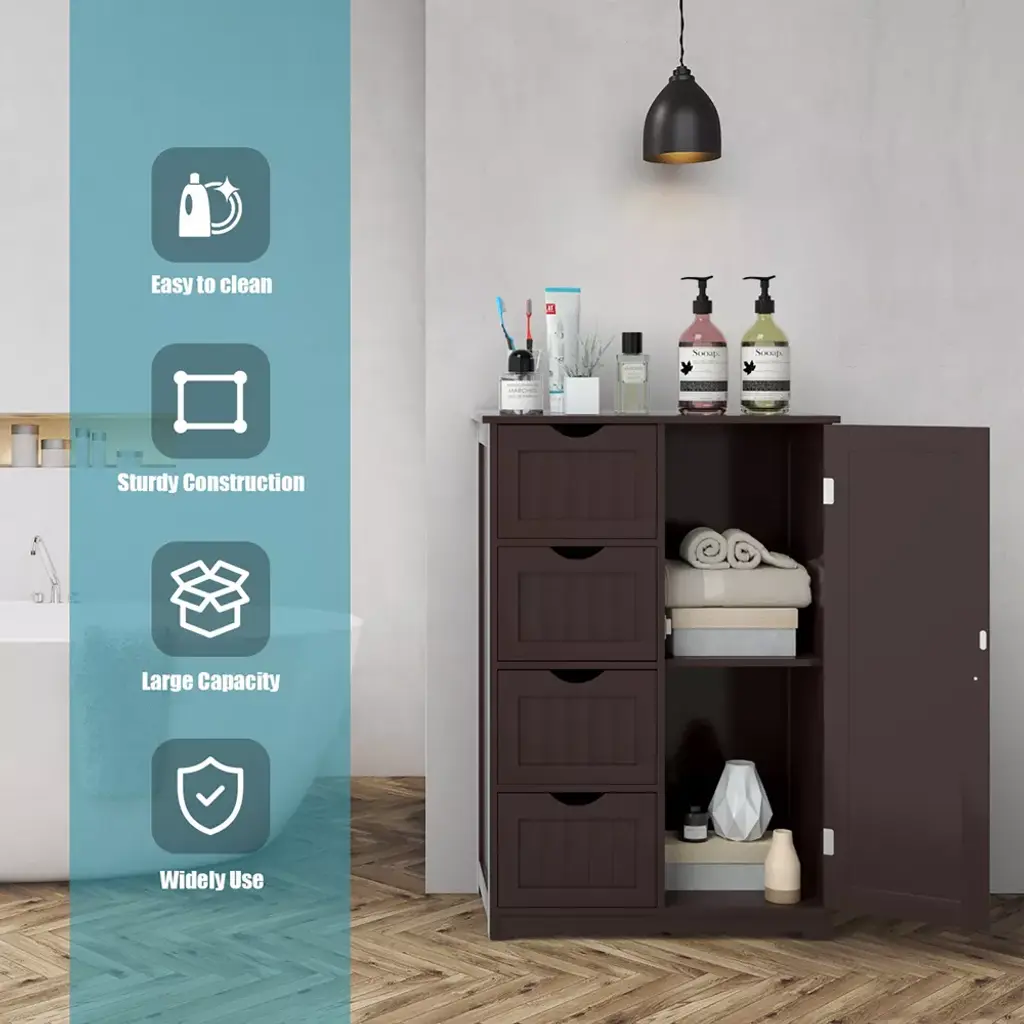 Costway Bathroom Storage Wooden 4 Drawer Cabinet Cupboard 2 Shelves Free Standing Brown