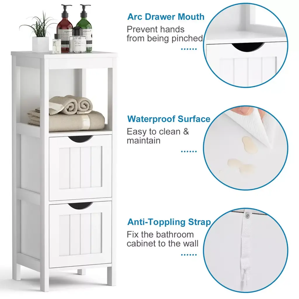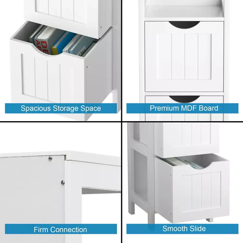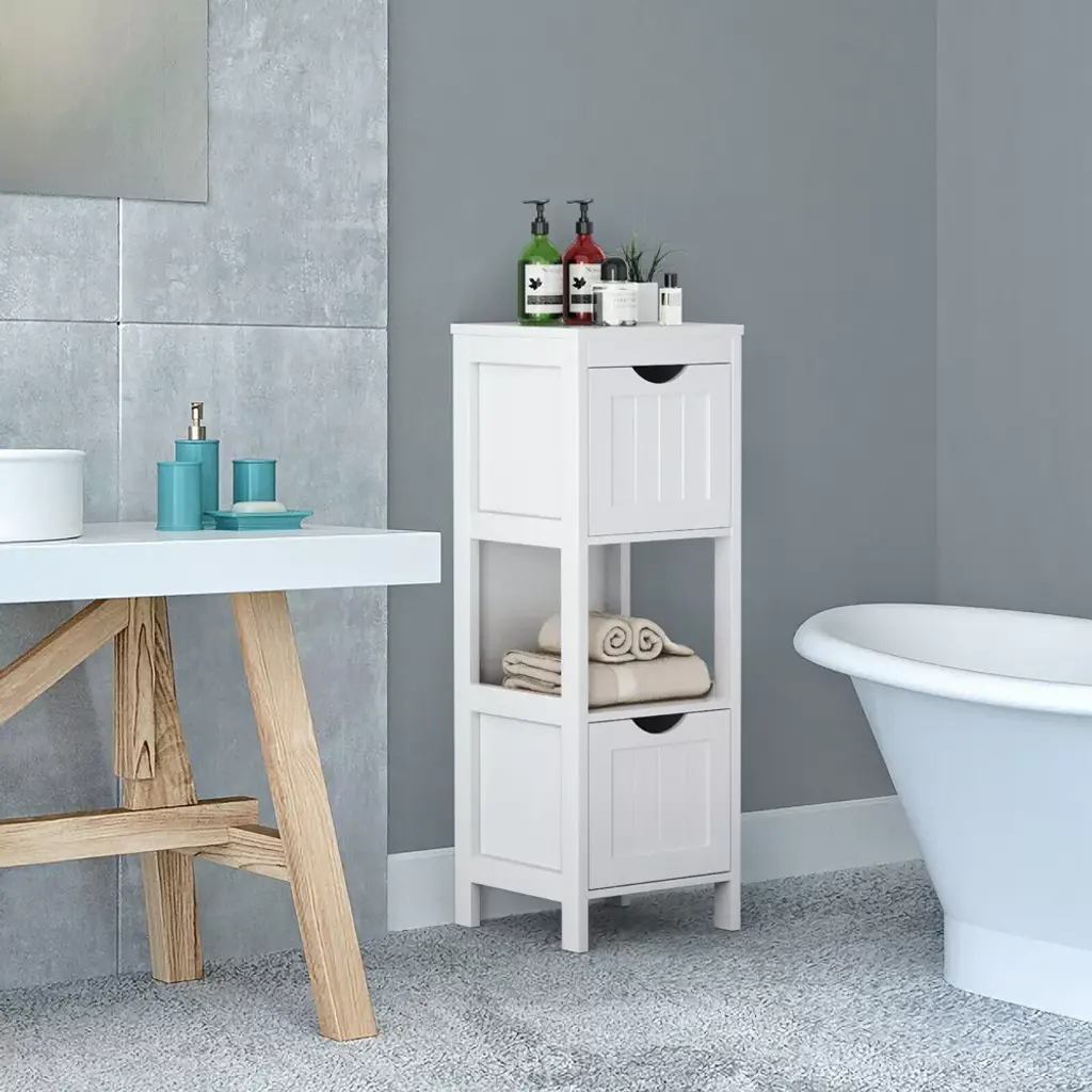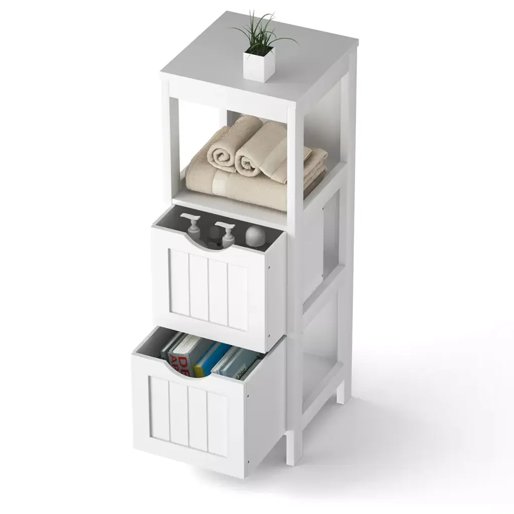 Costway Floor Cabinet Multifunction Bathroom Storage Organizer Rack W/2 Drawers
