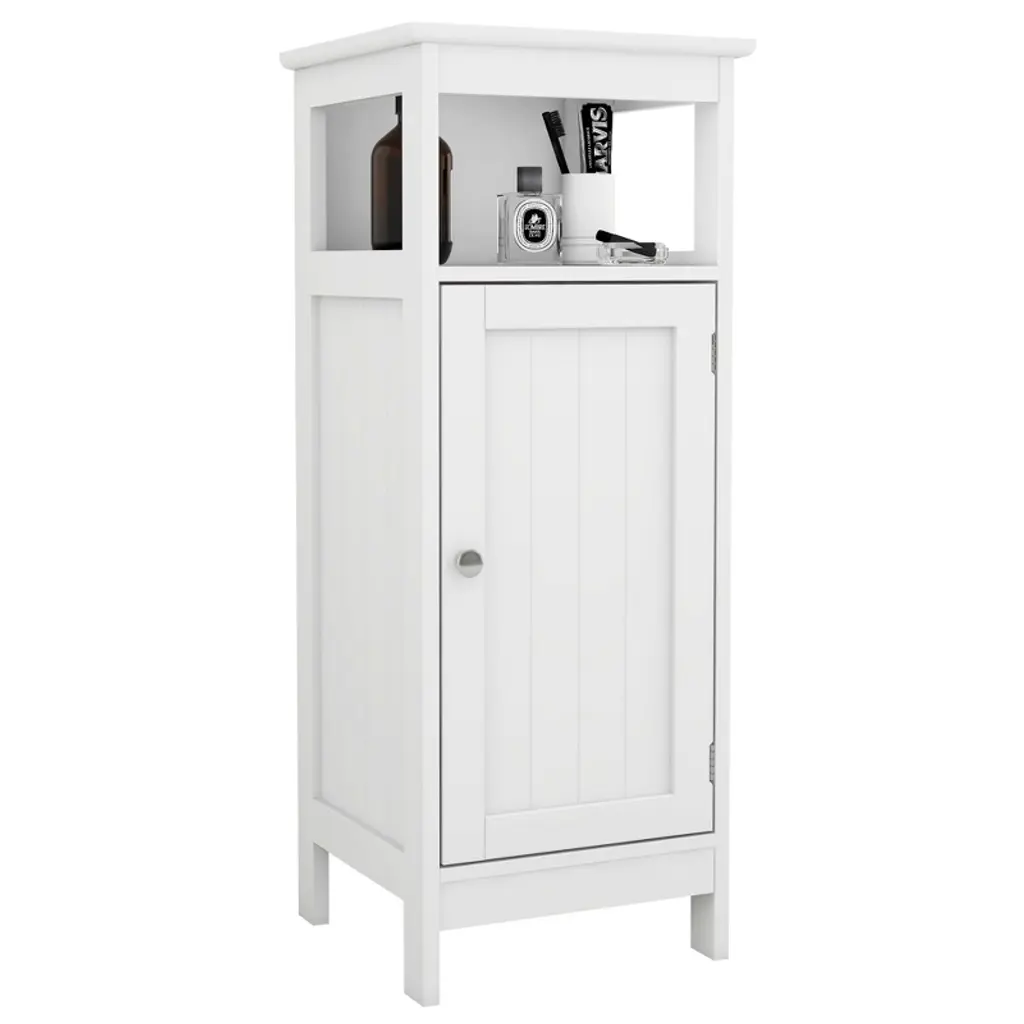 Featuring elegant lines and classic white finish, our floor storage cabinet is not only just a piece of furniture but also a great decoration for your home. This 4-tier floor cabinet comes with a spacious cabinet top, two removable drawers and one open rack, providing ample storage space for you to organize items in order and in partition. Besides, the back anti-toppling mechanism enhances using safety and the elevated bottom offers a dry storage place. The whole storage side cabinet is made of sturdy MDF, ensuring excellent sturdiness and high load capacity of 66 lbs. And exquisite craftsmanship enhances long service life. Plus, the polished surface and chic appearance make this display holder suitable for various occasions, such as bathroom, living room and bedroom. Features4-tier side cabinet with a spacious top, 2 drawers, an open shelf Removable drawers can be inserted into any of the 3 shelves at will Anti-toppling mechanism enhances using safety and stability Study MDF structure ensures excellent firmness and high durability Waterproof surface is smooth to wipe the stains for daily cleaning Slim cabinet with small footprint utilizes vertical space Quick assembly and easy cleaning need less time and effort Versatile style is suitable for both residential and commercial places Color: Brown/Grey/Black Material: MDF Product Dimensions: 12" x 12" x 35" (LxWxH) Load Capacity of Middle Shelf: 11 lbs Load Capacity of Top & Bottom: 22 lbs Net Weight: 26 lbs Package includes: 1 x Floor Cabinet 1 x User’s Instruction