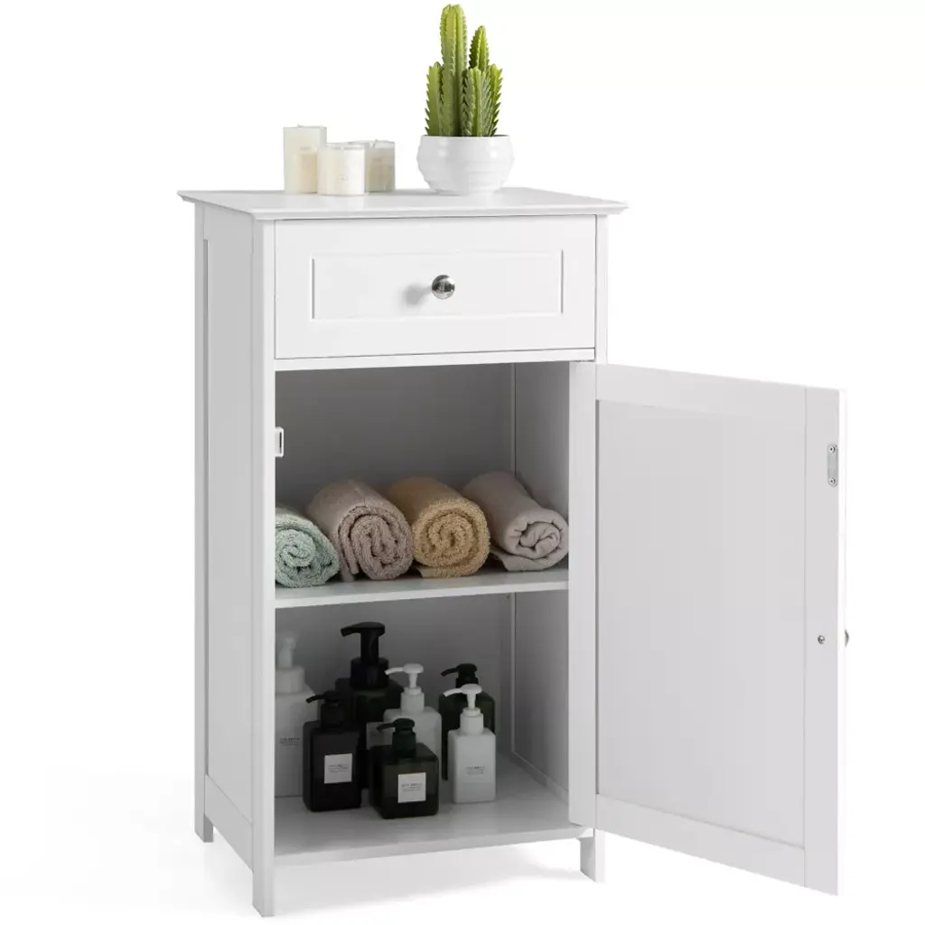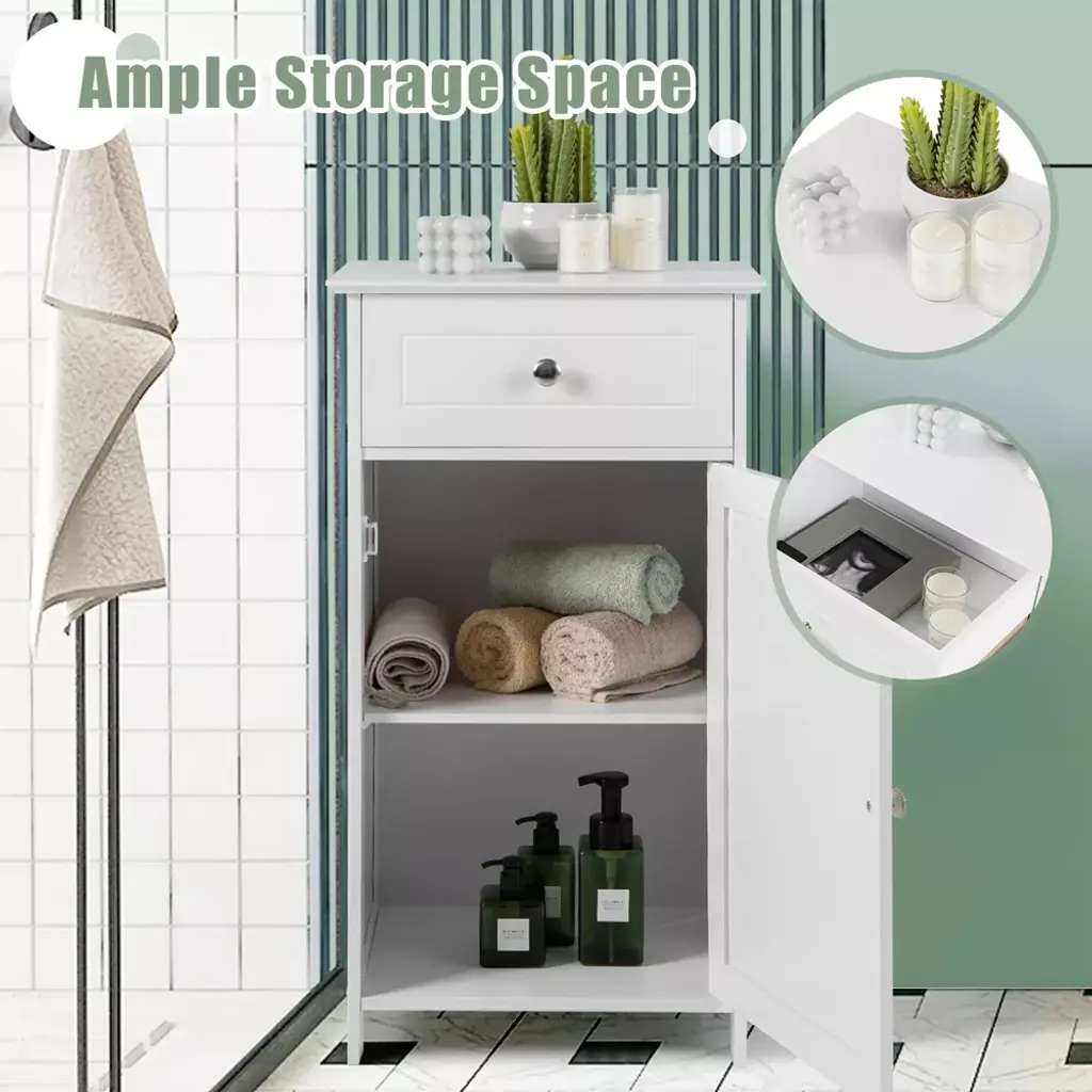 Costway Floor Storage Cabinet Bathroom Organizer Cupboard Drawer Shelf Bath Towel White