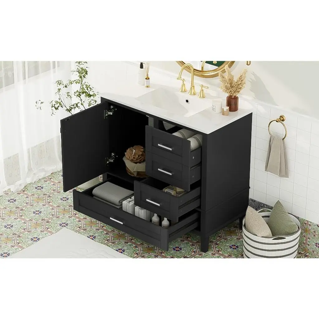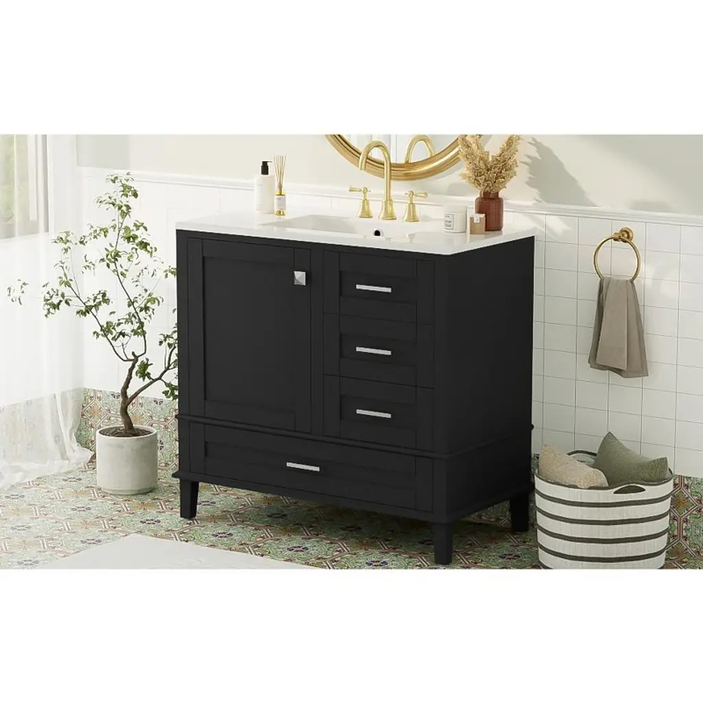 Cowlown Black 36-in Bathroom Vanity With Ceramic Basin, Solid Pine Frame, 3 Drawers & Soft-close Door, Modern Storage Cabinet For Bathrooms
