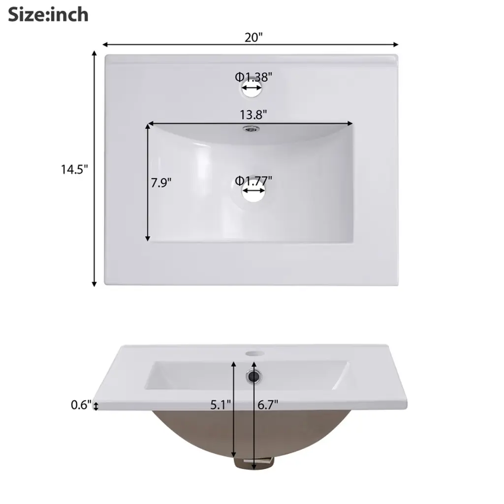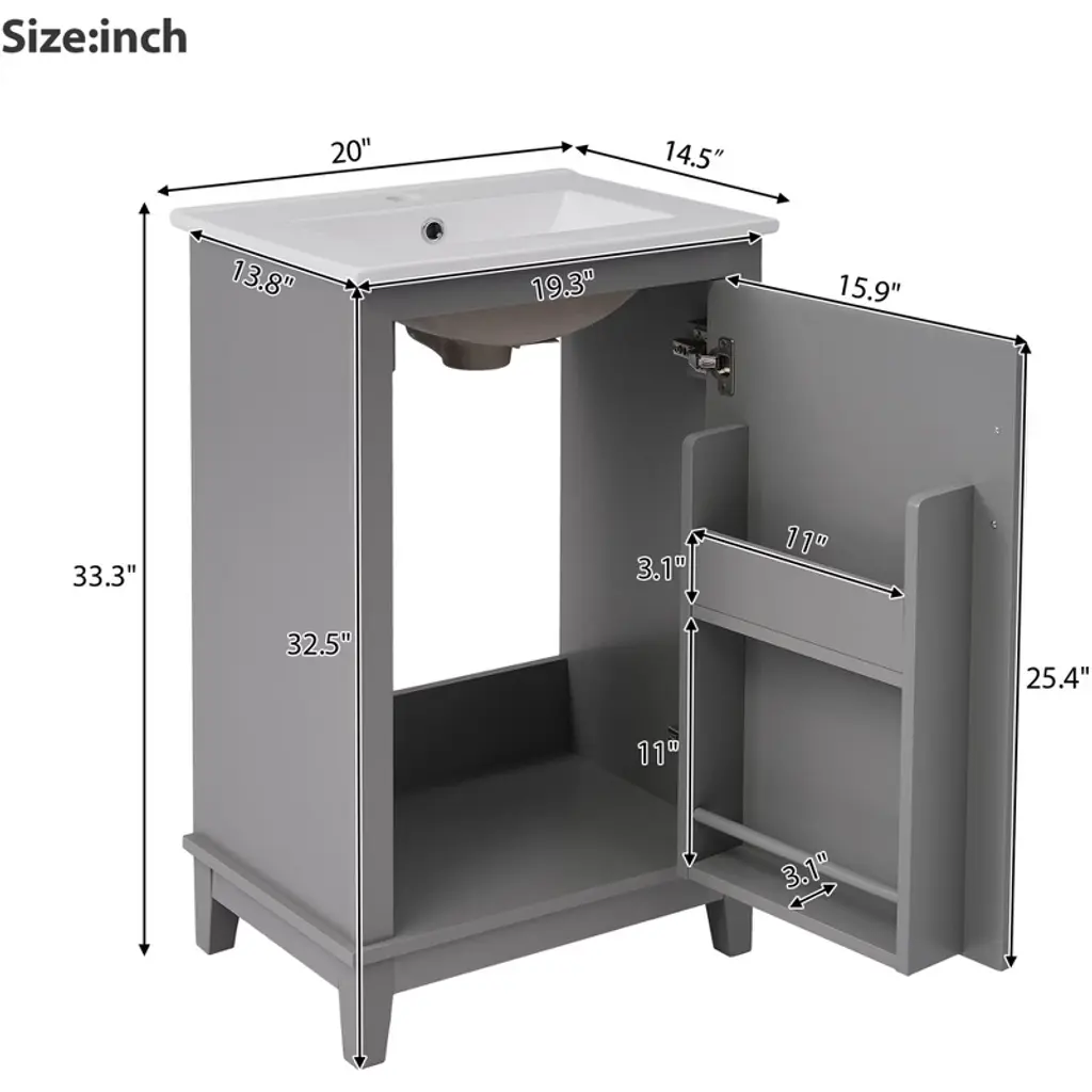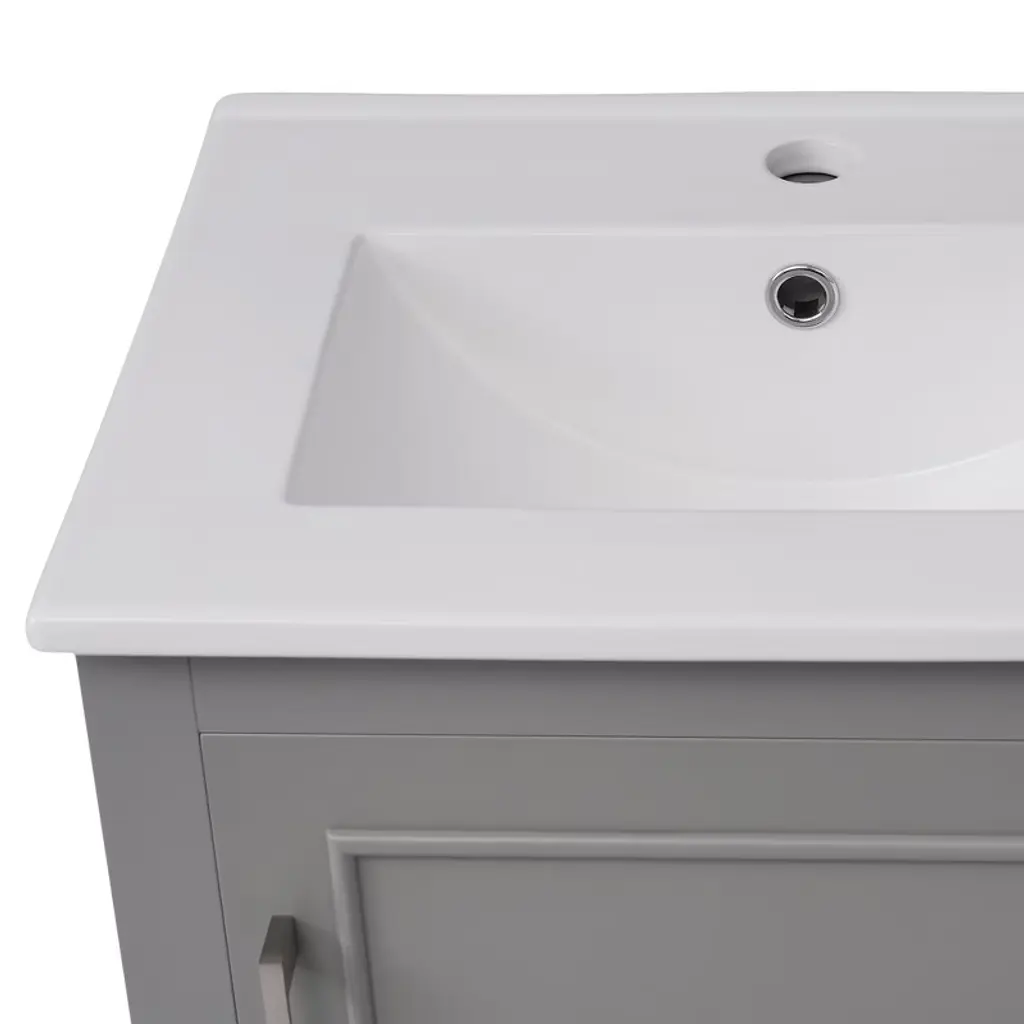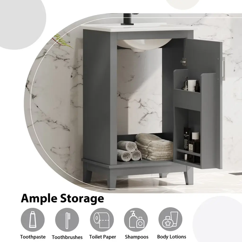 Cowlown Gray 20-in Modern Small Bathroom Vanity Cabinet With Ceramic Basin, Soft Close Door & Ample Storage