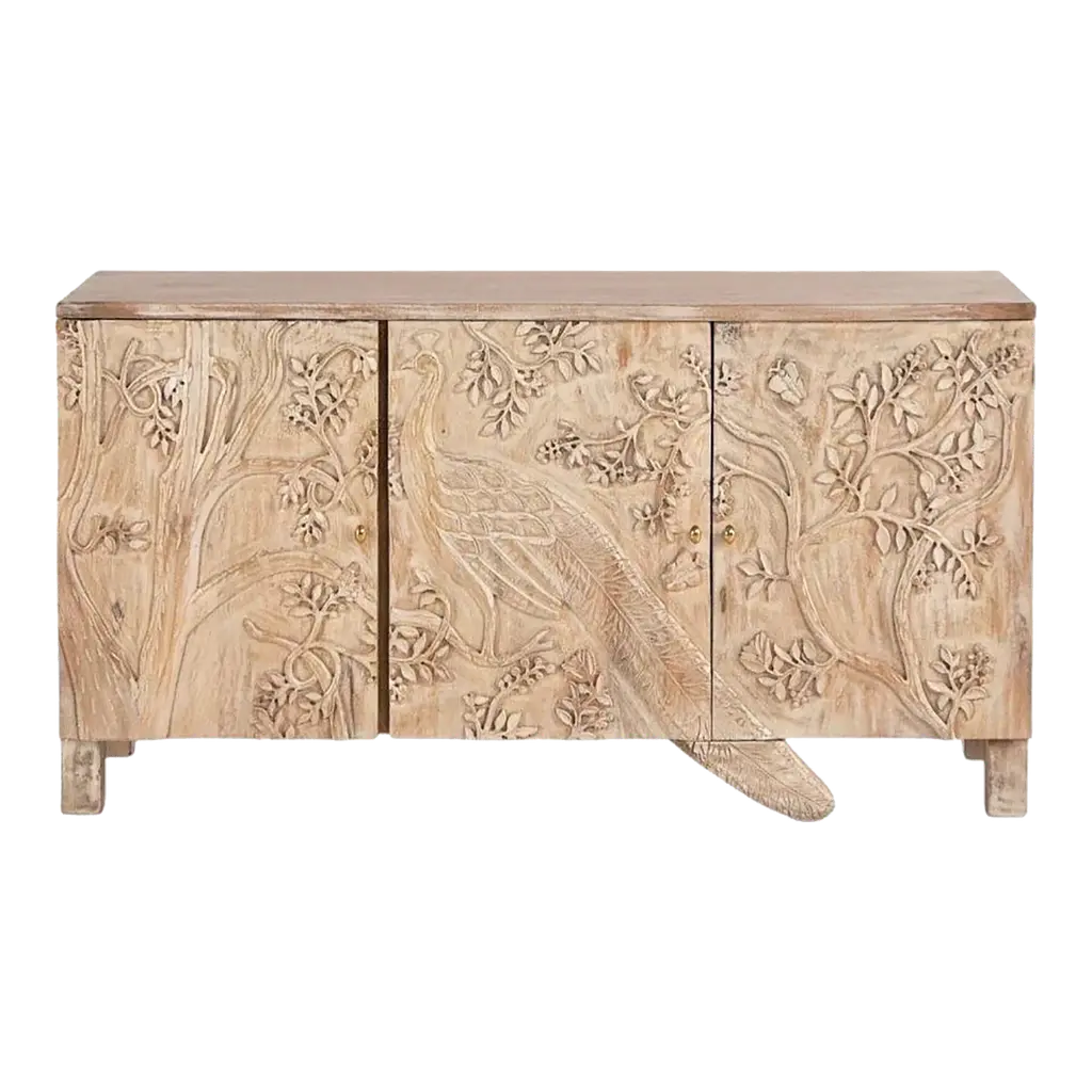 Our compact Zian storage cabinet is hand carved with cherry blossom artwork, the flowers associated with Saraswati, the Hindu goddess of knowledge. Symbolizing the power of creativity in an impermanent world, the gorgeous cherry blossom design sets our small-space storage solution apart. Handcrafted in global artisan communities and available in limited quantities, our one-of-a-kind CRAFT pieces bring heirloom-quality style to your home.