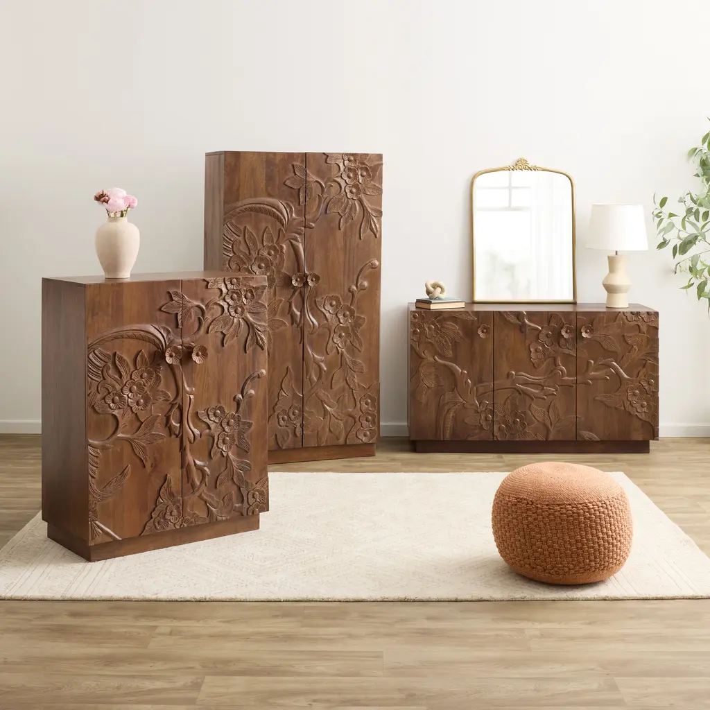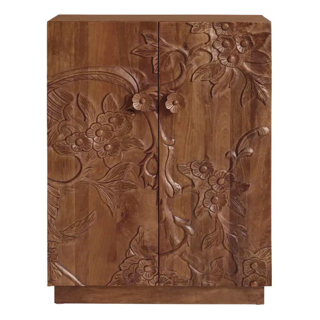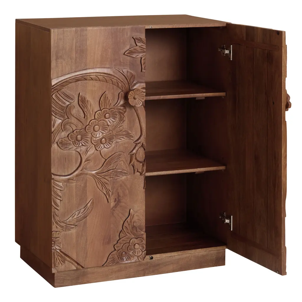 Craft Zian Small Carved Wood Floral Storage Cabinet